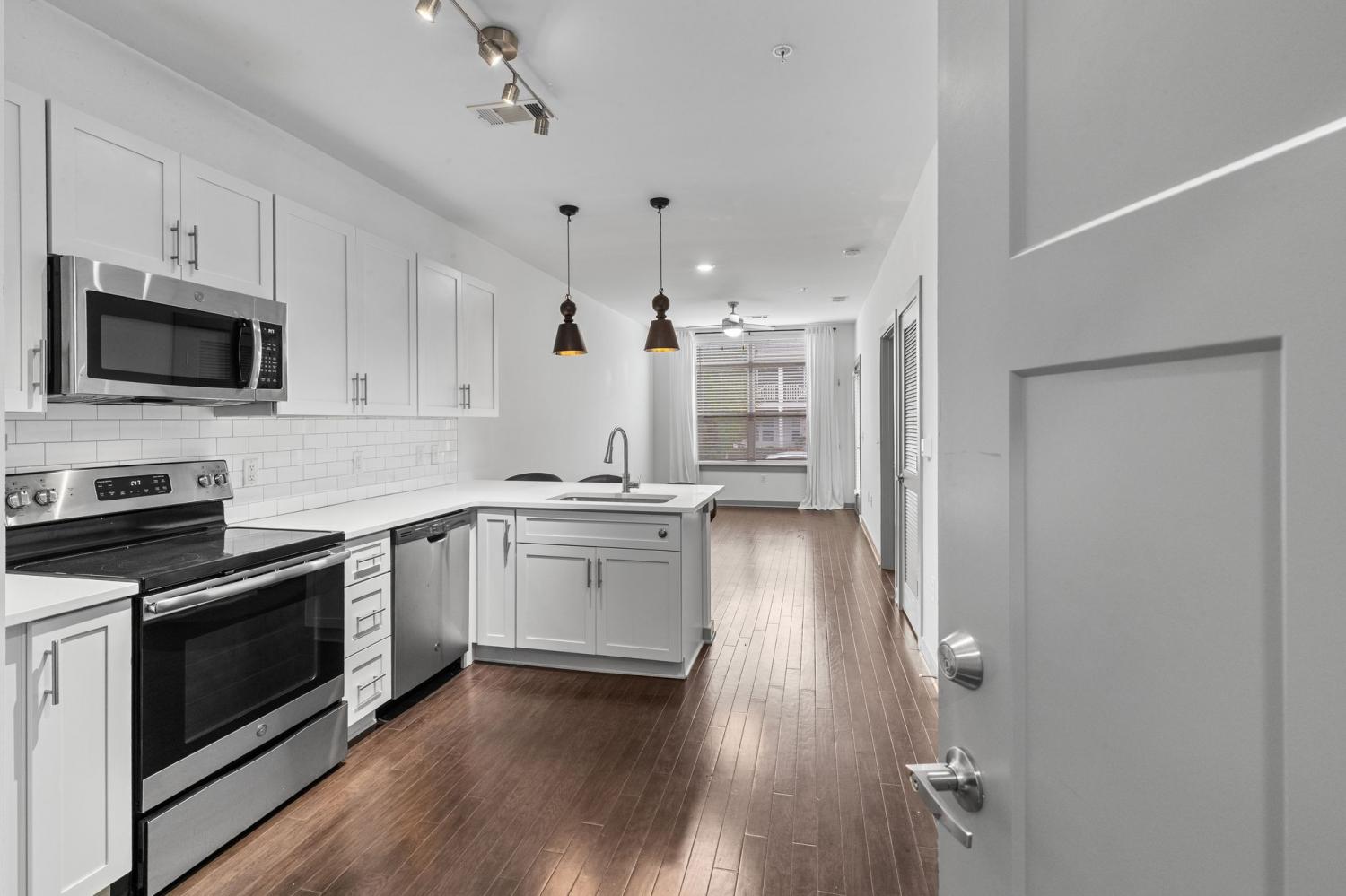 Walk out bottom floor unit in Silo House! Unbeatable location walking distance to many of the Nations hot spots. Originally built in 2020, this unit features a living room with natural light, a spacious kitchen with newer appliances, a bedroom with walk in closet, and an updated bathroom. Enjoy all of the amenities Silo House house to offer including a massive in ground pool with cabanas and large fitness center. W/D to remain. Low HOA! Schedule your showing today.