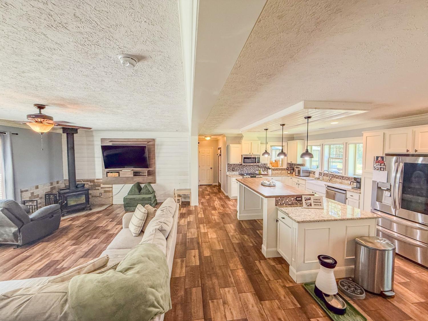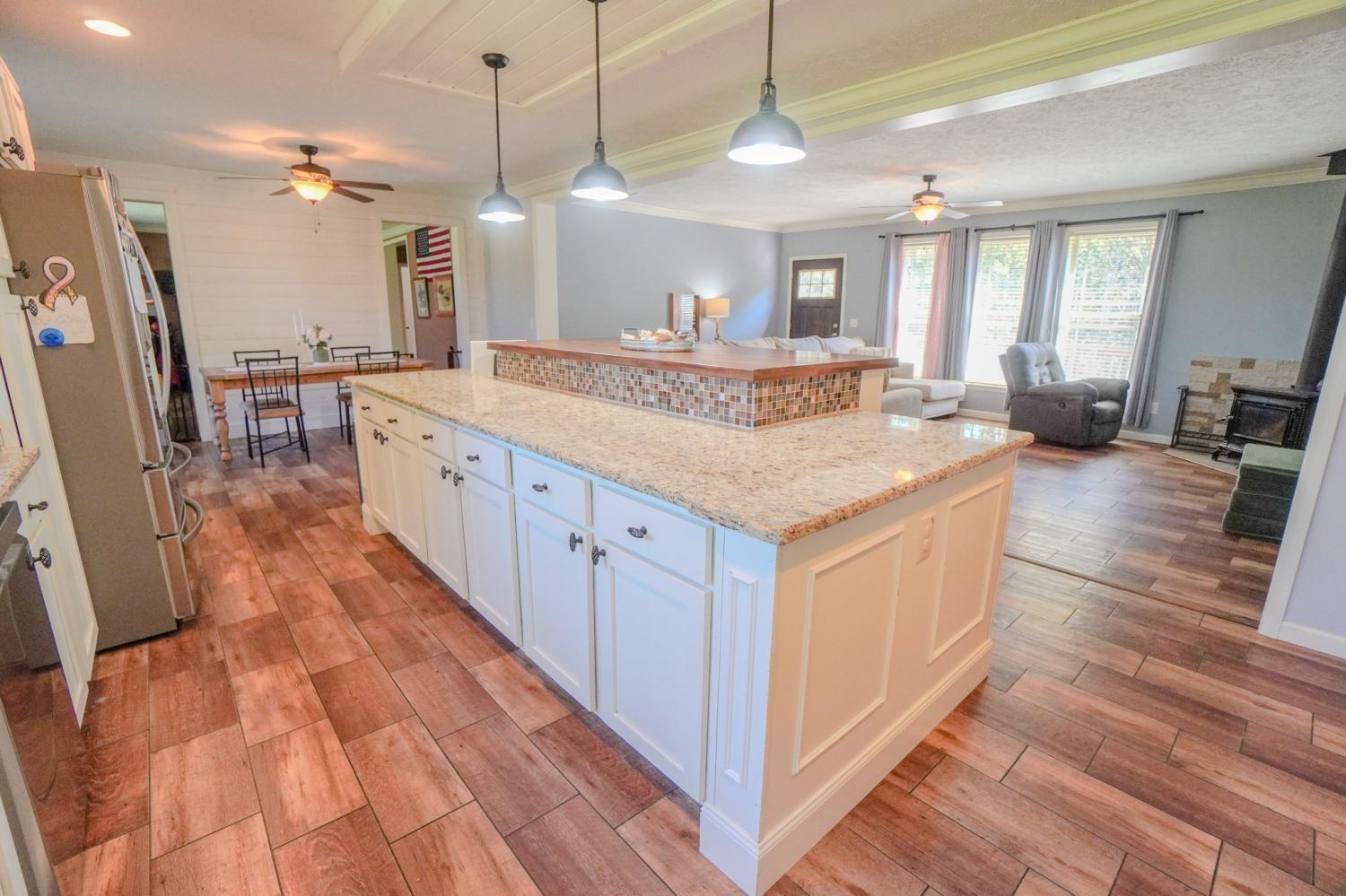 Escape to Country Paradise: A Dream Home Awaits! Sellers are motivated! Bring all reasonable offers! Discover the ultimate blend of modern comfort and serene country living with this stunning move-in-ready gem, set on a picturesque 13.07-acre lot. Nestled amidst rolling terrain and surrounded by lush trees, this property offers the perfect sanctuary for families seeking space, tranquility, and a touch of nature. Key Features: Spacious Layout: This home boasts a thoughtfully designed split floor plan with 3 oversized bedrooms and 2 luxurious full baths, ensuring ample space and privacy for everyone. Chef's Kitchen: Culinary enthusiasts will adore the expansive kitchen fitted with smart appliances and an impressive island offering abundant storage. Cozy Living Room: Enjoy cozy evenings by the wood-burning stove in the expansive living room, perfect for family gatherings. Flexible Den/Office: Need a home office or a quiet reading nook? The versatile den is ready to meet your needs. Luxurious Primary Suite: Retreat to the large primary suite featuring a generous walk-in closet and a spa-like bath with double vanities, a separate shower, and a jetted tub. Outdoor Bliss: Revel in the beauty of nature from your large back deck, complete with an enclosed room to savor the outdoors minus the bugs! Ample Parking and Storage: A 2-car carport, easily convertible to a garage, plus an extra storage shed for your outdoor gear. Embrace this unique opportunity to own a piece of paradise. Experience the charm of country living with modern conveniences only a short drive away. Schedule your viewing today and make this dream home yours!