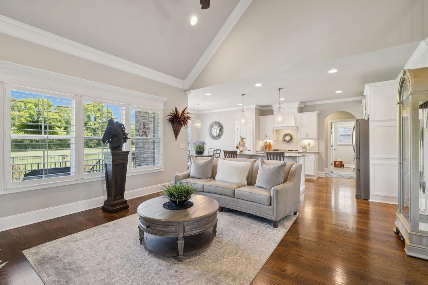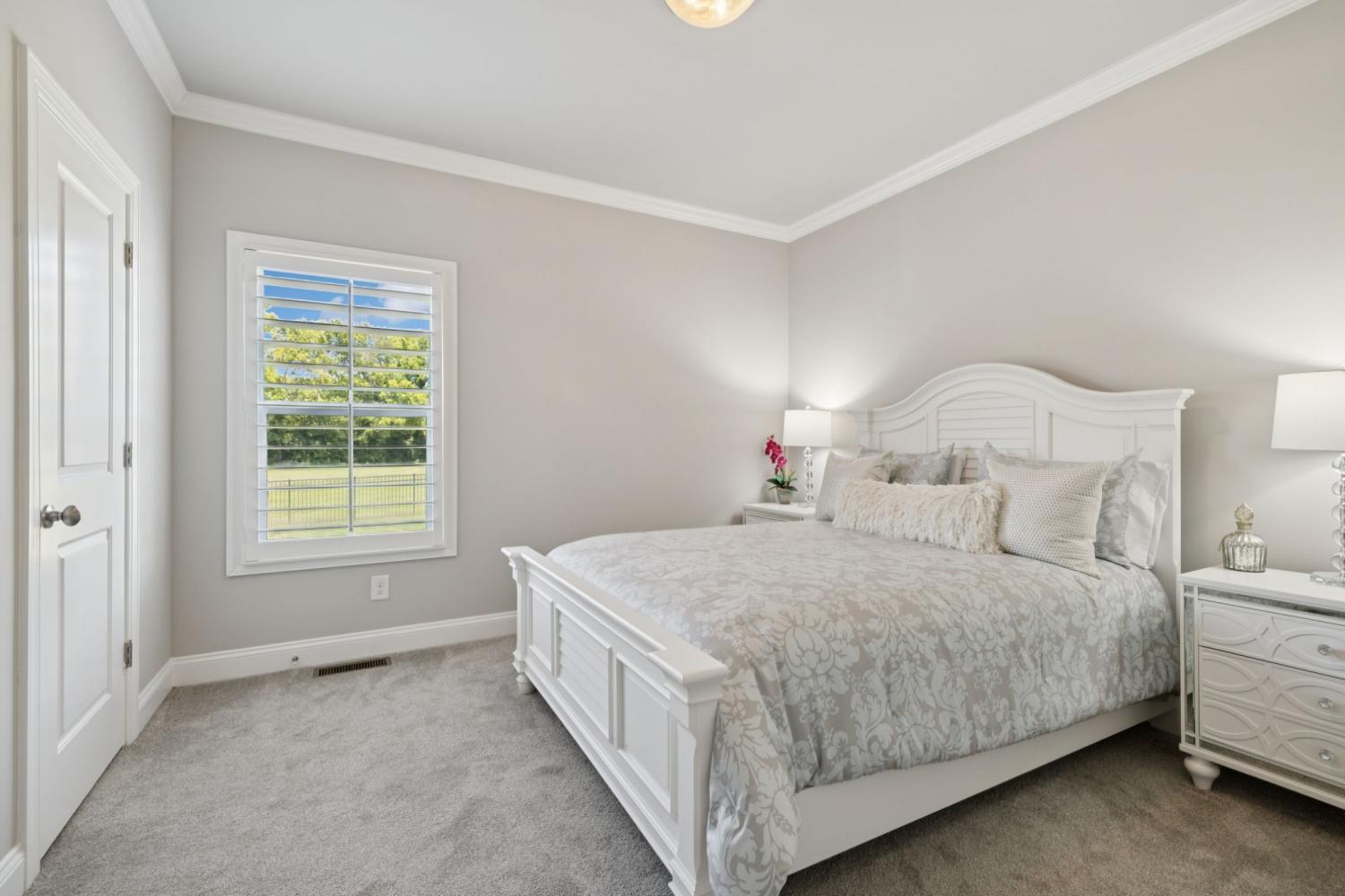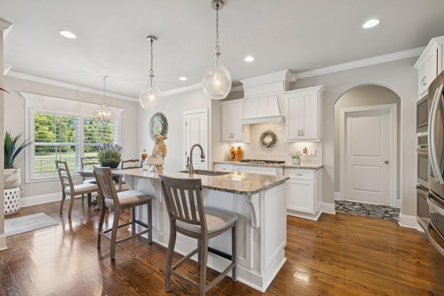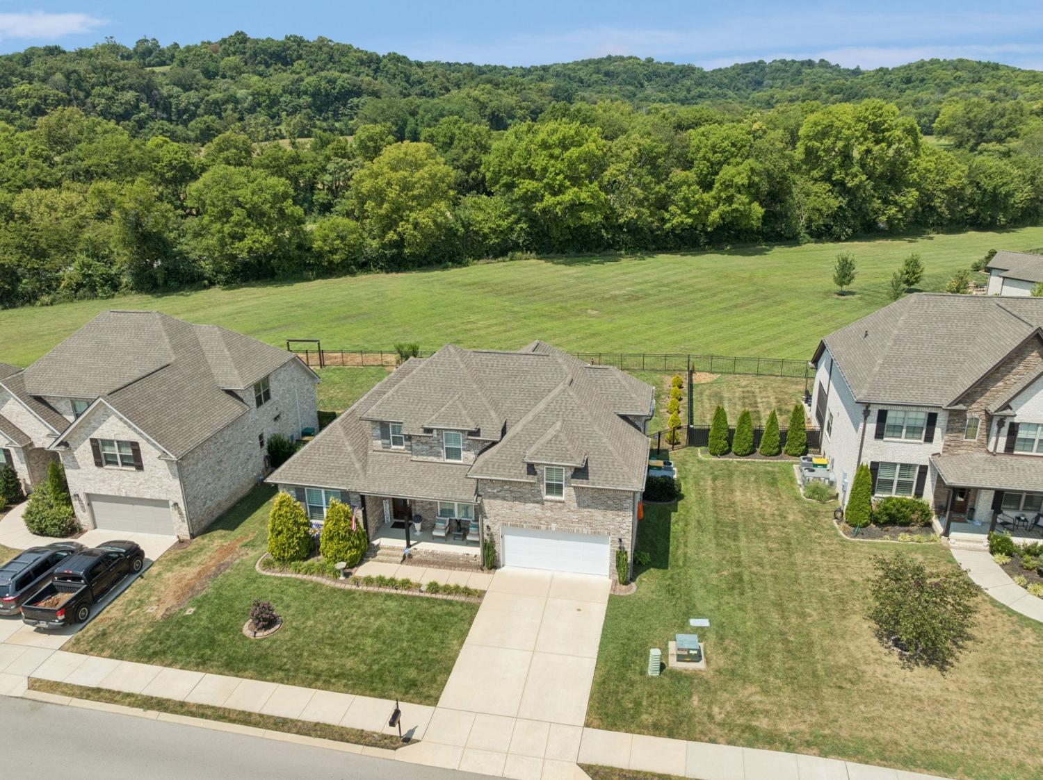 QUICK CLOSE! Beautiful like-new 4 bedroom, 3-bath home in highly sought-after Arbors of Autumn Ridge community. From the inviting covered front porch, step into a spacious foyer that sets the tone for a thoughtfully designed residence-boasting crown molding, ceiling features and 4 inch wooden plantation blinds. A formal dining room with expansive windows provides ample natural light, while the open-concept floor plan flow connects the family room, kitchen, and breakfast area-perfect for everyday living and effortless entertaining. The chef-inspired kitchen is a true showpiece, featuring custom cabinetry, large granite island, granite counters, gas cooktop, double convection ovens, built in Microwave, dishwasher, refrigerator - all stainless-steel appliances. Sunlit windows create a warm, inviting atmosphere throughout main level spaces. The split-bedroom layout ensures privacy, with a gorgeous primary suite, a spa-like bath complete with granite counters, tile shower, soaking tub, dual vanities, and a spacious walk-in closet. A second main-level bedroom and adjacent full bath, also granite counters, is ideal for guests. The upper level provides two additional bedrooms and full bath with elevated finishes. Second floor bedrooms and recreation area have never been used. Every detail reflects upscale finishes and modern comforts. Outdoor living is equally impressive, covered back porch overlooking a fenced yard and open green space for added serenity. Located within top-rated Williamson County schools and just minutes from premier shopping, dining entertainment, and medical facilities, this home combines convenience with luxury living. Shoe covers for visitors are provided at front door.