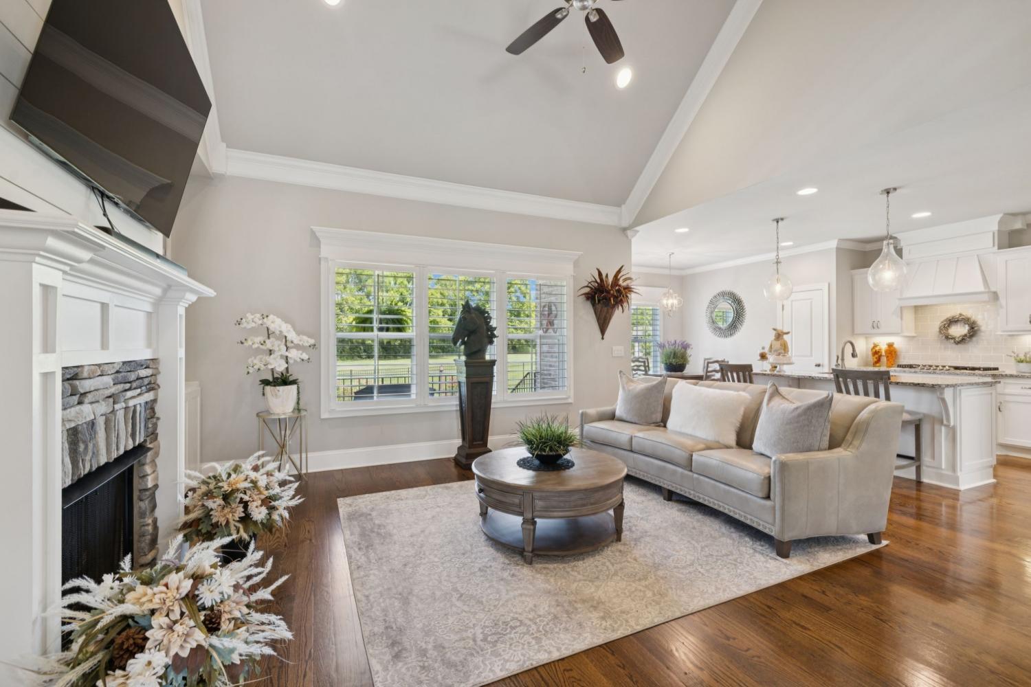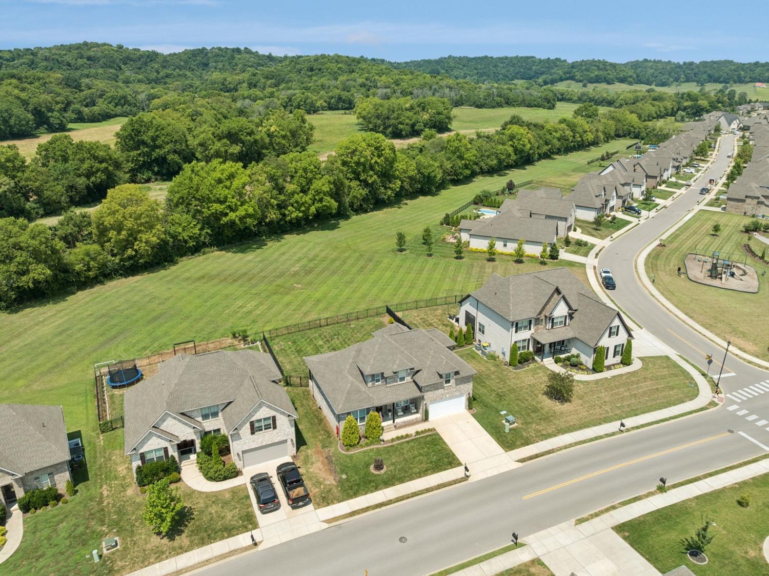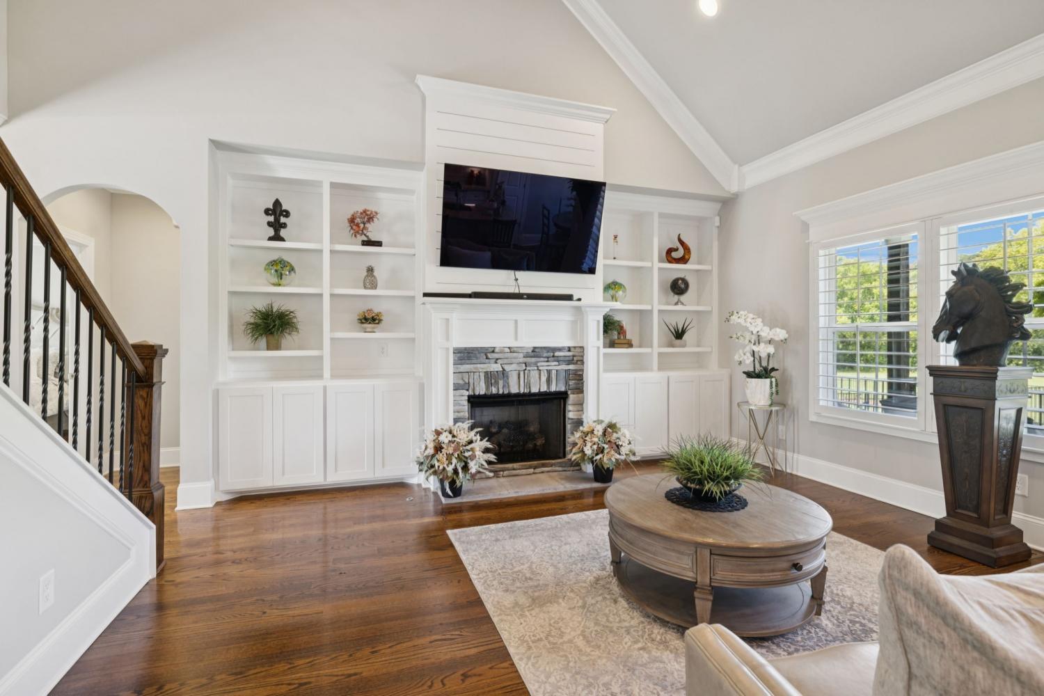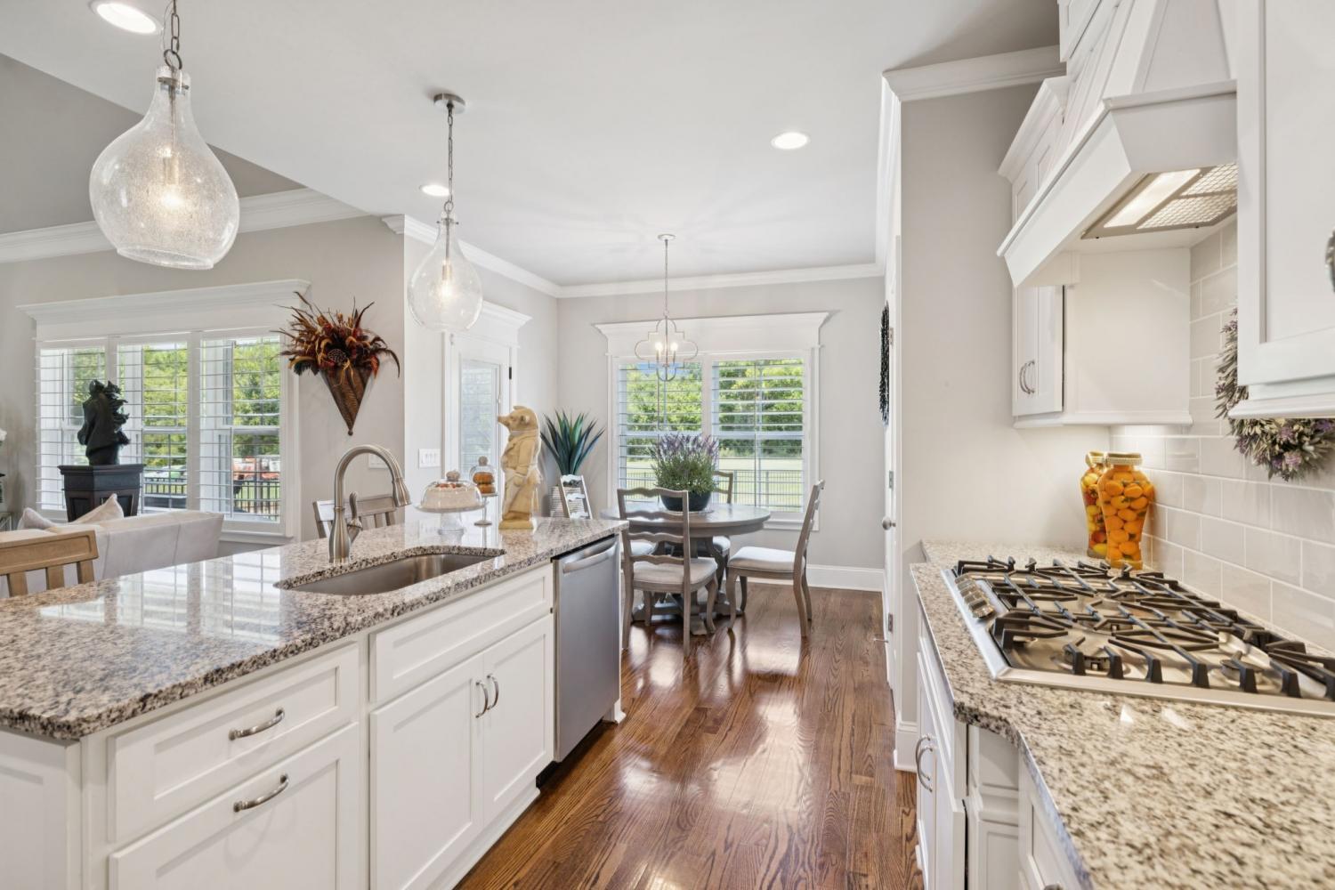QUICK CLOSE! Beautiful like-new 4 bedroom, 3-bath home in highly sought-after Arbors of Autumn Ridge community. From the inviting covered front porch, step into a spacious foyer that sets the tone for a thoughtfully designed residence-boasting crown molding, ceiling features and 4 inch wooden plantation blinds. A formal dining room with expansive windows provides ample natural light, while the open-concept floor plan flow connects the family room, kitchen, and breakfast area-perfect for everyday living and effortless entertaining. The chef-inspired kitchen is a true showpiece, featuring custom cabinetry, large granite island, granite counters, gas cooktop, double convection ovens, built in Microwave, dishwasher, refrigerator - all stainless-steel appliances. Sunlit windows create a warm, inviting atmosphere throughout main level spaces. The split-bedroom layout ensures privacy, with a gorgeous primary suite, a spa-like bath complete with granite counters, tile shower, soaking tub, dual vanities, and a spacious walk-in closet. A second main-level bedroom and adjacent full bath, also granite counters, is ideal for guests. The upper level provides two additional bedrooms and full bath with elevated finishes. Second floor bedrooms and recreation area have never been used. Every detail reflects upscale finishes and modern comforts. Outdoor living is equally impressive, covered back porch overlooking a fenced yard and open green space for added serenity. Located within top-rated Williamson County schools and just minutes from premier shopping, dining entertainment, and medical facilities, this home combines convenience with luxury living. Shoe covers for visitors are provided at front door.