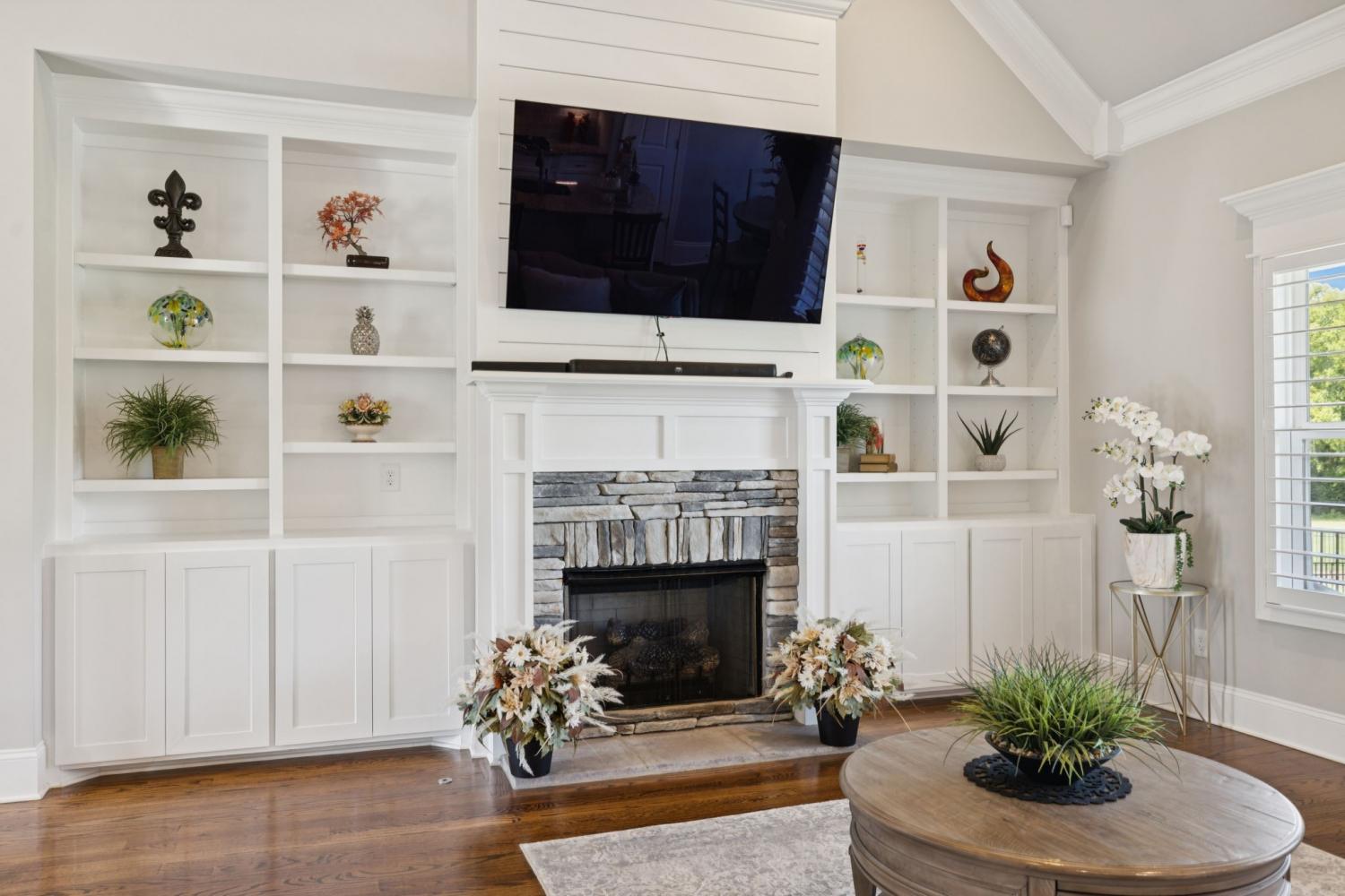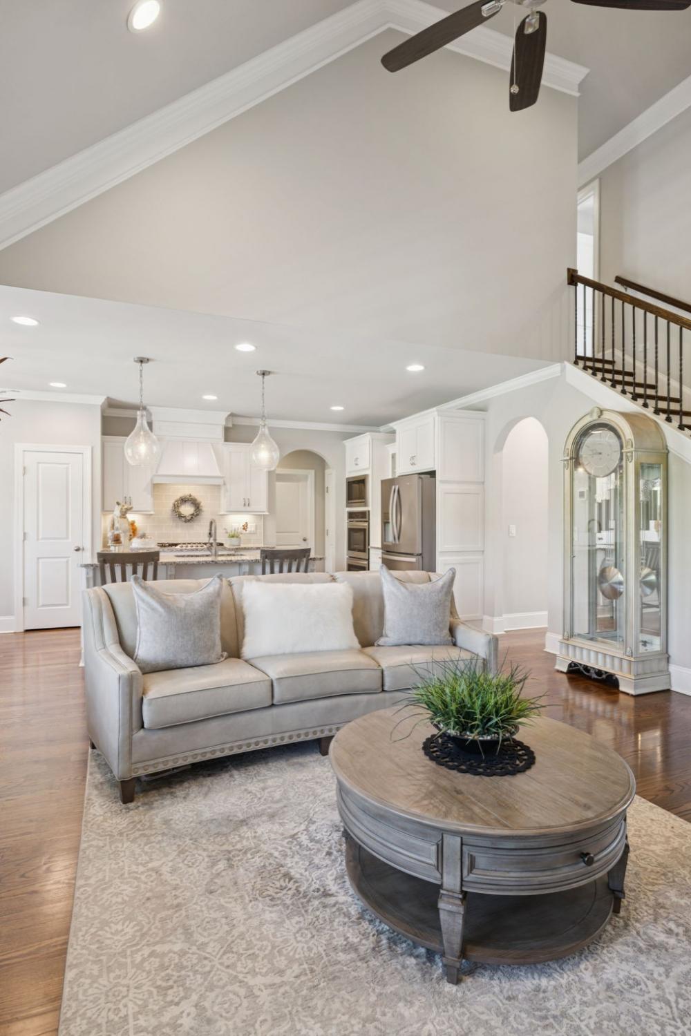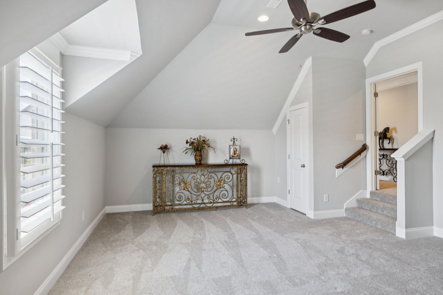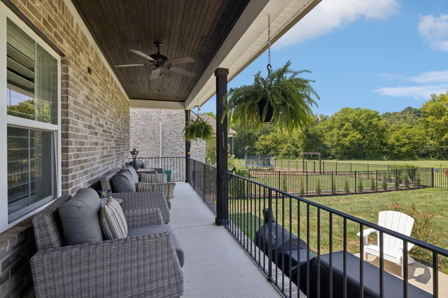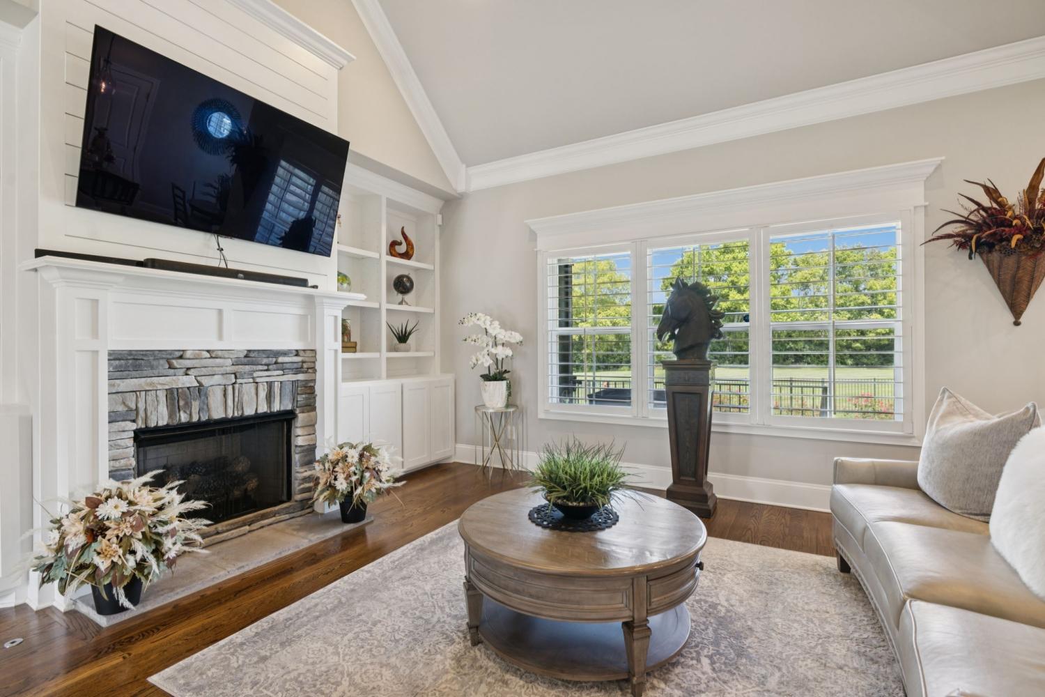 QUICK CLOSE! Beautiful like-new 4 bedroom, 3-bath home in highly sought-after Arbors of Autumn Ridge community. From the inviting covered front porch, step into a spacious foyer that sets the tone for a thoughtfully designed residence-boasting crown molding, ceiling features and 4 inch wooden plantation blinds. A formal dining room with expansive windows provides ample natural light, while the open-concept floor plan flow connects the family room, kitchen, and breakfast area-perfect for everyday living and effortless entertaining. The chef-inspired kitchen is a true showpiece, featuring custom cabinetry, large granite island, granite counters, gas cooktop, double convection ovens, built in Microwave, dishwasher, refrigerator - all stainless-steel appliances. Sunlit windows create a warm, inviting atmosphere throughout main level spaces. The split-bedroom layout ensures privacy, with a gorgeous primary suite, a spa-like bath complete with granite counters, tile shower, soaking tub, dual vanities, and a spacious walk-in closet. A second main-level bedroom and adjacent full bath, also granite counters, is ideal for guests. The upper level provides two additional bedrooms and full bath with elevated finishes. Second floor bedrooms and recreation area have never been used. Every detail reflects upscale finishes and modern comforts. Outdoor living is equally impressive, covered back porch overlooking a fenced yard and open green space for added serenity. Located within top-rated Williamson County schools and just minutes from premier shopping, dining entertainment, and medical facilities, this home combines convenience with luxury living. Shoe covers for visitors are provided at front door.