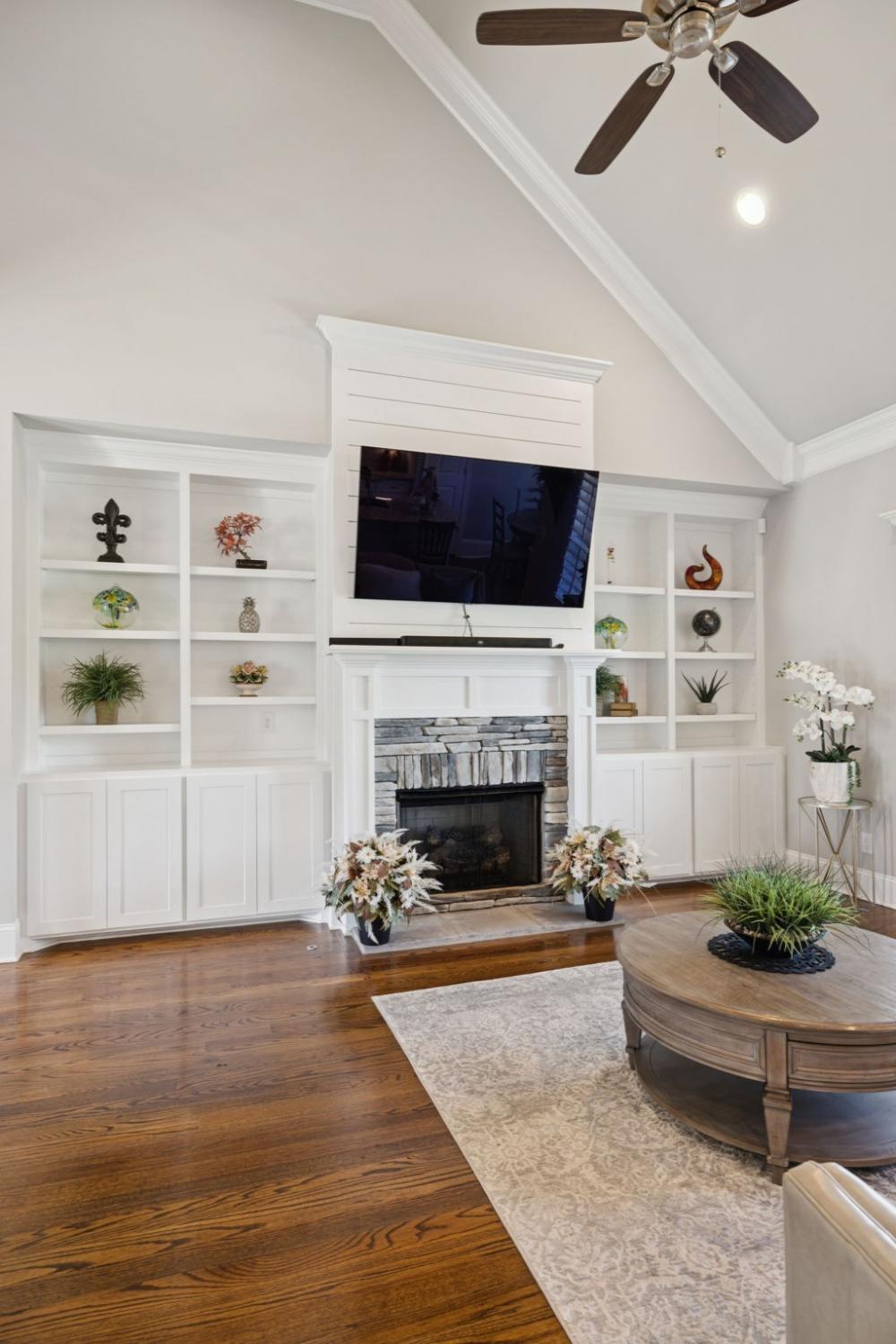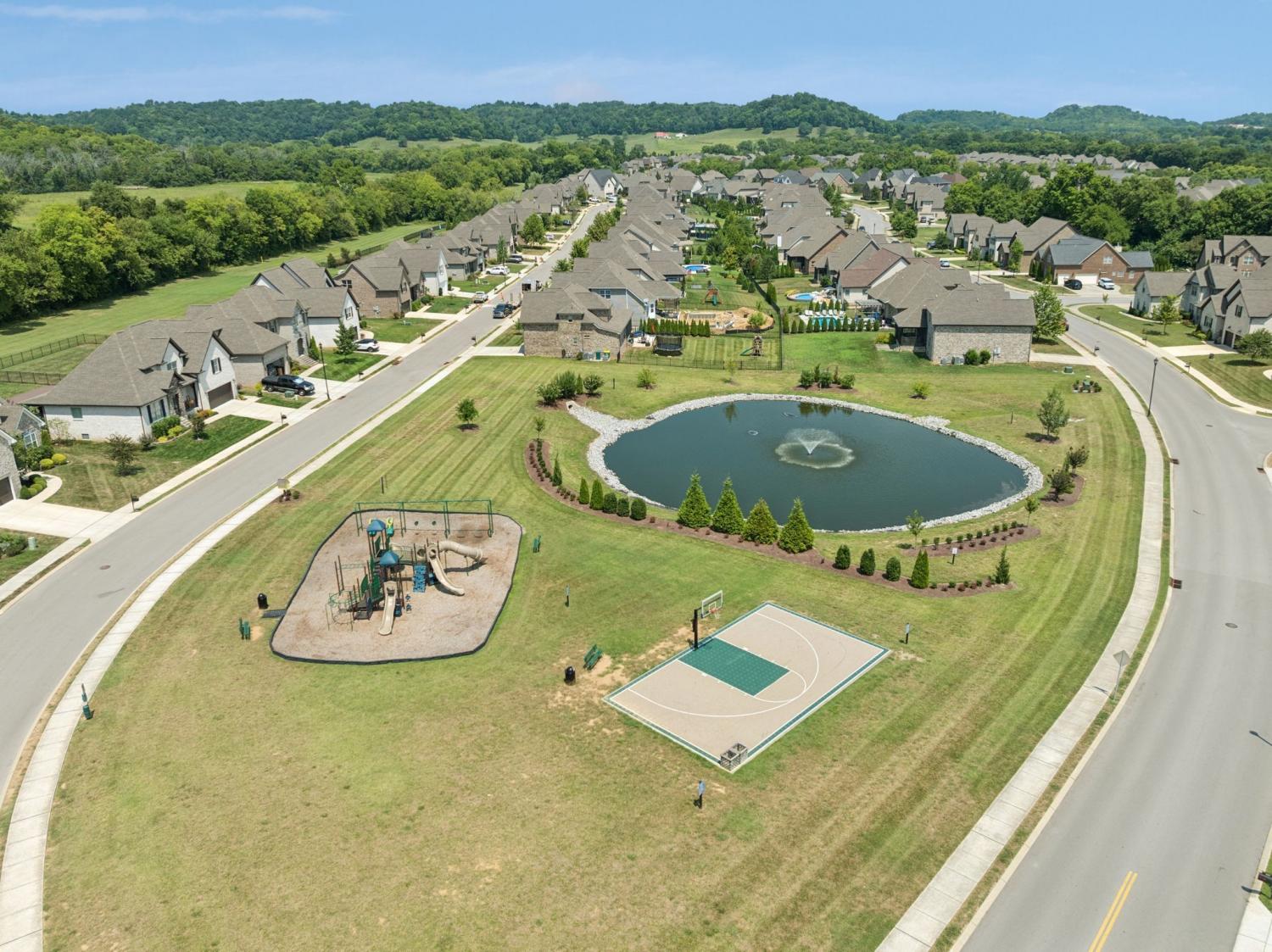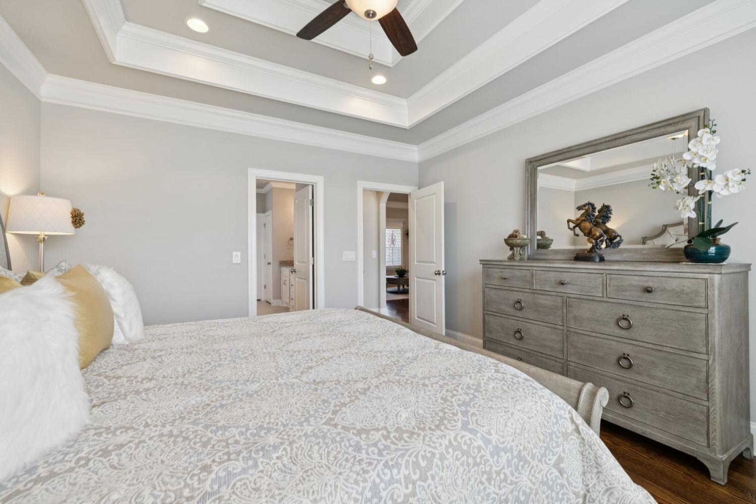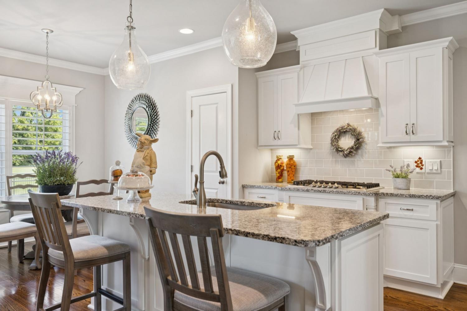 QUICK CLOSE! Beautiful like-new 4 bedroom, 3-bath home in highly sought-after Arbors of Autumn Ridge community. From the inviting covered front porch, step into a spacious foyer that sets the tone for a thoughtfully designed residence-boasting crown molding, ceiling features and 4 inch wooden plantation blinds. A formal dining room with expansive windows provides ample natural light, while the open-concept floor plan flow connects the family room, kitchen, and breakfast area-perfect for everyday living and effortless entertaining. The chef-inspired kitchen is a true showpiece, featuring custom cabinetry, large granite island, granite counters, gas cooktop, double convection ovens, built in Microwave, dishwasher, refrigerator - all stainless-steel appliances. Sunlit windows create a warm, inviting atmosphere throughout main level spaces. The split-bedroom layout ensures privacy, with a gorgeous primary suite, a spa-like bath complete with granite counters, tile shower, soaking tub, dual vanities, and a spacious walk-in closet. A second main-level bedroom and adjacent full bath, also granite counters, is ideal for guests. The upper level provides two additional bedrooms and full bath with elevated finishes. Second floor bedrooms and recreation area have never been used. Every detail reflects upscale finishes and modern comforts. Outdoor living is equally impressive, covered back porch overlooking a fenced yard and open green space for added serenity. Located within top-rated Williamson County schools and just minutes from premier shopping, dining entertainment, and medical facilities, this home combines convenience with luxury living. Shoe covers for visitors are provided at front door.