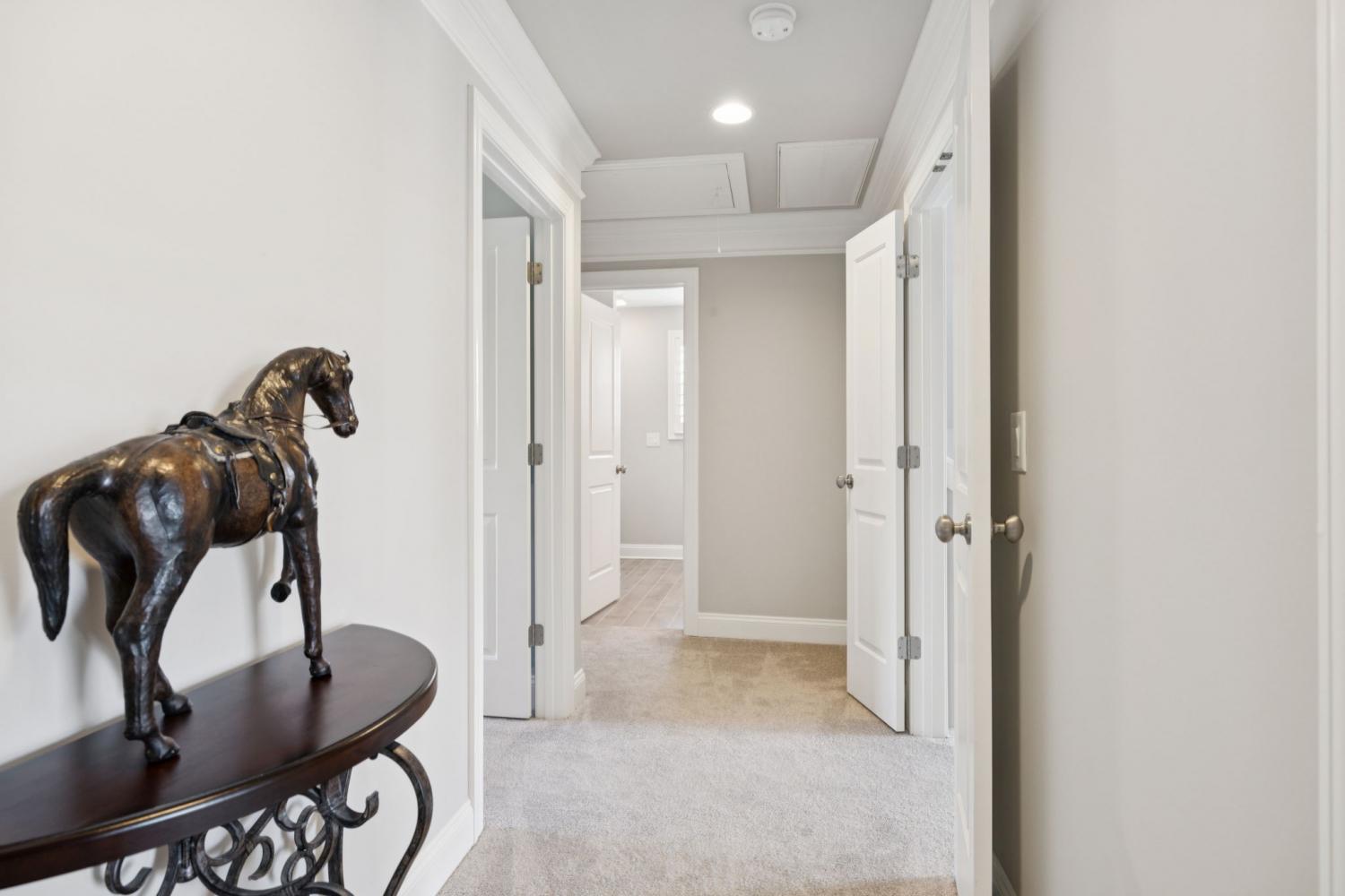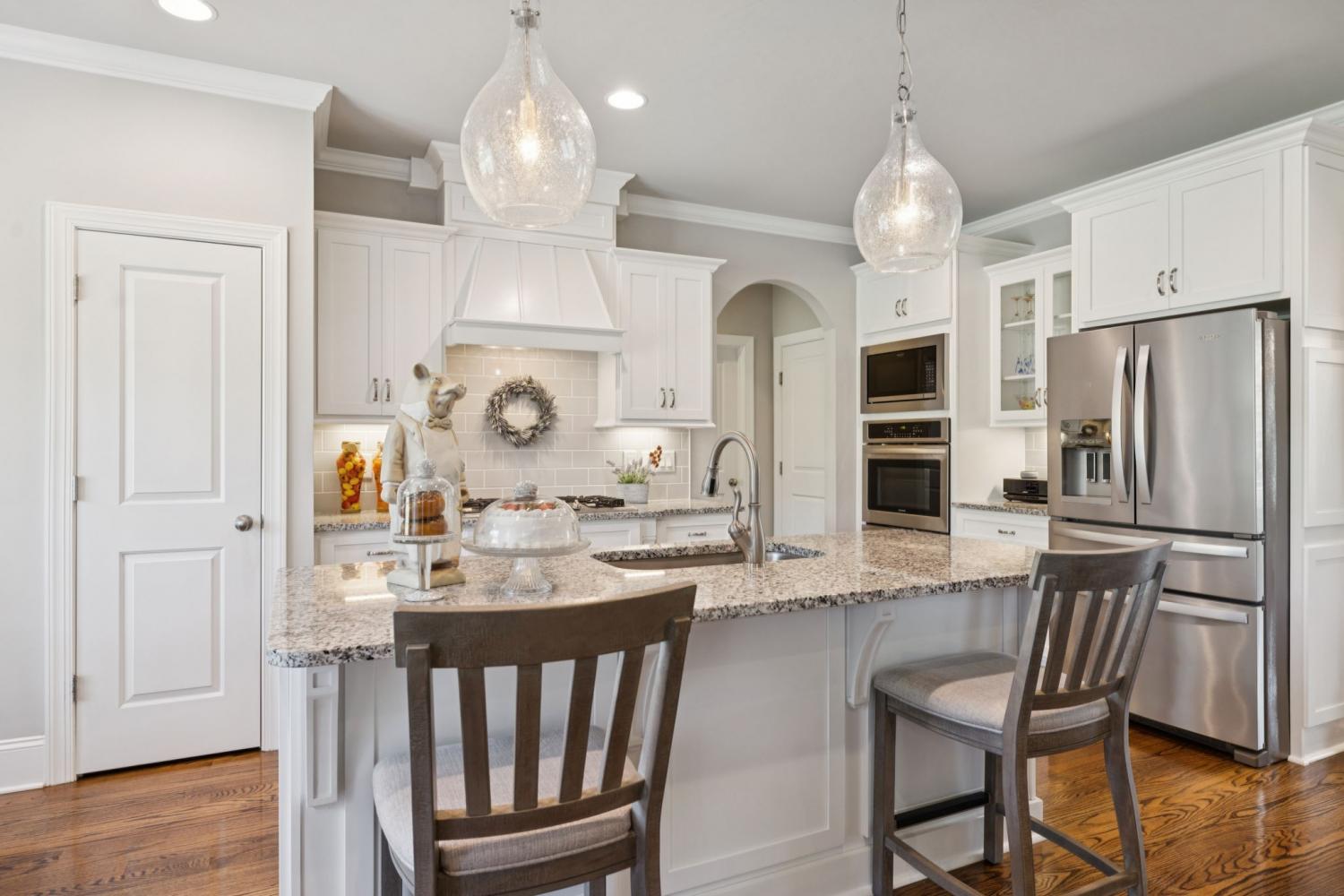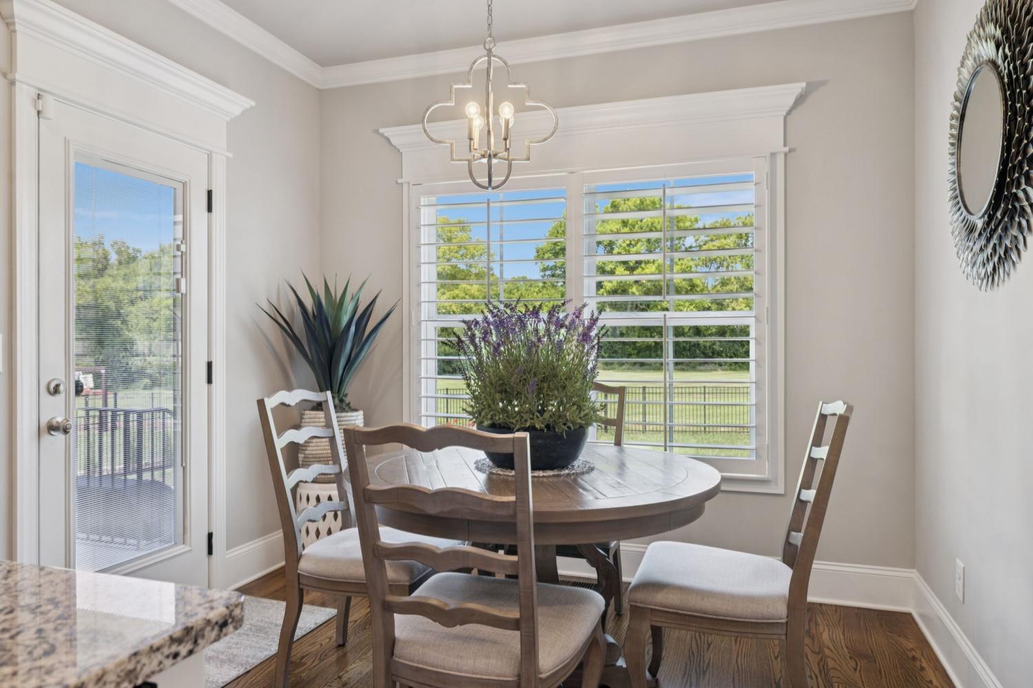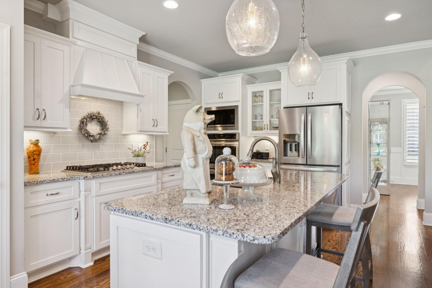 QUICK CLOSE! Beautiful like-new 4 bedroom, 3-bath home in highly sought-after Arbors of Autumn Ridge community. From the inviting covered front porch, step into a spacious foyer that sets the tone for a thoughtfully designed residence-boasting crown molding, ceiling features and 4 inch wooden plantation blinds. A formal dining room with expansive windows provides ample natural light, while the open-concept floor plan flow connects the family room, kitchen, and breakfast area-perfect for everyday living and effortless entertaining. The chef-inspired kitchen is a true showpiece, featuring custom cabinetry, large granite island, granite counters, gas cooktop, double convection ovens, built in Microwave, dishwasher, refrigerator - all stainless-steel appliances. Sunlit windows create a warm, inviting atmosphere throughout main level spaces. The split-bedroom layout ensures privacy, with a gorgeous primary suite, a spa-like bath complete with granite counters, tile shower, soaking tub, dual vanities, and a spacious walk-in closet. A second main-level bedroom and adjacent full bath, also granite counters, is ideal for guests. The upper level provides two additional bedrooms and full bath with elevated finishes. Second floor bedrooms and recreation area have never been used. Every detail reflects upscale finishes and modern comforts. Outdoor living is equally impressive, covered back porch overlooking a fenced yard and open green space for added serenity. Located within top-rated Williamson County schools and just minutes from premier shopping, dining entertainment, and medical facilities, this home combines convenience with luxury living. Shoe covers for visitors are provided at front door.