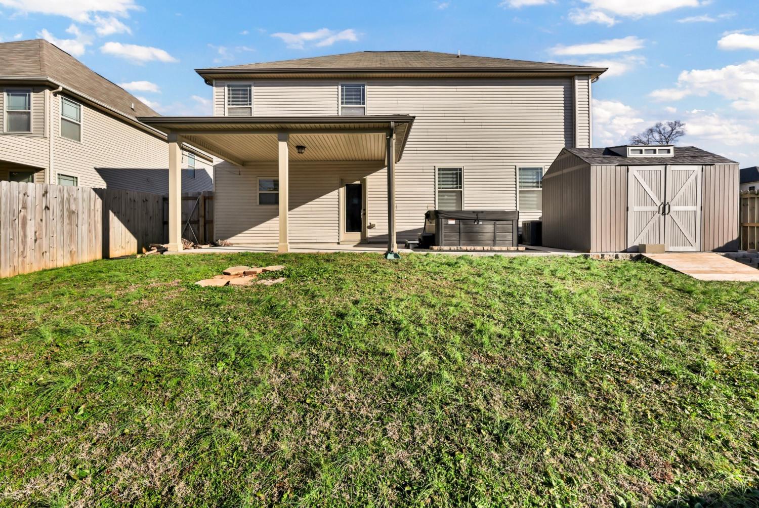 Beautiful corner-lot 5BR/3BA home in a desirable neighborhood with sidewalks and community playground near by. Open floorplan with an updated kitchen featuring granite countertops and center island that flows to a cozy living room with fireplace; separate formal dining room. Freshly painted interior throughout. Spacious primary suite with double vanities and tiled shower. Fenced backyard with hot tub and storage shed. All appliances stay including washer and dryer.