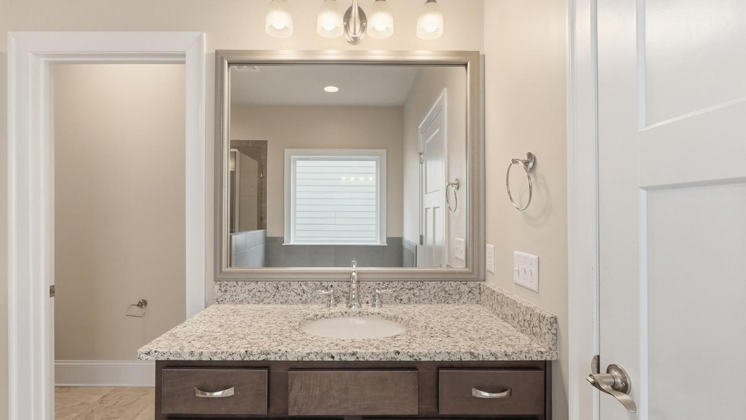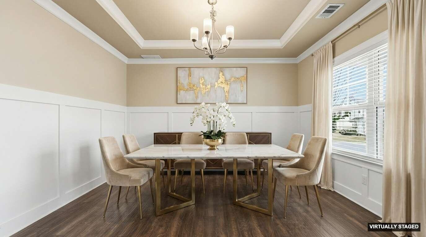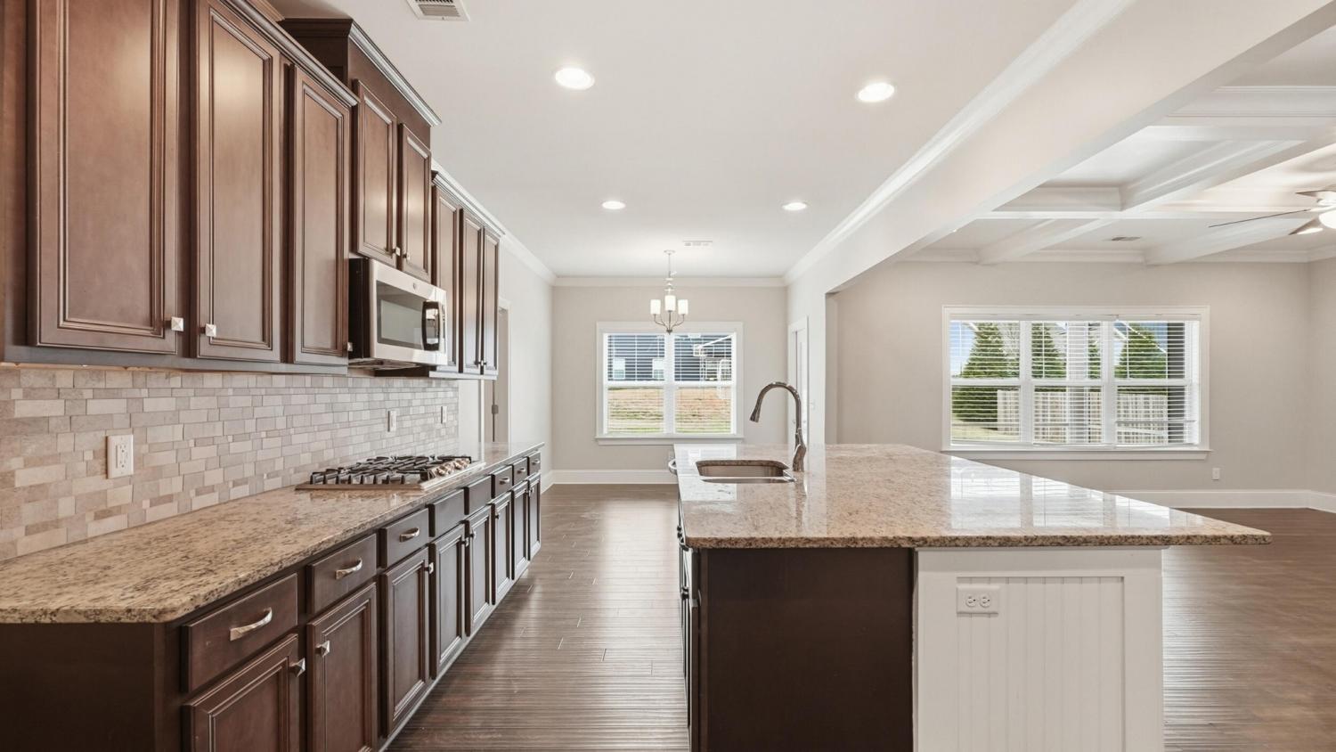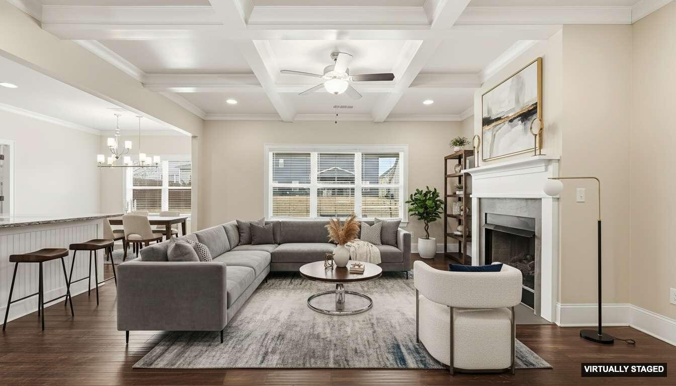 Welcome to 9863 Haven Port Ln, a beautifully upgraded 4-bedroom home with a main-level primary suite in the highly sought-after Easthaven community in Ooltewah. Set on a spacious lot with mountain views, this home blends luxury, comfort, and convenience in one of East Hamilton's most desirable locations. An inviting foyer opens to a versatile formal dining room, ideal for entertaining or use as a home office or flex space. The open-concept living area features hardwood floors, fresh interior paint, coffered ceilings, crown molding, and a spacious living room with built-ins and a gas fireplace. The chef's kitchen is designed for everyday living and entertaining, offering an oversized granite island, cooktop, convection oven, stainless steel appliances, large walk-in pantry, and a bright breakfast area that opens to a covered, screened porch—perfect for morning coffee or evening gatherings. The main-level primary suite provides a private retreat with an extended bedroom layout, spa-like ensuite bath with soaking tub, tiled walk-in shower, and oversized walk-in closet. The laundry room offers ample storage and a convenient drop zone near the garage entry. Upstairs are three spacious bedrooms, each with walk-in closets. Two share a Jack-and-Jill bath with dual vanities, while the third has private bath access. A large media/bonus room with existing wiring offers flexible space for a home theater, game room, or additional living area. Exterior features include a stone front elevation, a front porch, and a tiled, screened-in back porch overlooking the backyard. Easthaven offers sidewalks, streetlights, and ponds, within walking distance to East Hamilton School and minutes from Publix, Food City, Starbucks, Cambridge Square, Hamilton Place, and I-75. Move-in-ready Ooltewah home with a main-level primary suite, open floor plan, bonus room, screened porch, and mountain views—offering exceptional value, location, and lifestyle. Schedule your private showing today!