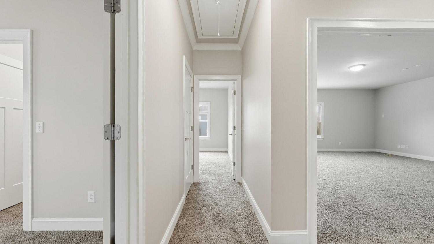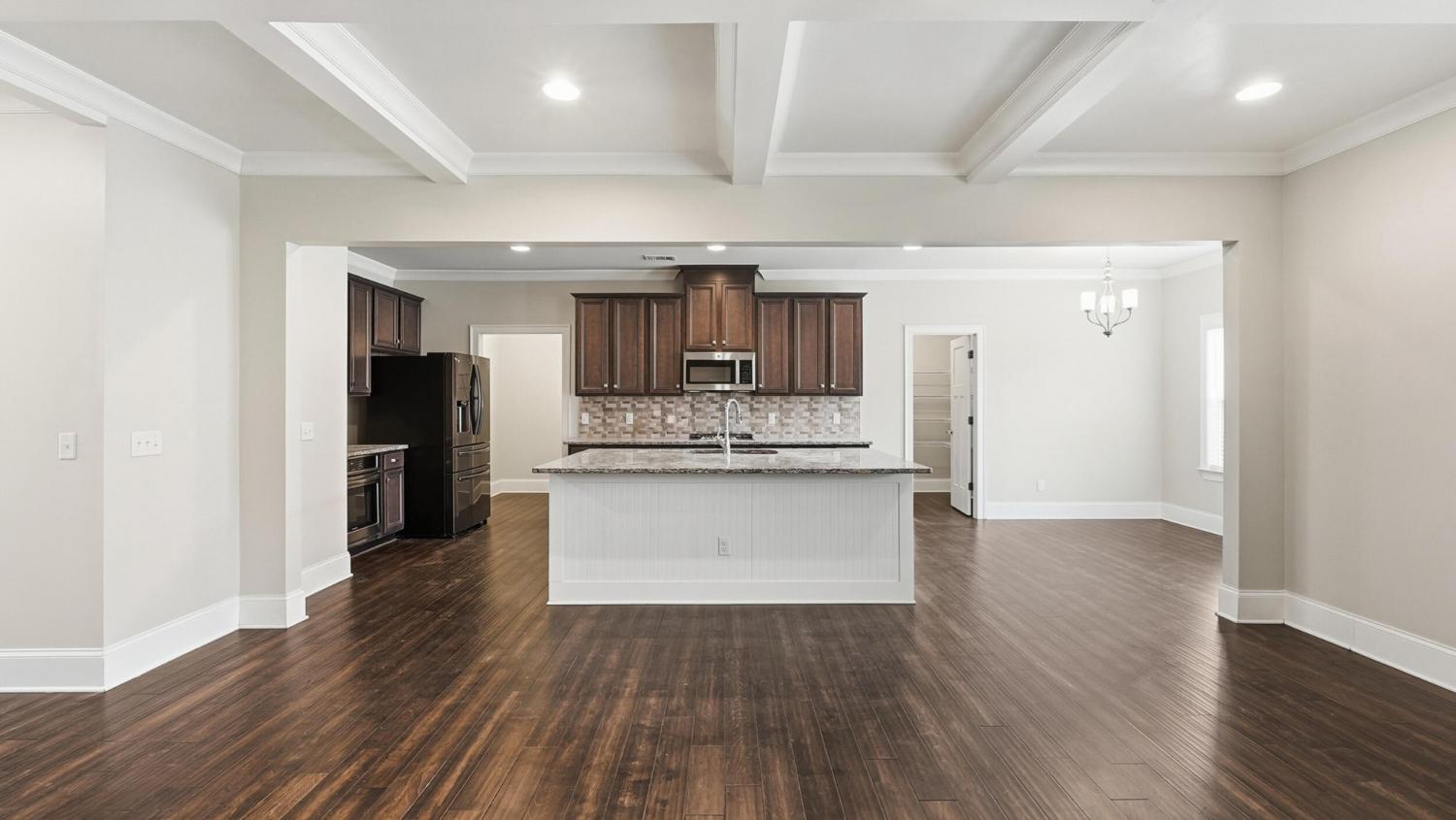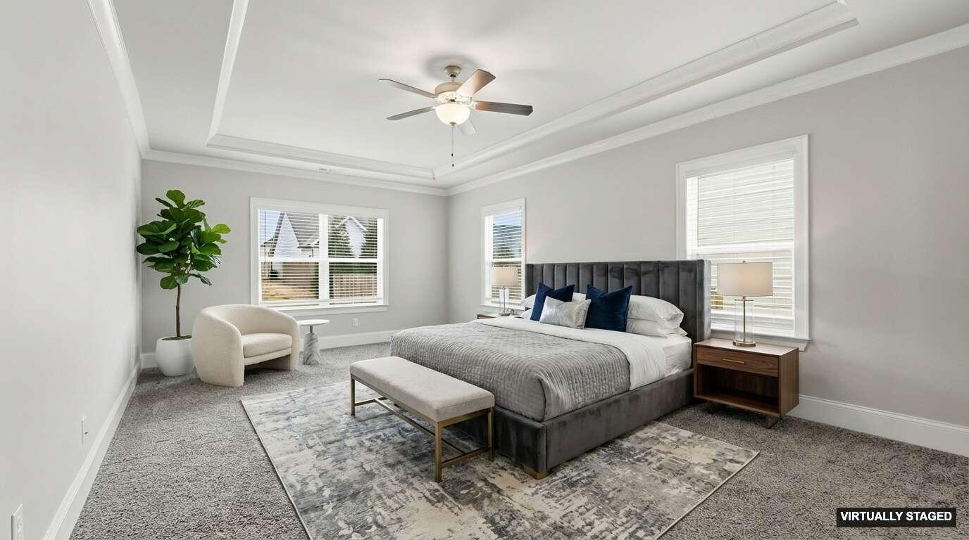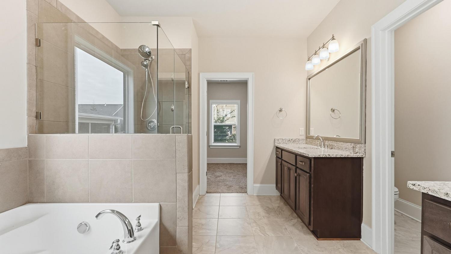 Welcome to 9863 Haven Port Ln, a beautifully upgraded 4-bedroom home with a main-level primary suite in the highly sought-after Easthaven community in Ooltewah. Set on a spacious lot with mountain views, this home blends luxury, comfort, and convenience in one of East Hamilton's most desirable locations. An inviting foyer opens to a versatile formal dining room, ideal for entertaining or use as a home office or flex space. The open-concept living area features hardwood floors, fresh interior paint, coffered ceilings, crown molding, and a spacious living room with built-ins and a gas fireplace. The chef's kitchen is designed for everyday living and entertaining, offering an oversized granite island, cooktop, convection oven, stainless steel appliances, large walk-in pantry, and a bright breakfast area that opens to a covered, screened porch—perfect for morning coffee or evening gatherings. The main-level primary suite provides a private retreat with an extended bedroom layout, spa-like ensuite bath with soaking tub, tiled walk-in shower, and oversized walk-in closet. The laundry room offers ample storage and a convenient drop zone near the garage entry. Upstairs are three spacious bedrooms, each with walk-in closets. Two share a Jack-and-Jill bath with dual vanities, while the third has private bath access. A large media/bonus room with existing wiring offers flexible space for a home theater, game room, or additional living area. Exterior features include a stone front elevation, a front porch, and a tiled, screened-in back porch overlooking the backyard. Easthaven offers sidewalks, streetlights, and ponds, within walking distance to East Hamilton School and minutes from Publix, Food City, Starbucks, Cambridge Square, Hamilton Place, and I-75. Move-in-ready Ooltewah home with a main-level primary suite, open floor plan, bonus room, screened porch, and mountain views—offering exceptional value, location, and lifestyle. Schedule your private showing today!