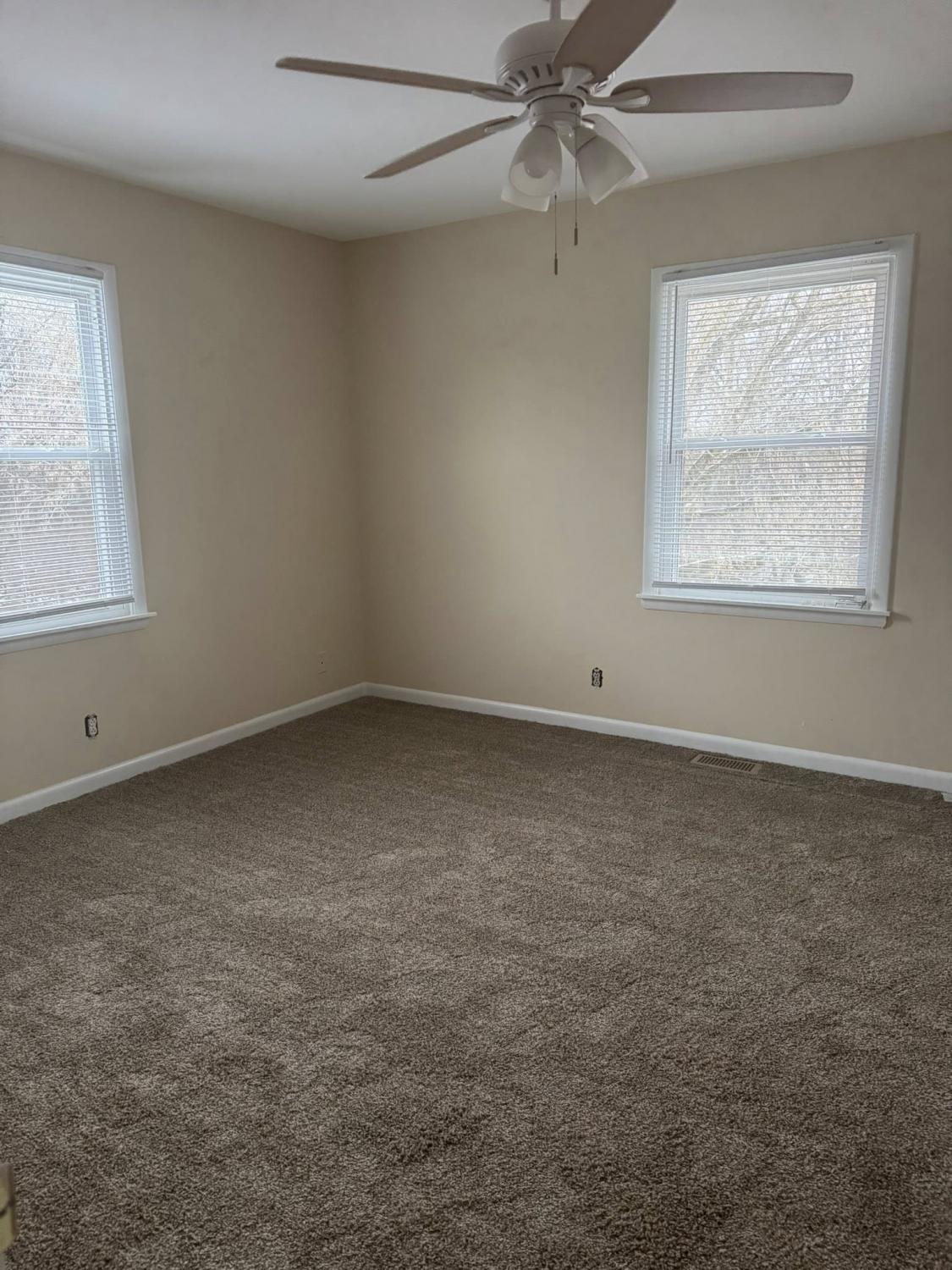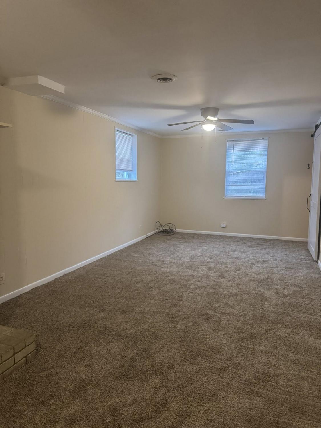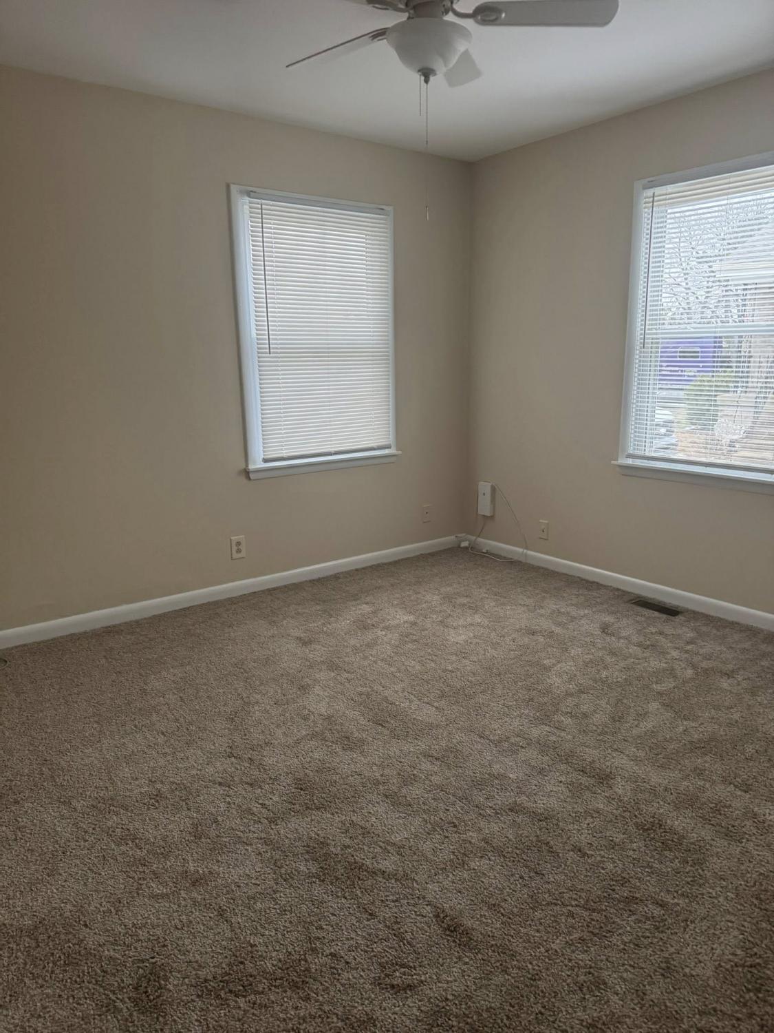 Two bedrooms, 1 bath with walk in shower. Kitchen includes all appliances. Has Washer/Dryer hook-ups. Separate dining room. Flex room/bedroom and storage area in basement. New carpet, freshly painted. References and background check required.