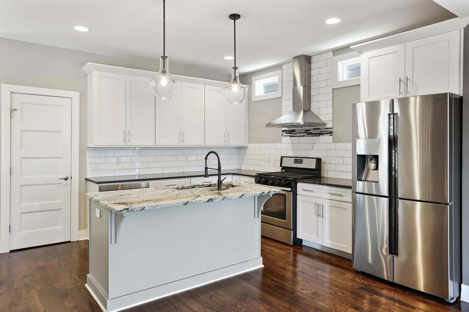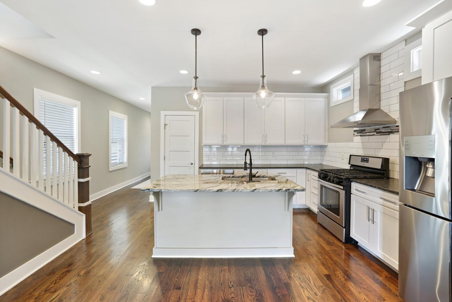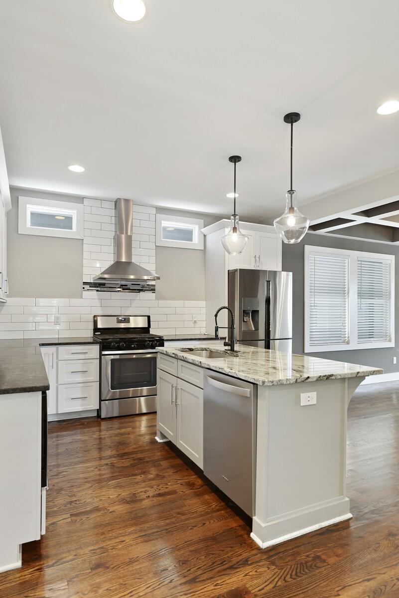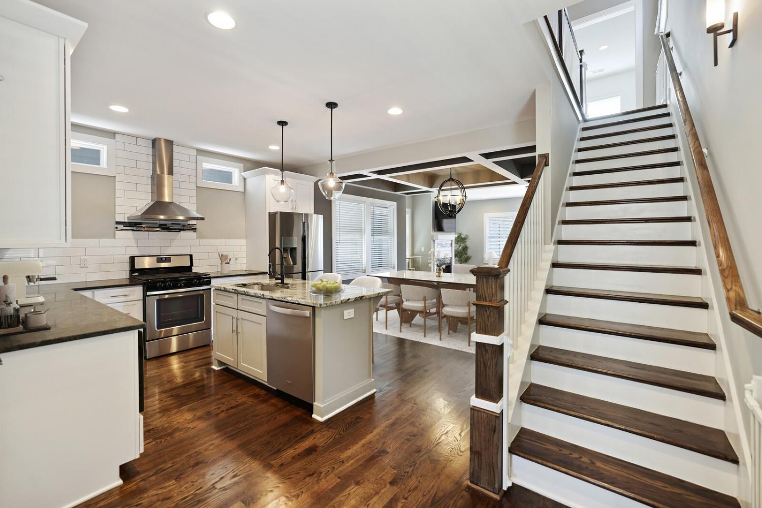 Welcome to this beautifully designed home in the heart of The Nations, one of Nashville’s most sought-after neighborhoods. Built in 2017 & offering over 2,100 square feet, this 3 bedroom, 3 bath residence combines modern style w/ everyday comfort. The location allows easy access to I-40 for a quick downtown commute & close proximity to shops & restaurants. A detached 2 car carport w/ garage door provides privacy & security, while fully fenced front & back yards create the perfect setting for both pets & entertaining. A back deck with adds to the home’s functionality. Inside, the main level features hardwood flooring throughout & an open-concept design. The chef’s kitchen has stainless steel appliances—including a refrigerator that conveys—granite countertops, a large island, tile backsplash, and a spacious eat-in area highlighted by a coffered ceiling & designer light fixture. The family room offers a gas fireplace, walls of windows that fill the space w/ natural light, & access to the deck for effortless indoor/outdoor entertaining. A main level bedroom w/ hardwood floors & a full bath provides a flexible guest or office option. Upstairs, hardwoods continue on the stairs and hallway, leading to a large bonus room with a closet—perfect for a home office, gym, playroom, or media space. The primary suite includes plush carpet & two expansive walk-in closets. The spa-like primary bath features double vanities, a tiled shower, tile flooring, & a private water closet. A third bedroom also includes plush carpet & private access to a full Jack & Jill bath, which connects to the hallway for shared access w/ the bonus room. The upstairs laundry closet, equipped with a washer and dryer that convey. Smart home touches like the Blink doorbell and keyless entry, elegant window coverings, and thoughtful details throughout make this home truly move in ready. Home Sweet Home! Up to 1% lender credit on the loan amount when buyer uses Seller's Preferred Lender.