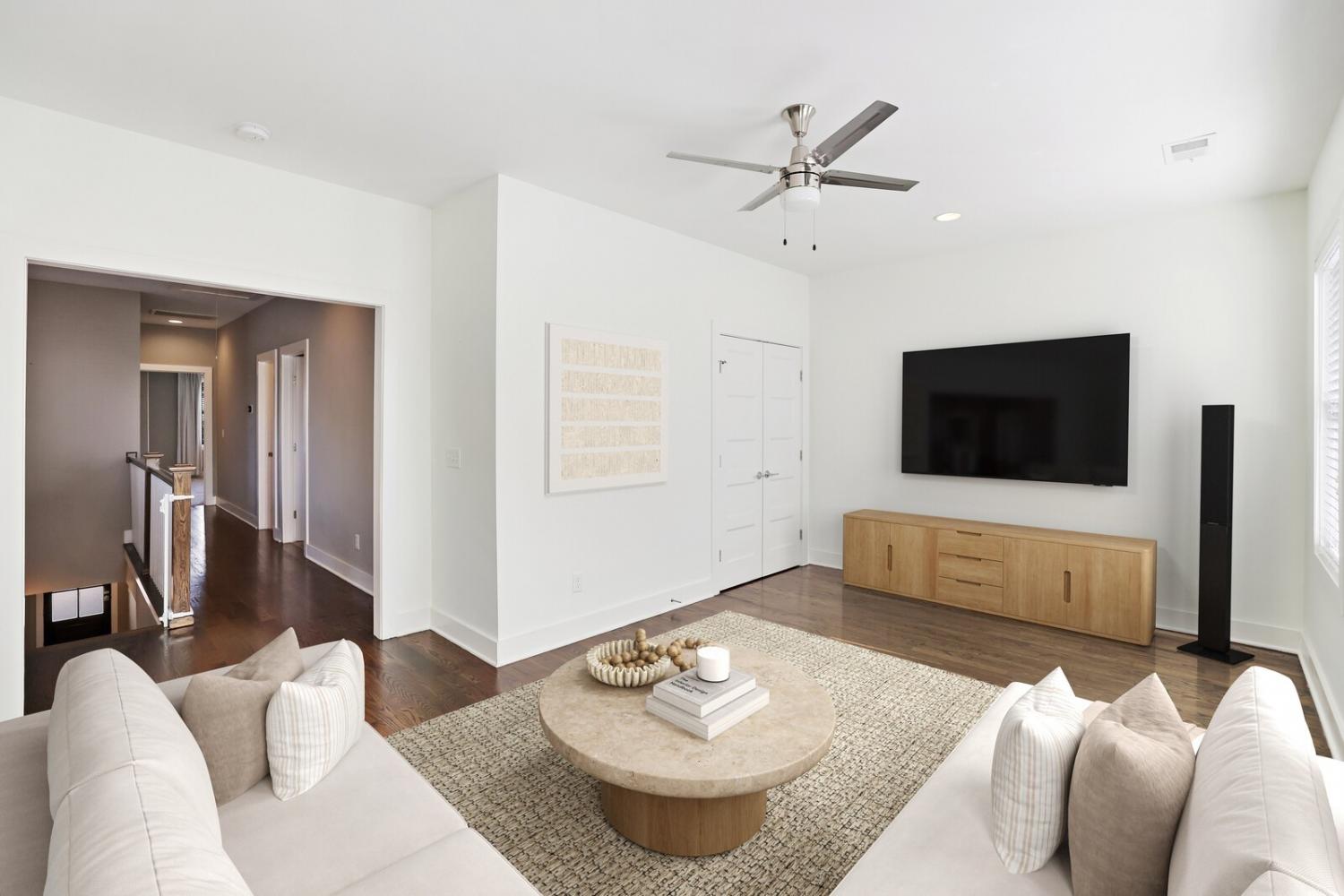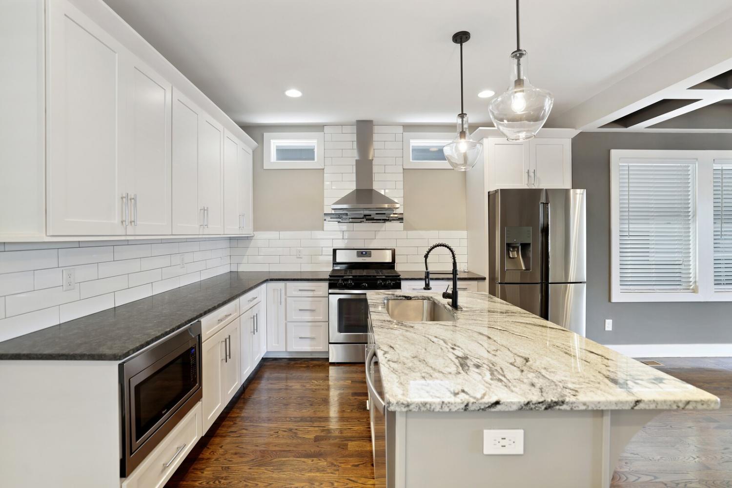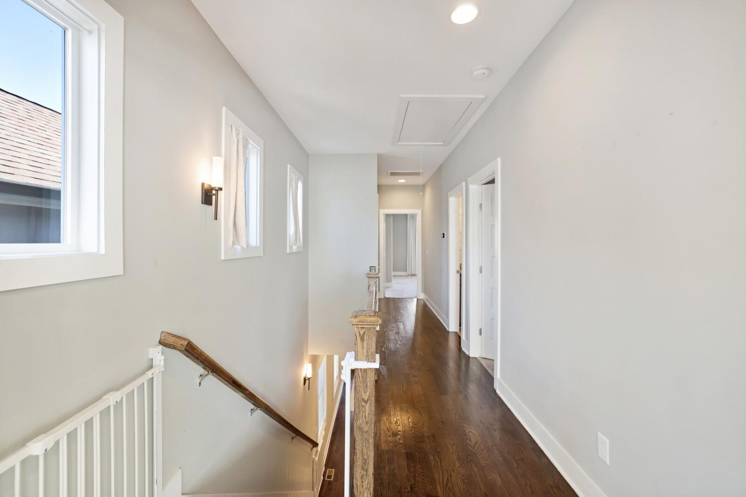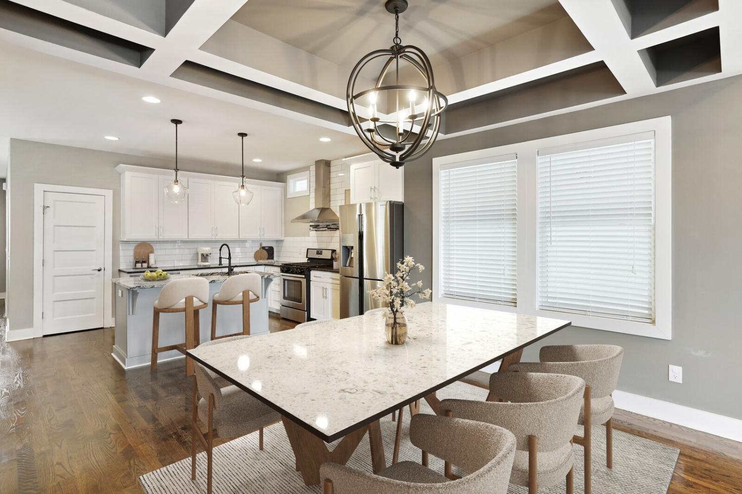 Welcome to this beautifully designed home in the heart of The Nations, one of Nashville’s most sought-after neighborhoods. Built in 2017 & offering over 2,100 square feet, this 3 bedroom, 3 bath residence combines modern style w/ everyday comfort. The location allows easy access to I-40 for a quick downtown commute & close proximity to shops & restaurants. A detached 2 car carport w/ garage door provides privacy & security, while fully fenced front & back yards create the perfect setting for both pets & entertaining. A back deck with adds to the home’s functionality. Inside, the main level features hardwood flooring throughout & an open-concept design. The chef’s kitchen has stainless steel appliances—including a refrigerator that conveys—granite countertops, a large island, tile backsplash, and a spacious eat-in area highlighted by a coffered ceiling & designer light fixture. The family room offers a gas fireplace, walls of windows that fill the space w/ natural light, & access to the deck for effortless indoor/outdoor entertaining. A main level bedroom w/ hardwood floors & a full bath provides a flexible guest or office option. Upstairs, hardwoods continue on the stairs and hallway, leading to a large bonus room with a closet—perfect for a home office, gym, playroom, or media space. The primary suite includes plush carpet & two expansive walk-in closets. The spa-like primary bath features double vanities, a tiled shower, tile flooring, & a private water closet. A third bedroom also includes plush carpet & private access to a full Jack & Jill bath, which connects to the hallway for shared access w/ the bonus room. The upstairs laundry closet, equipped with a washer and dryer that convey. Smart home touches like the Blink doorbell and keyless entry, elegant window coverings, and thoughtful details throughout make this home truly move in ready. Home Sweet Home! Up to 1% lender credit on the loan amount when buyer uses Seller's Preferred Lender.