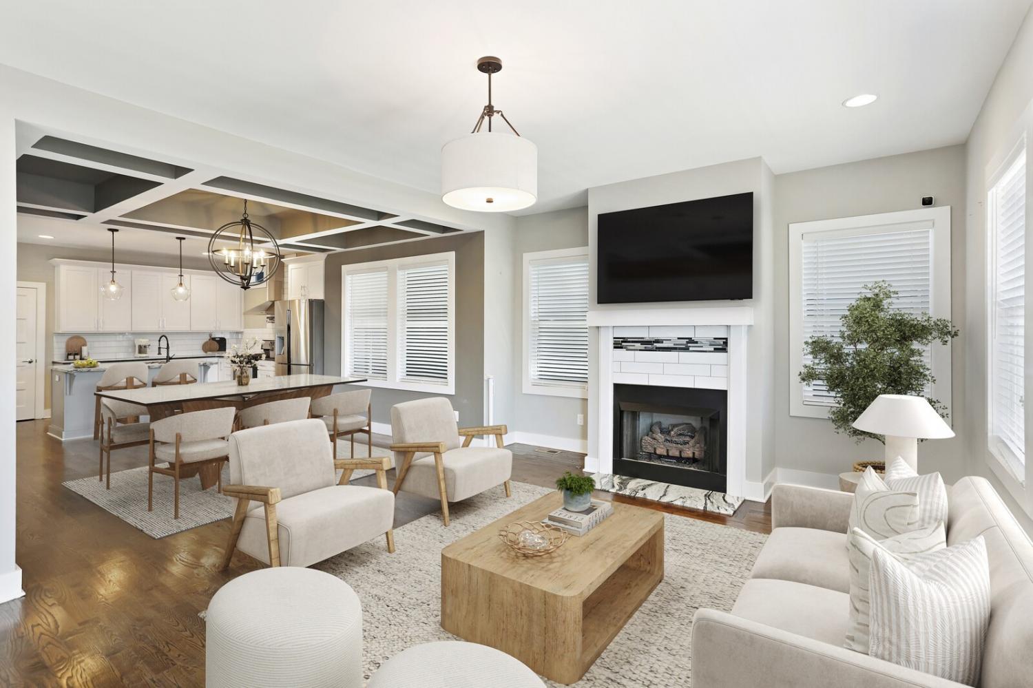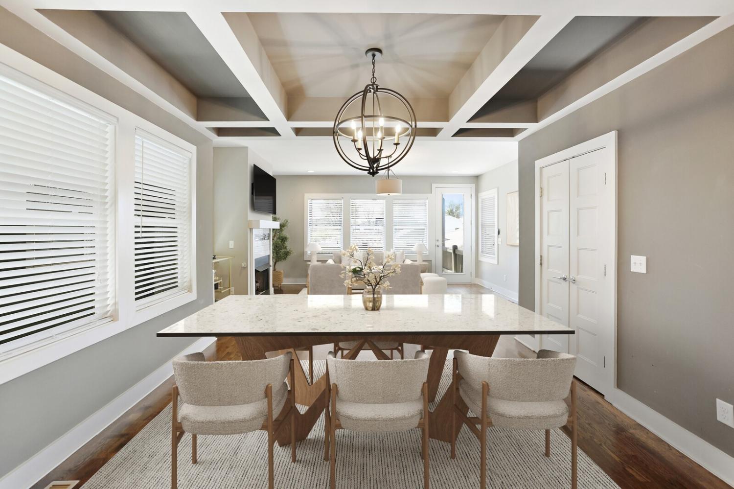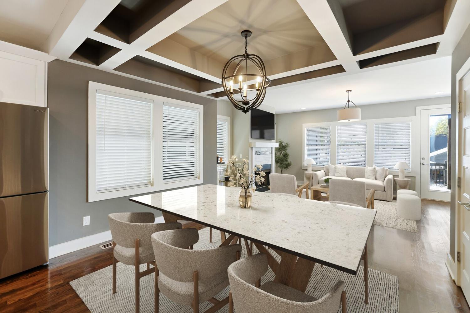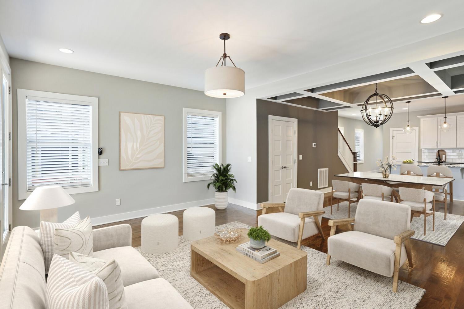 Welcome to this beautifully designed home in the heart of The Nations, one of Nashville’s most sought-after neighborhoods. Built in 2017 & offering over 2,100 square feet, this 3 bedroom, 3 bath residence combines modern style w/ everyday comfort. The location allows easy access to I-40 for a quick downtown commute & close proximity to shops & restaurants. A detached 2 car carport w/ garage door provides privacy & security, while fully fenced front & back yards create the perfect setting for both pets & entertaining. A back deck with adds to the home’s functionality. Inside, the main level features hardwood flooring throughout & an open-concept design. The chef’s kitchen has stainless steel appliances—including a refrigerator that conveys—granite countertops, a large island, tile backsplash, and a spacious eat-in area highlighted by a coffered ceiling & designer light fixture. The family room offers a gas fireplace, walls of windows that fill the space w/ natural light, & access to the deck for effortless indoor/outdoor entertaining. A main level bedroom w/ hardwood floors & a full bath provides a flexible guest or office option. Upstairs, hardwoods continue on the stairs and hallway, leading to a large bonus room with a closet—perfect for a home office, gym, playroom, or media space. The primary suite includes plush carpet & two expansive walk-in closets. The spa-like primary bath features double vanities, a tiled shower, tile flooring, & a private water closet. A third bedroom also includes plush carpet & private access to a full Jack & Jill bath, which connects to the hallway for shared access w/ the bonus room. The upstairs laundry closet, equipped with a washer and dryer that convey. Smart home touches like the Blink doorbell and keyless entry, elegant window coverings, and thoughtful details throughout make this home truly move in ready. Home Sweet Home! Up to 1% lender credit on the loan amount when buyer uses Seller's Preferred Lender.
