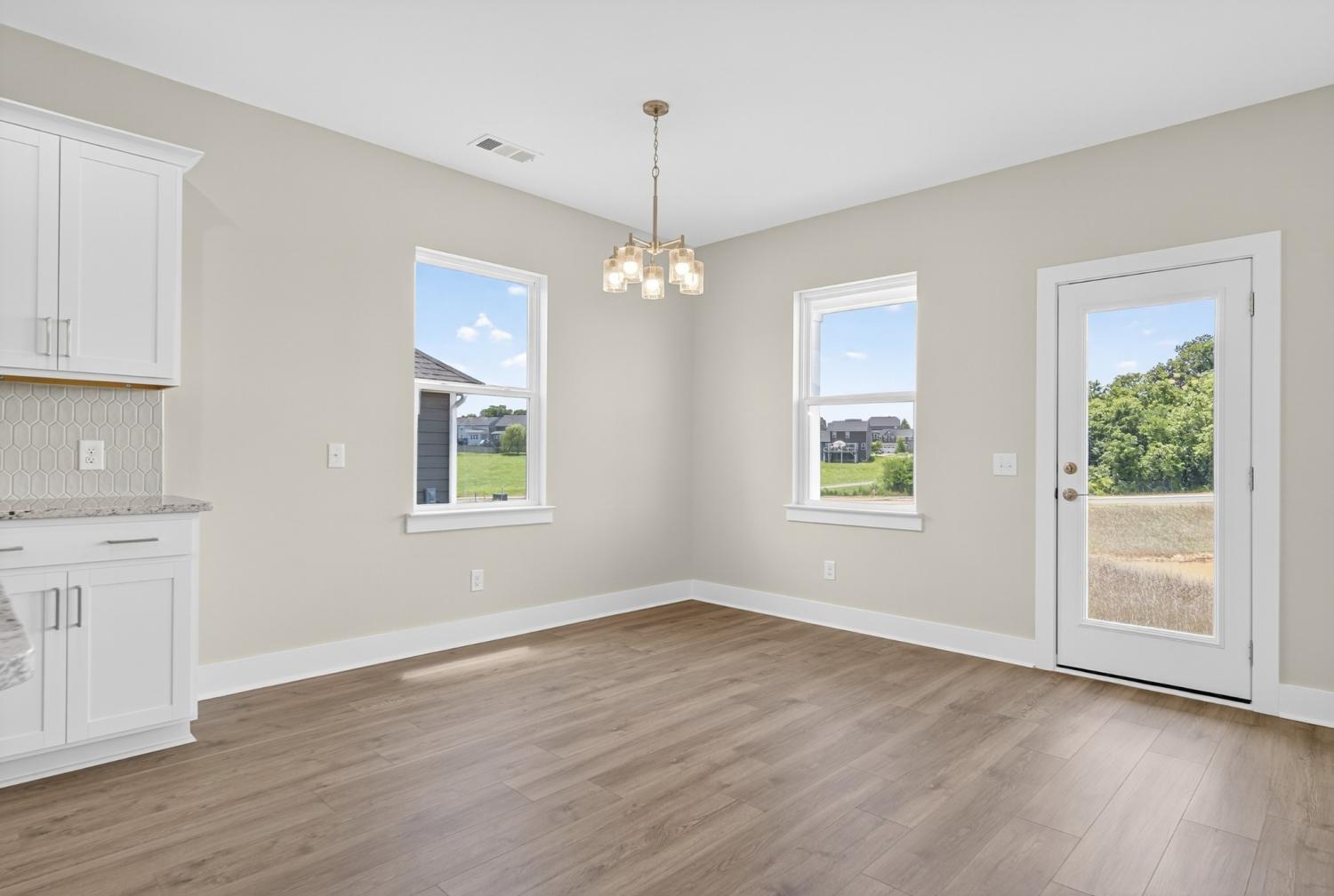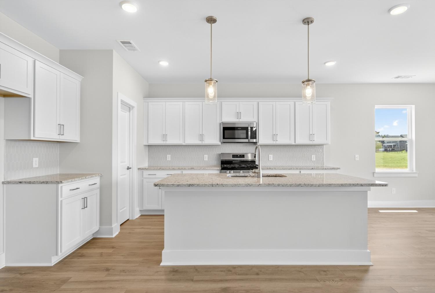 Move in ready home! The Oakland Plan by DRB Homes features 4 bedrooms, 2.5 baths, a flex room, and a spacious game room. Enjoy an open-concept main level with soaring ceilings, a flex/bonus room, laundry, and a private powder room. The designer kitchen wows with gas appliances a large island, beautiful white shaker style cabinets with Craftsman base molding, granite countertops, LED and pendant lighting, and a walk-in pantry. The main-level primary suite offers a walk-in tile shower, double vanities with quartz tops, and a large walk-in closet. Upstairs includes a game room, three bedrooms, and a full bath with double vanities. Exterior highlights: covered patio, 2-car garage with insulated doors, smart home panel, and smart deadbolt. Tour today just Enter DRB Homes McClure Farms into your GPS to find us! All incentives applied to this price, Lot 79