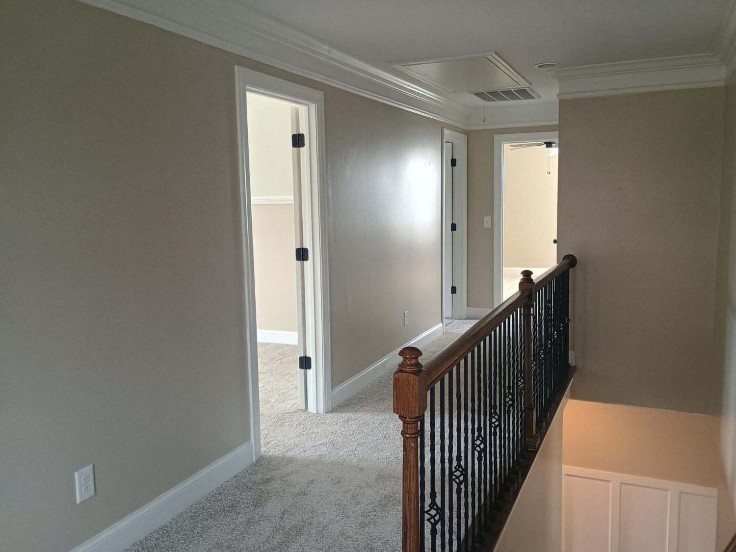 4 Bedroom custom built home sitting on a quiet cul-de-sac. All brick home, spacious rooms. 3 car garage. Abundant natural light through out home. Fully fenced backyard. Covered back porch. Coffered ceilings in living room and primary bedroom. Huge bonus room on upper level. Very bright kitchen, dual ovens, gas stove top. 2 sided stone fireplace. Neighborhood designed for walking with sidewalks and street lights. Floored attic space for maximum storage. Hardwood floors in main living area. Home has been freshly painted and new carpet installed in all bedrooms.