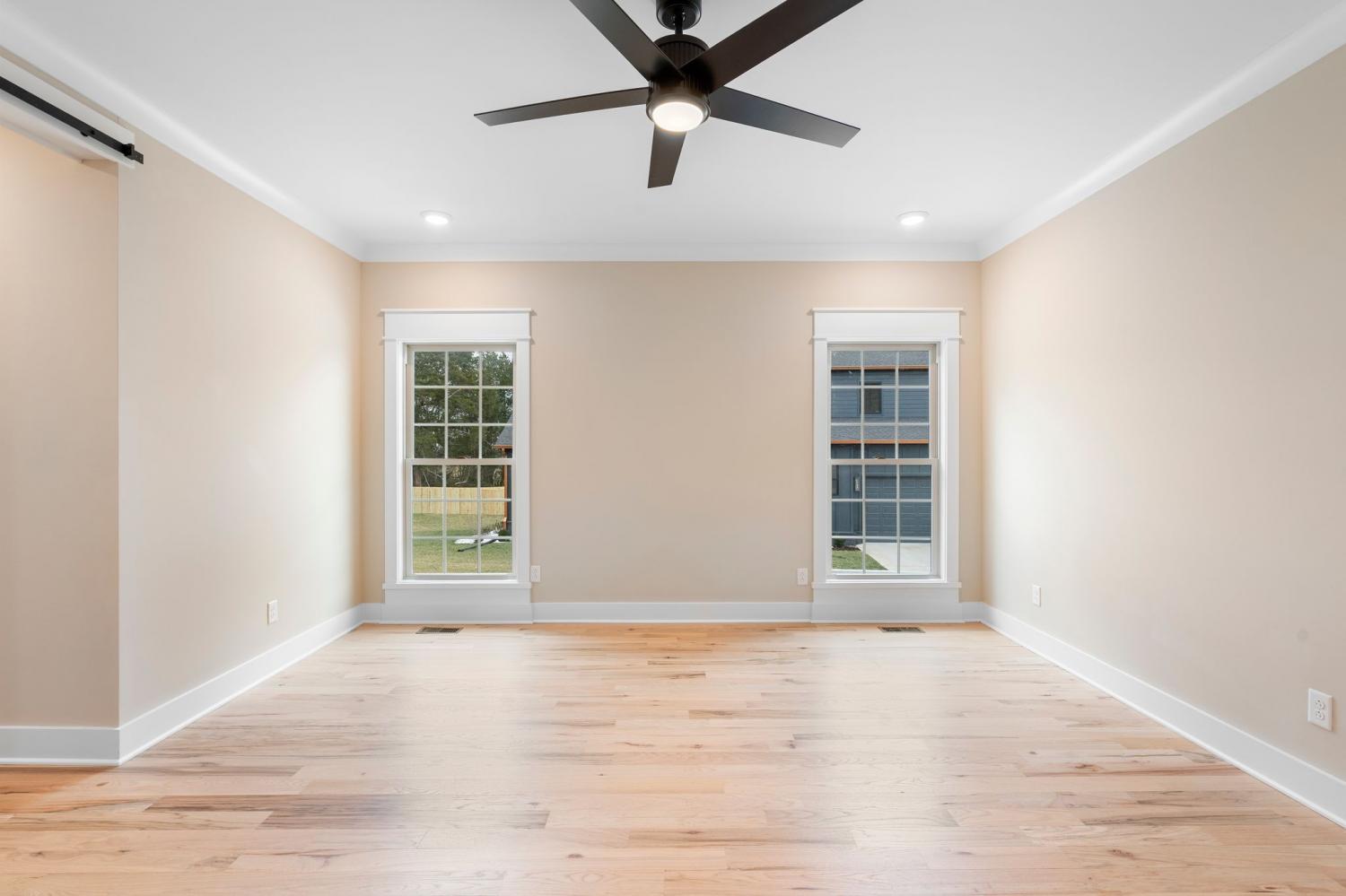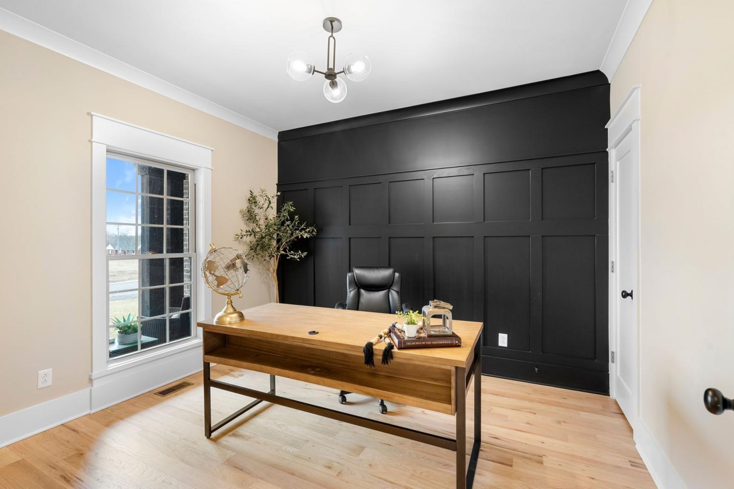 All brick home with elegant features and spacious design. Beautiful leveled lot lined with mature trees, this home is designed with elegance and functionality in mind. This home features an open floor plan, abundanct natural light, exquisite craftsmanship, and hardwood through out main level. Spacious living room with custom built in cabinetry and cozy fireplace. Kitchen with custom cabinetry, premium counter tops ss appliances, large island, and pantry. Generously sized bedrooms, walk in closets, and baths. Primary bedroom with spa like bathroom. Free standing soaking tub, his and hers vanities, custom tile shower, along with 2 large walk in closets. For those who needed a dedicated space, the office stands out with its beautiful accent wall and double glass doors. This space is both functional and visually appealing. Expansive bonus room that leave the possiblities endless. Stepping outside, enjoy the 3 car garage with extra turnaround space, covered back porch, and extended patio making it a true escape from the everyday hustle.