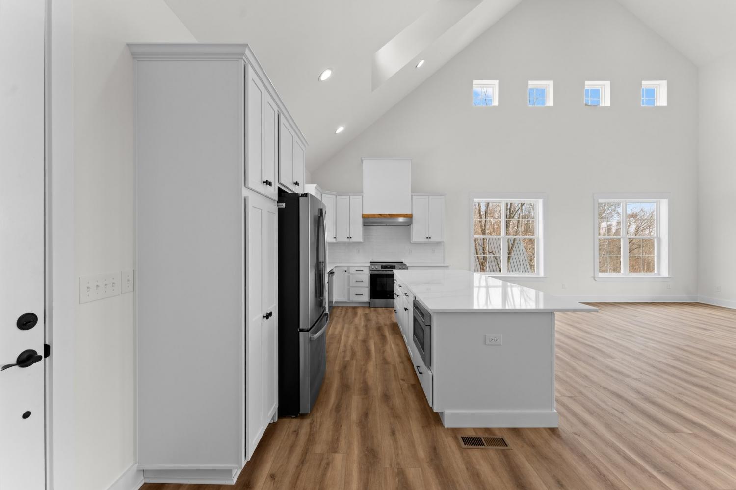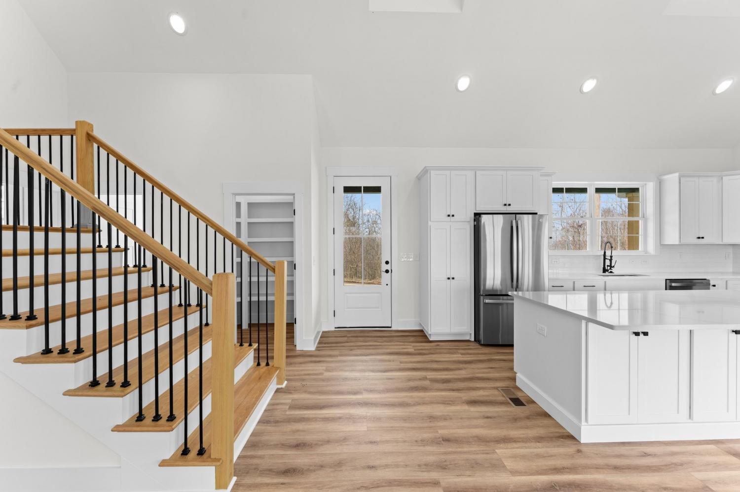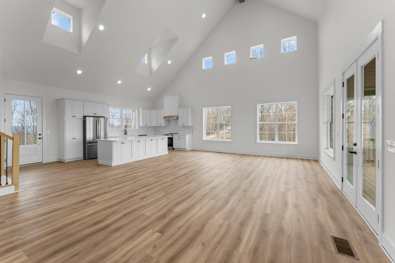 Wake up to serene lake views in this exceptional home designed for both comfort and entertaining. The open living area features vaulted ceilings that create an airy, expansive feel, perfect for hosting gatherings or simply relaxing while taking in the views. Large windows frame the lake and fill the home with natural light, while a spacious main-level balcony seamlessly extends the living room outdoors, offering incredible views and an ideal setup for entertaining or enjoying quiet moments. The primary suite is a true retreat, offering stunning lake views right from your bed, allowing you to start every morning with a breathtaking backdrop. A spacious laundry room adds everyday convenience with a dedicated sink and abundant cabinetry for storage and organization. Downstairs, the home offers 1,353 square feet of unfinished basement space, providing endless potential to customize whether you envision a recreation room, home gym, additional living space, or guest quarters. Outside, a large driveway provides ample parking for family, friends, and lake guests alike. With its thoughtful layout, incredible views, and room to grow, this lake home is the perfect blend of lifestyle and opportunity.