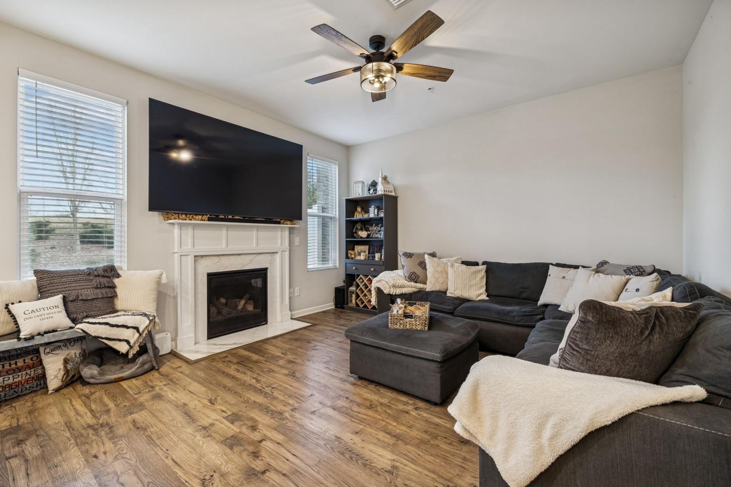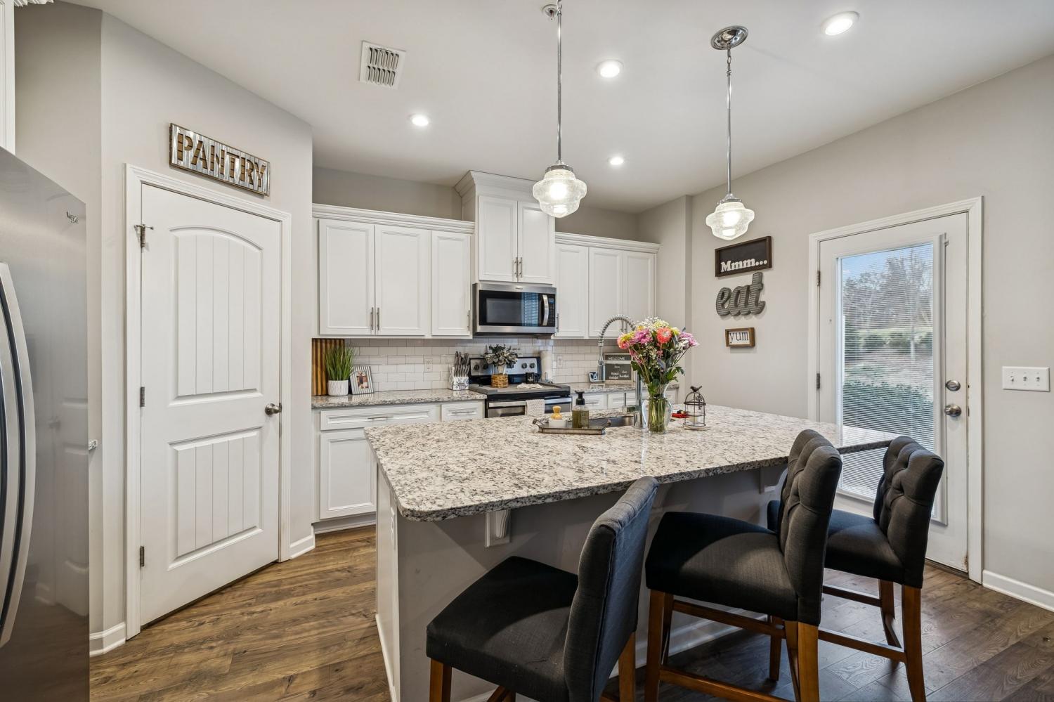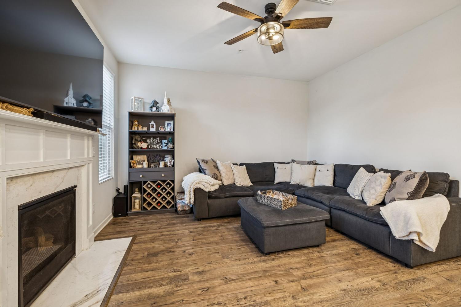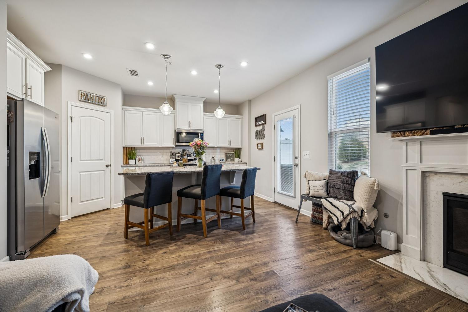Welcome home to this beautifully maintained 2 bedroom, 2.5 bath townhome offering comfort, style, and convenience in one perfect package. Step inside to an inviting open concept main level featuring durable flooring, a cozy living room fireplace, neutral finishes, and abundant natural light ideal for everyday living and entertaining. The kitchen shines with granite countertops, stainless appliances, ample cabinetry, a pantry, and a large island with bar seating. Upstairs, you will find two spacious bedrooms, each with its own private bath, providing comfort and privacy for family or guests, a loft area and full laundry room. Enjoy relaxing mornings on the covered front porch or your back patio, the convenience of a one car garage, and effortless living with low maintenance exterior care. The neighborhood offers a community pool and dog park, and the home is located just minutes from interstate access, shopping, dining, and everyday essentials.
