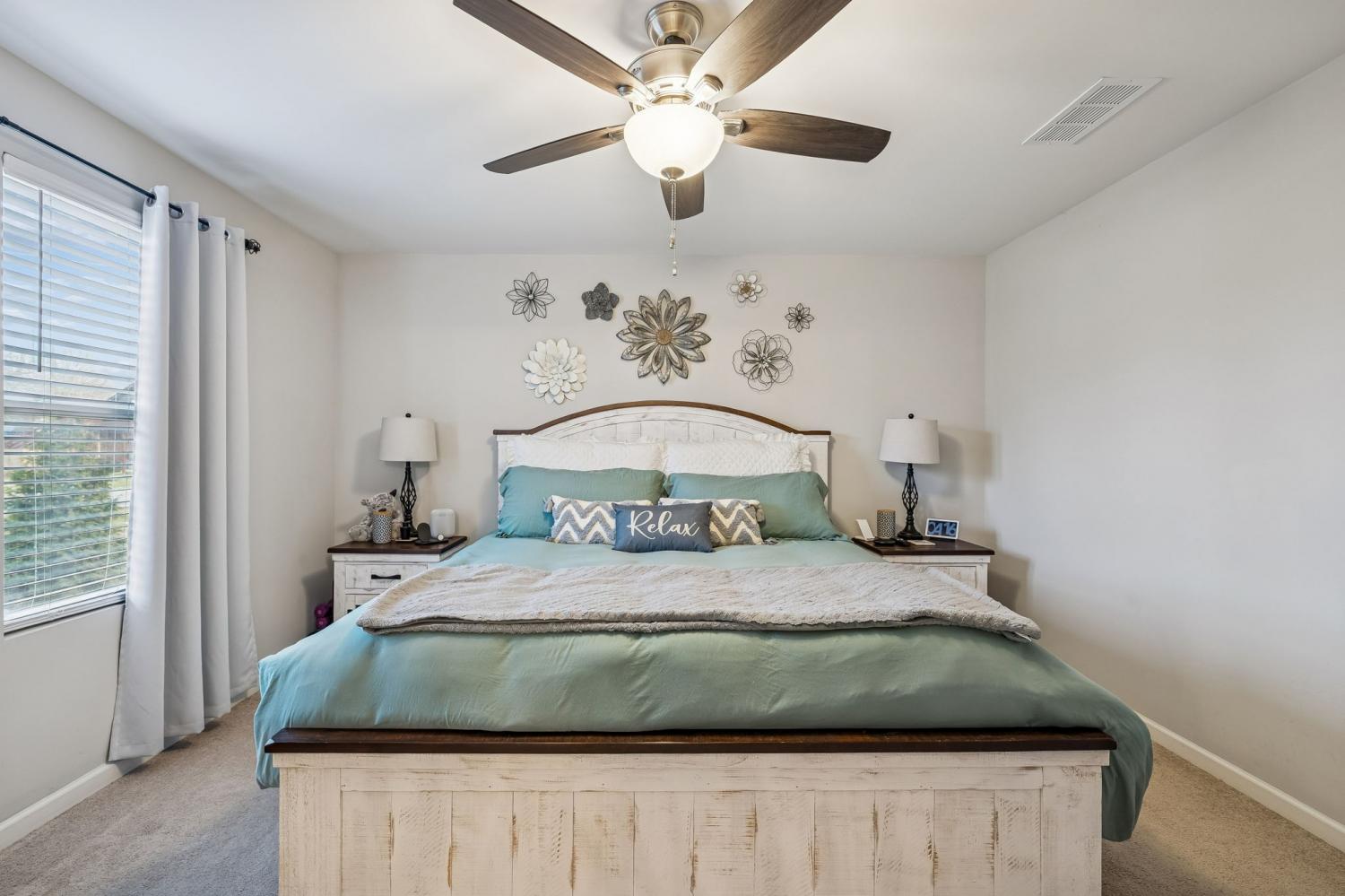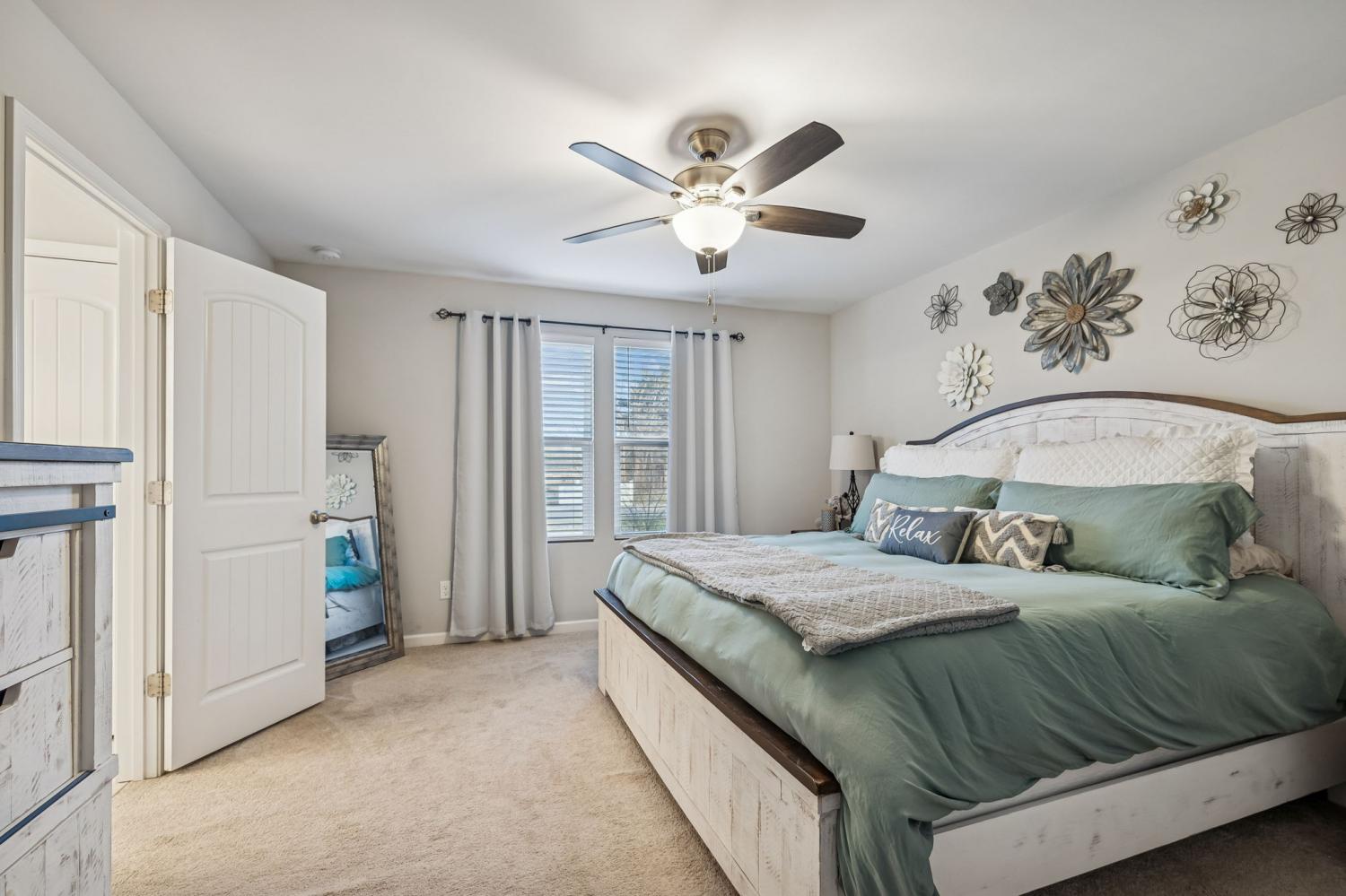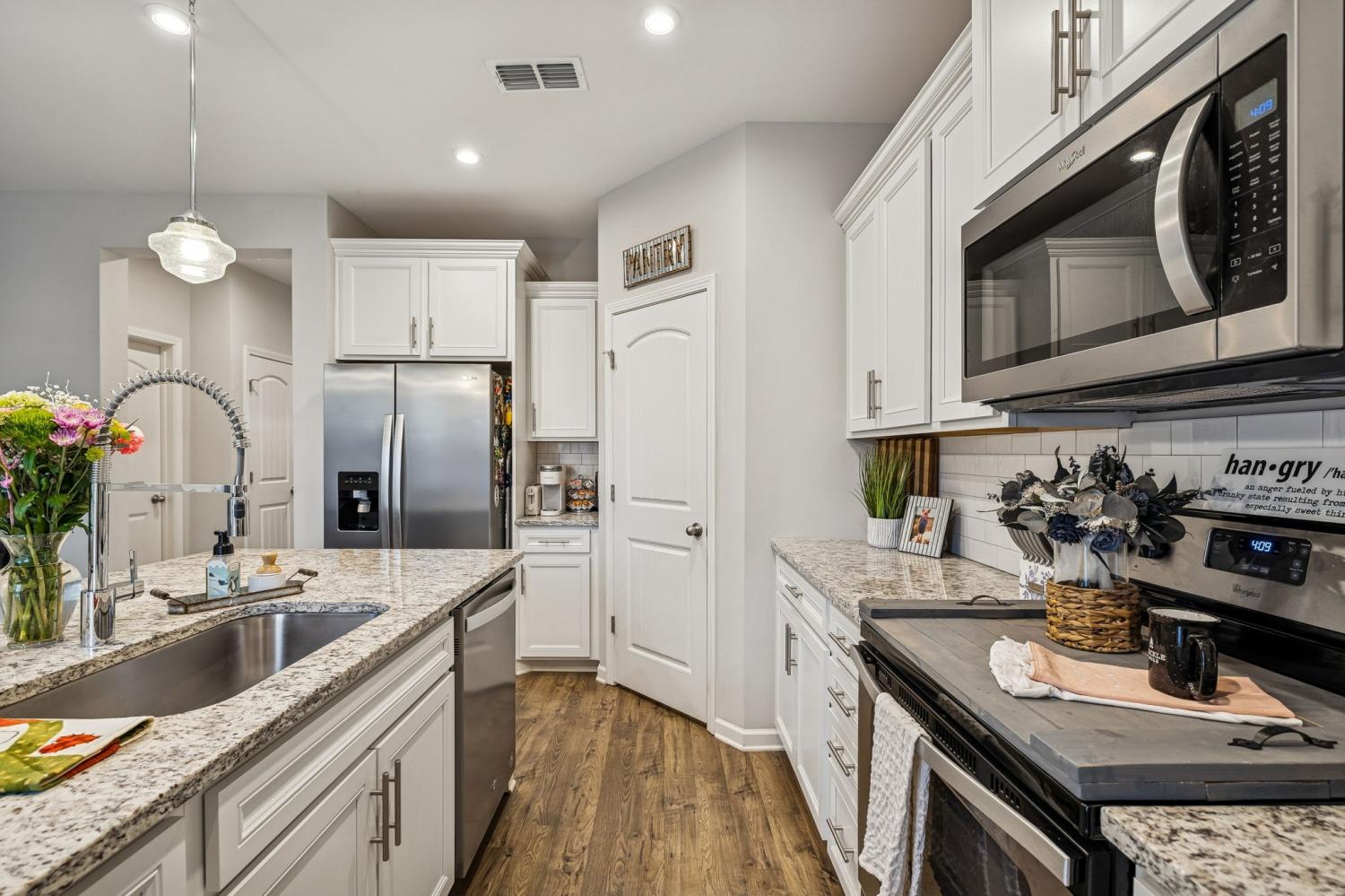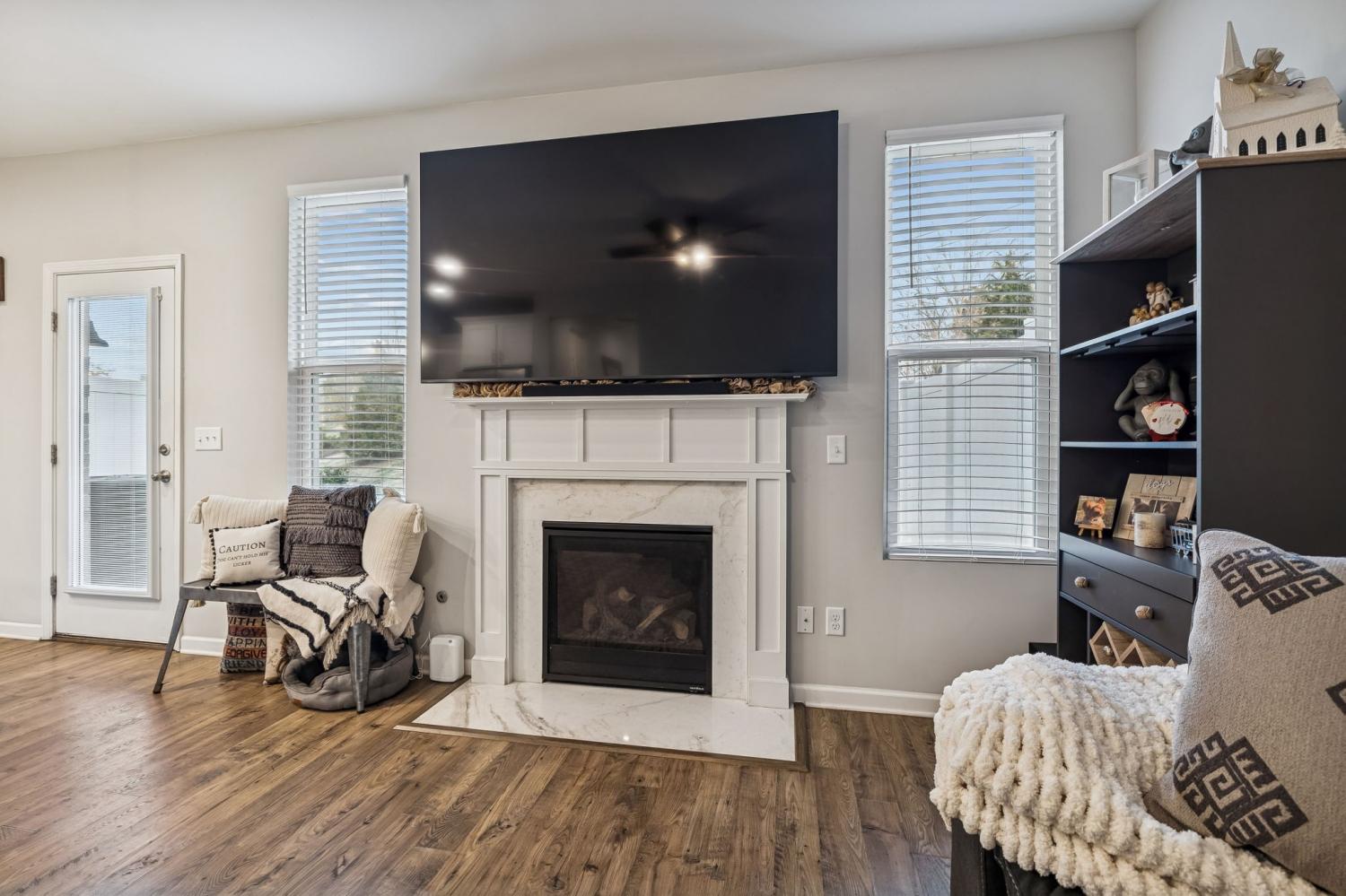 Welcome home to this beautifully maintained 2 bedroom, 2.5 bath townhome offering comfort, style, and convenience in one perfect package. Step inside to an inviting open concept main level featuring durable flooring, a cozy living room fireplace, neutral finishes, and abundant natural light ideal for everyday living and entertaining. The kitchen shines with granite countertops, stainless appliances, ample cabinetry, a pantry, and a large island with bar seating. Upstairs, you will find two spacious bedrooms, each with its own private bath, providing comfort and privacy for family or guests, a loft area and full laundry room. Enjoy relaxing mornings on the covered front porch or your back patio, the convenience of a one car garage, and effortless living with low maintenance exterior care. The neighborhood offers a community pool and dog park, and the home is located just minutes from interstate access, shopping, dining, and everyday essentials.