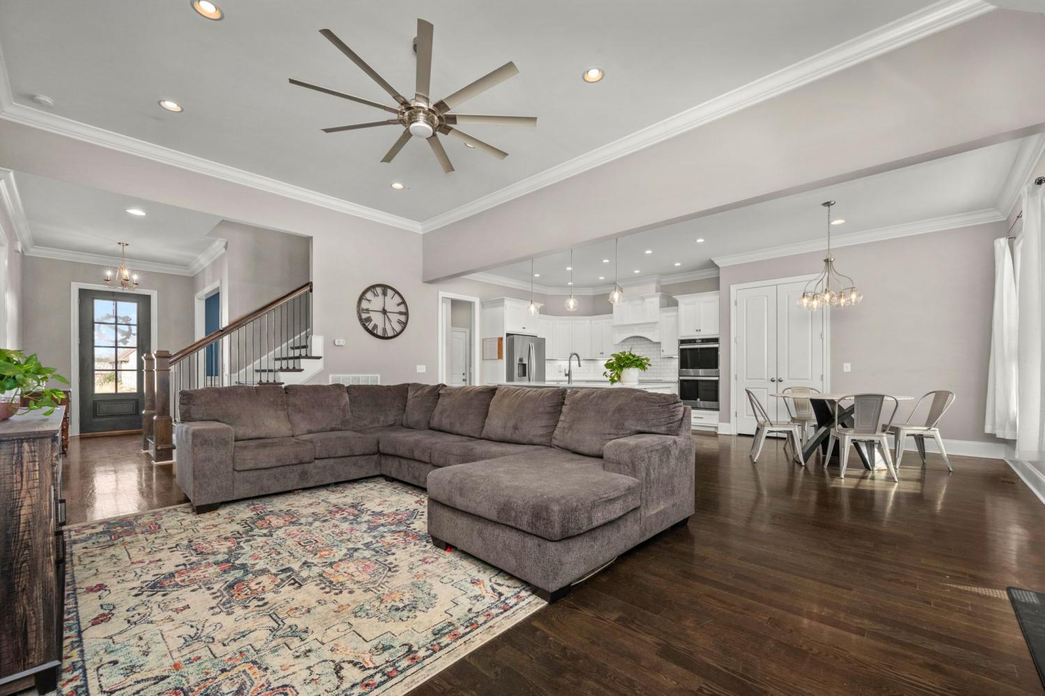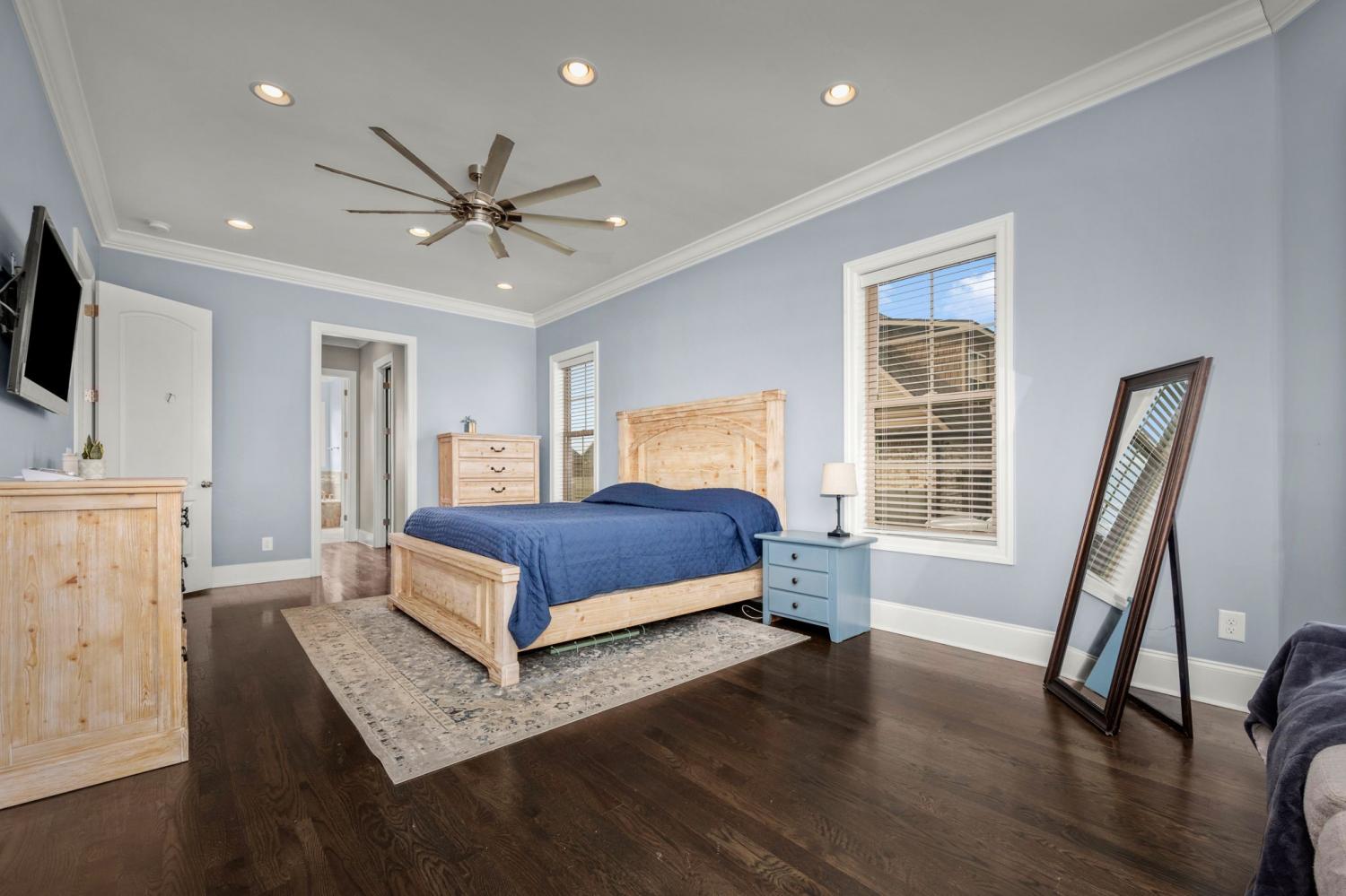 Exceptional value at under $200 per square foot, this beautifully crafted home offers impressive space, thoughtful design, and quality finishes throughout. Every room—including all bedrooms—is generously sized, providing comfort, flexibility, and room to grow. The stunning kitchen is designed for both everyday living and entertaining, featuring a cooktop, double ovens, large island, and beautiful finishes including quarts tops with abundant cabinetry and workspace. The primary suite offers a true retreat feel with a spacious layout, separate vanities, oversized walk-in shower, soaking tub, and dual walk-in closets. With two bedrooms on the main level and two additional bedrooms upstairs, plus three full baths and a large bonus room, the floor plan accommodates a variety of lifestyles including guests, home office needs, or multi-generational living. Additional highlights include detailed trim work and crown molding on both levels, walk-in closets with wood built-in shelving in every bedroom, and a large utility room with extensive cabinetry and workspace. Ample walk-in storage is already framed, floored, and wired for easy future expansion. The home also features two 50-gallon water heaters, over 160 recessed lights (most on dimmers), and extensive exterior lighting. Exterior walls are constructed with 2x6 framing, and the home includes reinforced structural features and a storm-ready interior safe space for added peace of mind. There is a 16x15 covered patio with another 450 sq ft of patio space with a fenced back yard. Oversized garage and plenty of space in the driveway for your large cars or trucks. This is a rare opportunity to own a home that combines size, craftsmanship, and value in one remarkable package. Check out the 3D virtual and floorplan in the links and photos Contact us to schedule your private showing today or contact your Realtor.