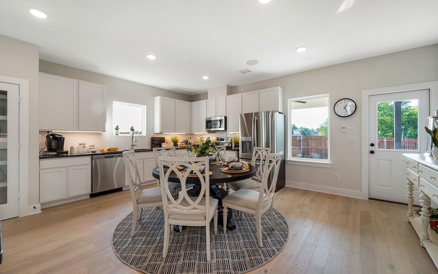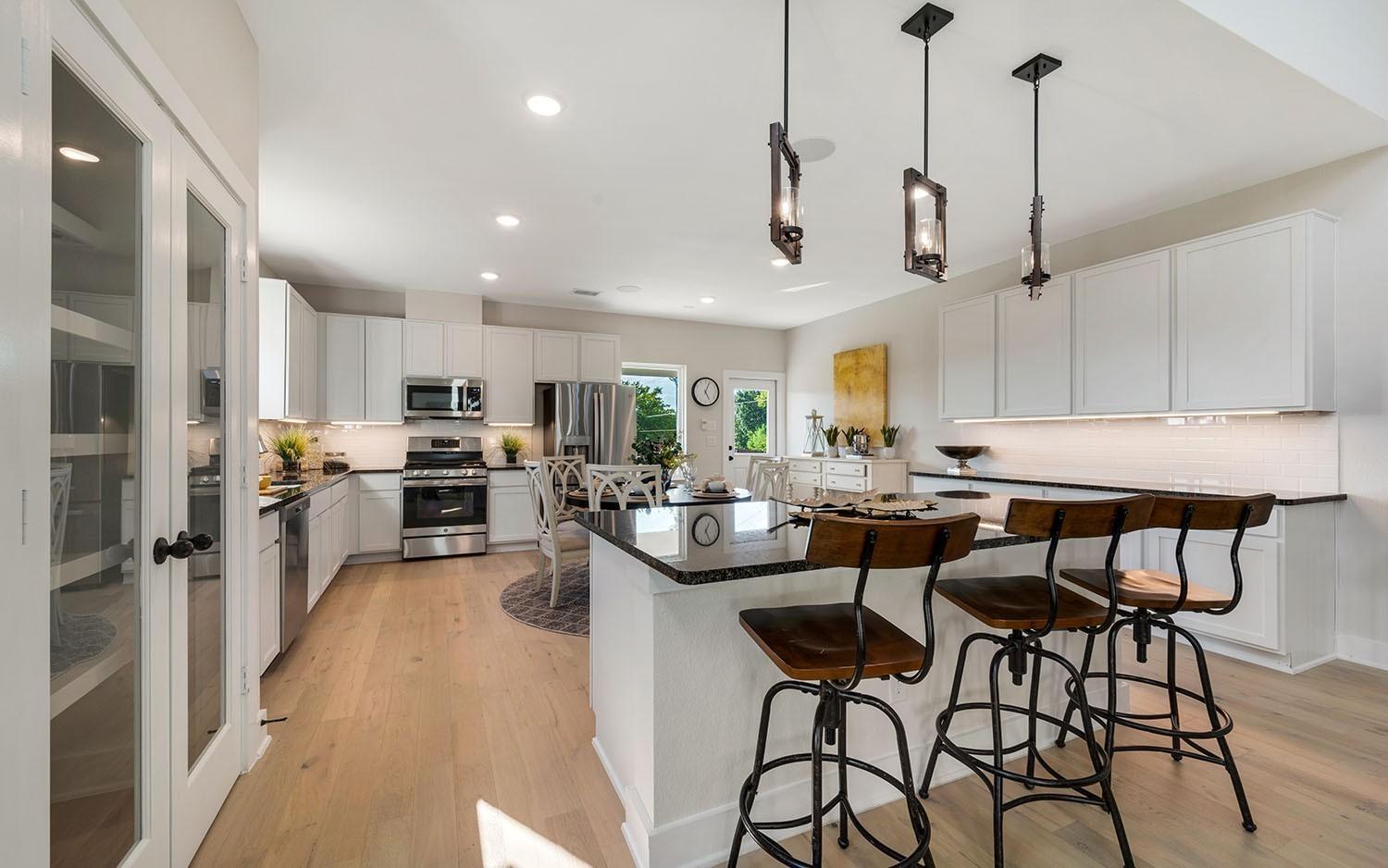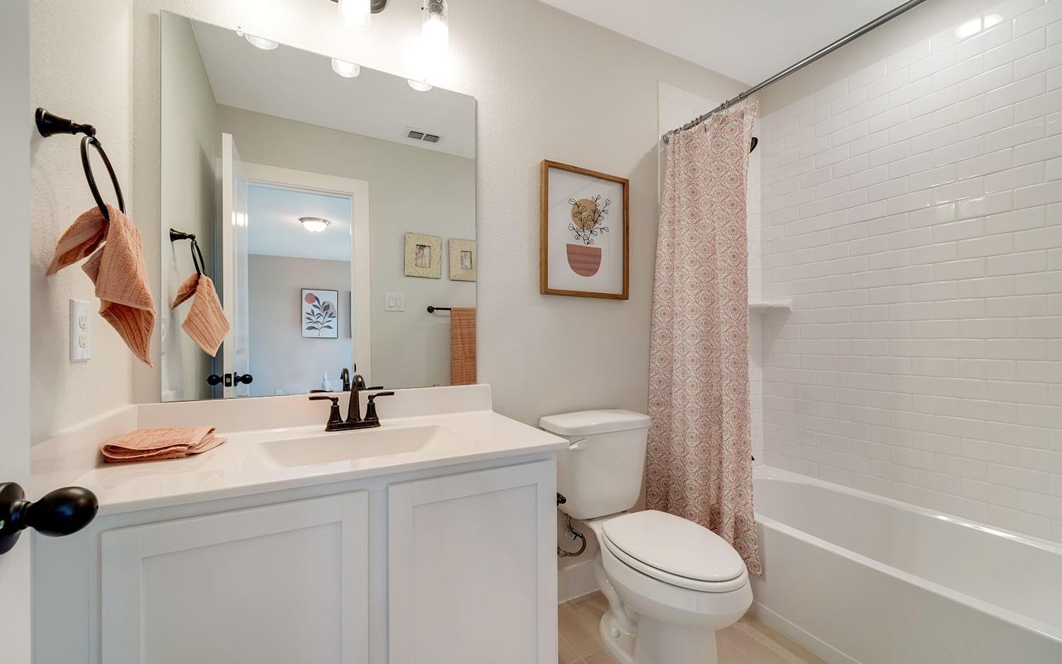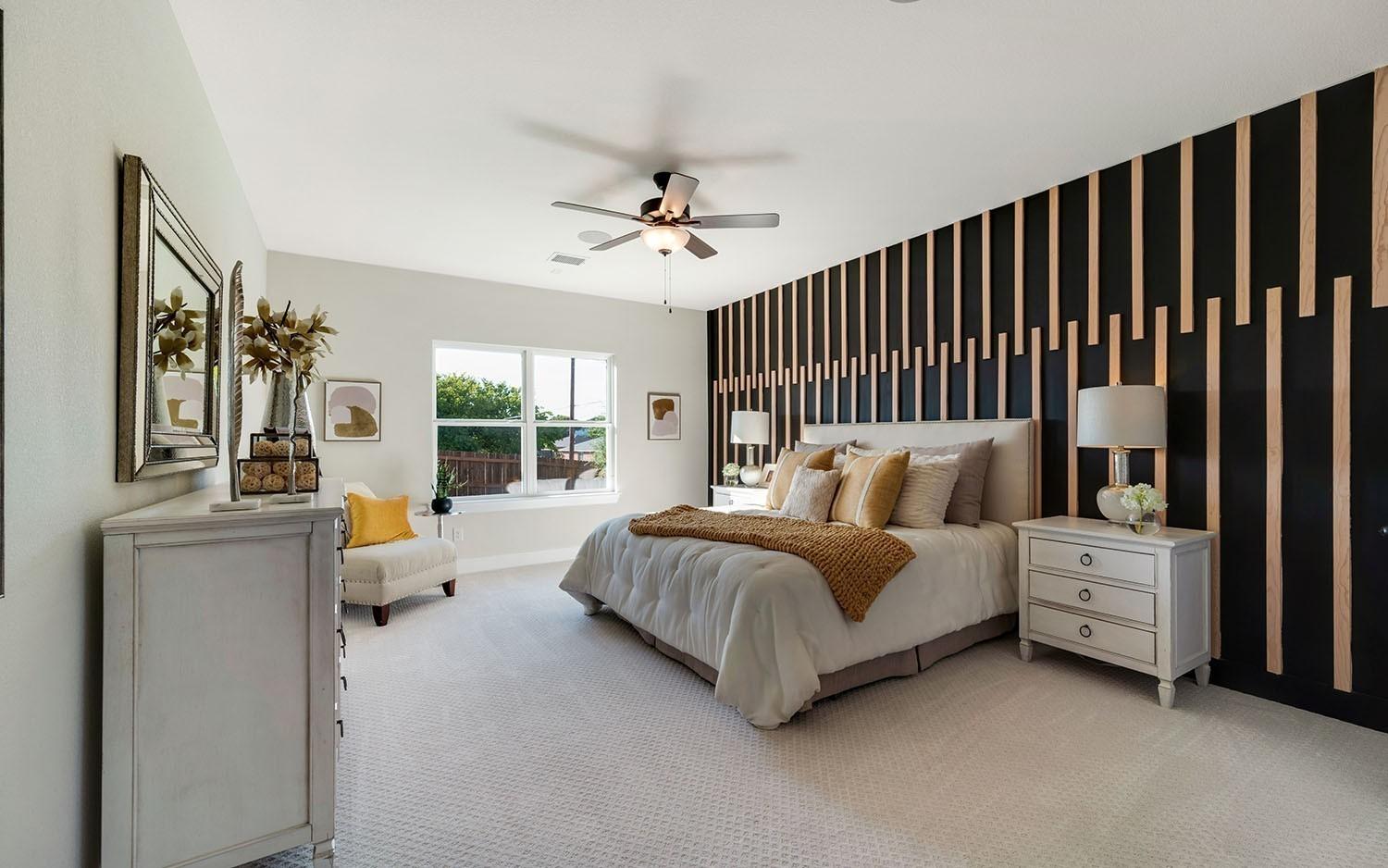 The Concho is a beautifully designed five-bedroom home offering exceptional space, flexibility, and refined comfort. A welcoming foyer opens to a private main-level bedroom, while the light-filled two-story family room anchors the open-concept layout and flows seamlessly into the oversized kitchen with granite countertops, island, and breakfast area. The main-level primary suite provides a private retreat with a spa-inspired bath, separate tub and shower, and expansive walk-in closet. Upstairs features three additional bedrooms, two full baths, and a generous game room—perfect for entertaining or everyday living. A standard three-car garage and optional covered patio complete this thoughtfully crafted home. Model Home Open: Wed–Sun | 10 AM–6 PM