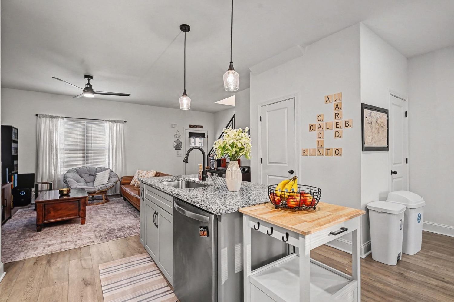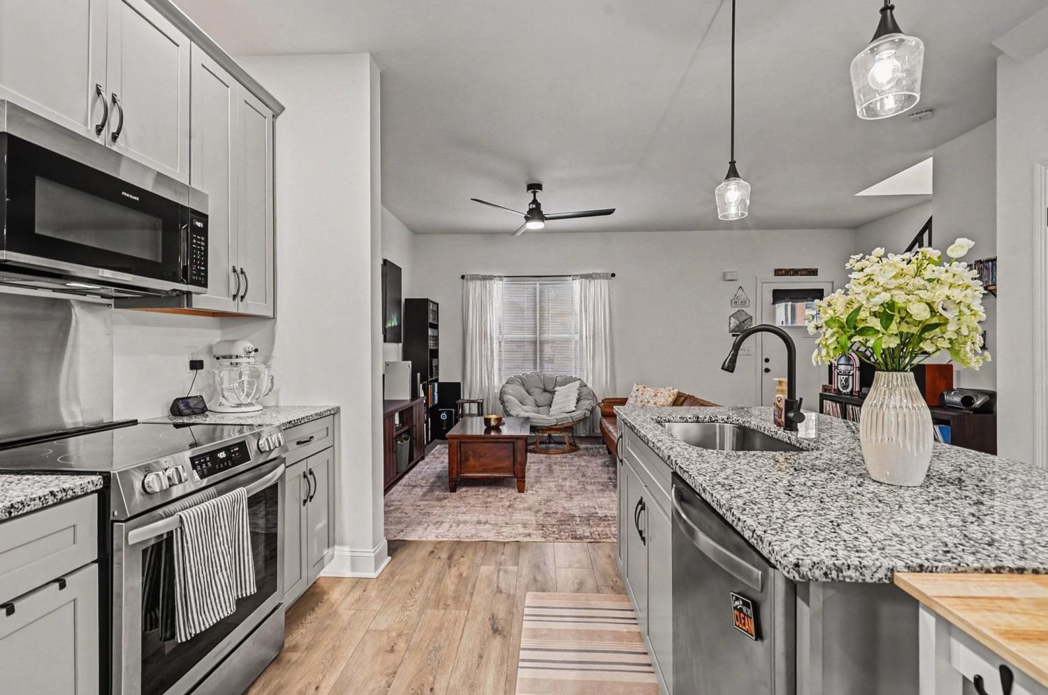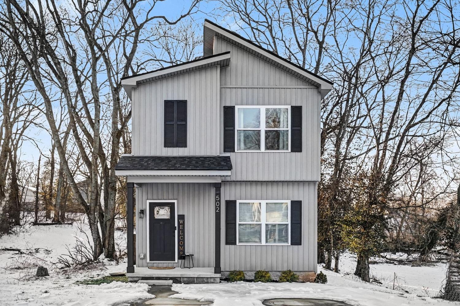 Like new - 2 year old contemporary construction in the heart of Downtown Clarksville, just steps from APSU, local coffee shops, shopping, and restaurants. The main level offers an open-concept living space with a half bath, laundry area, and an eat-in kitchen featuring a large island, stainless steel appliances, and granite countertops. Owner’s suite with a large walk-in closet and a beautiful private bathroom . Two additional bedrooms share a full bath. Tucked away on a quiet, wooded lot, this home blends modern design with a peaceful setting.