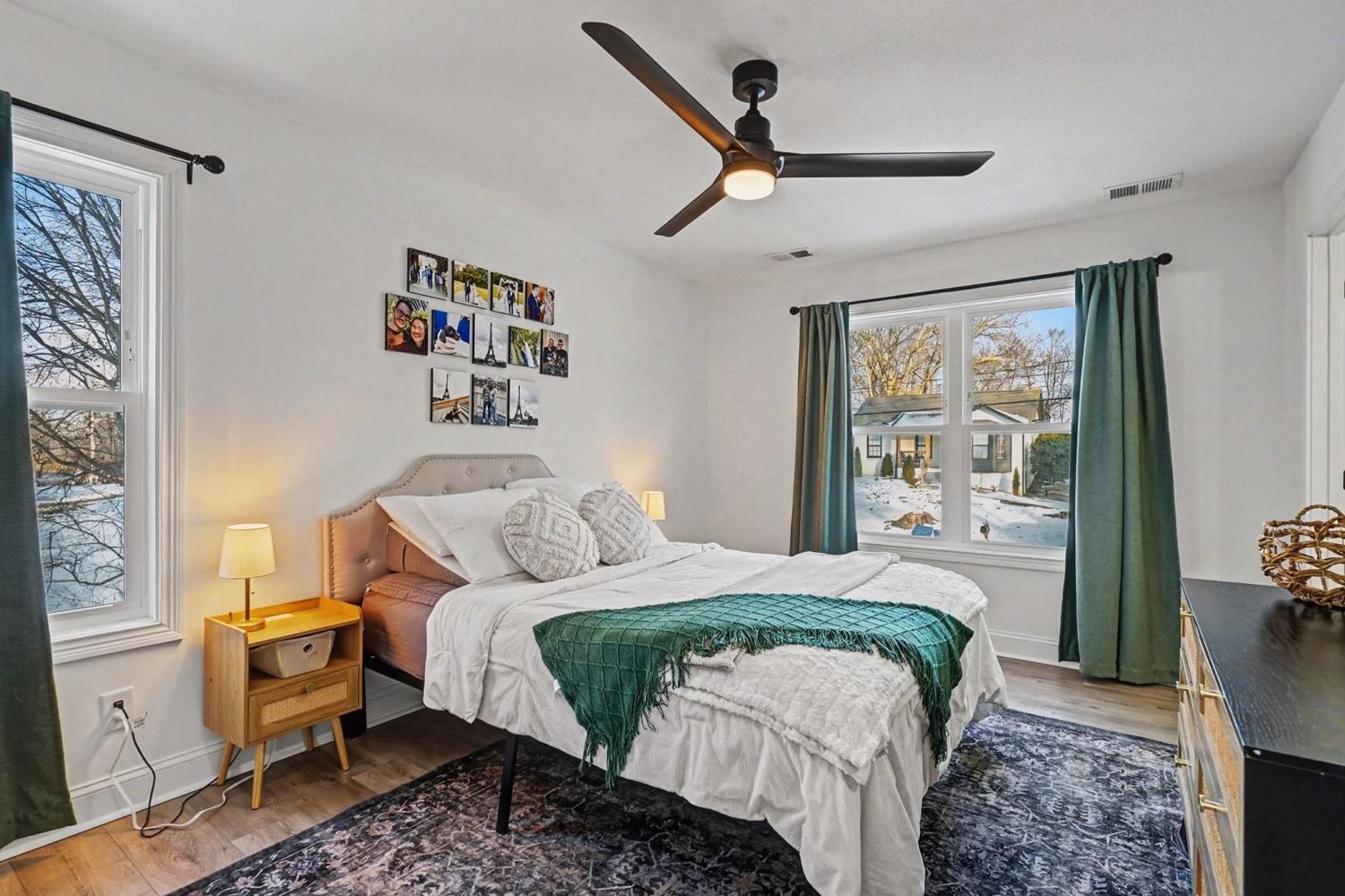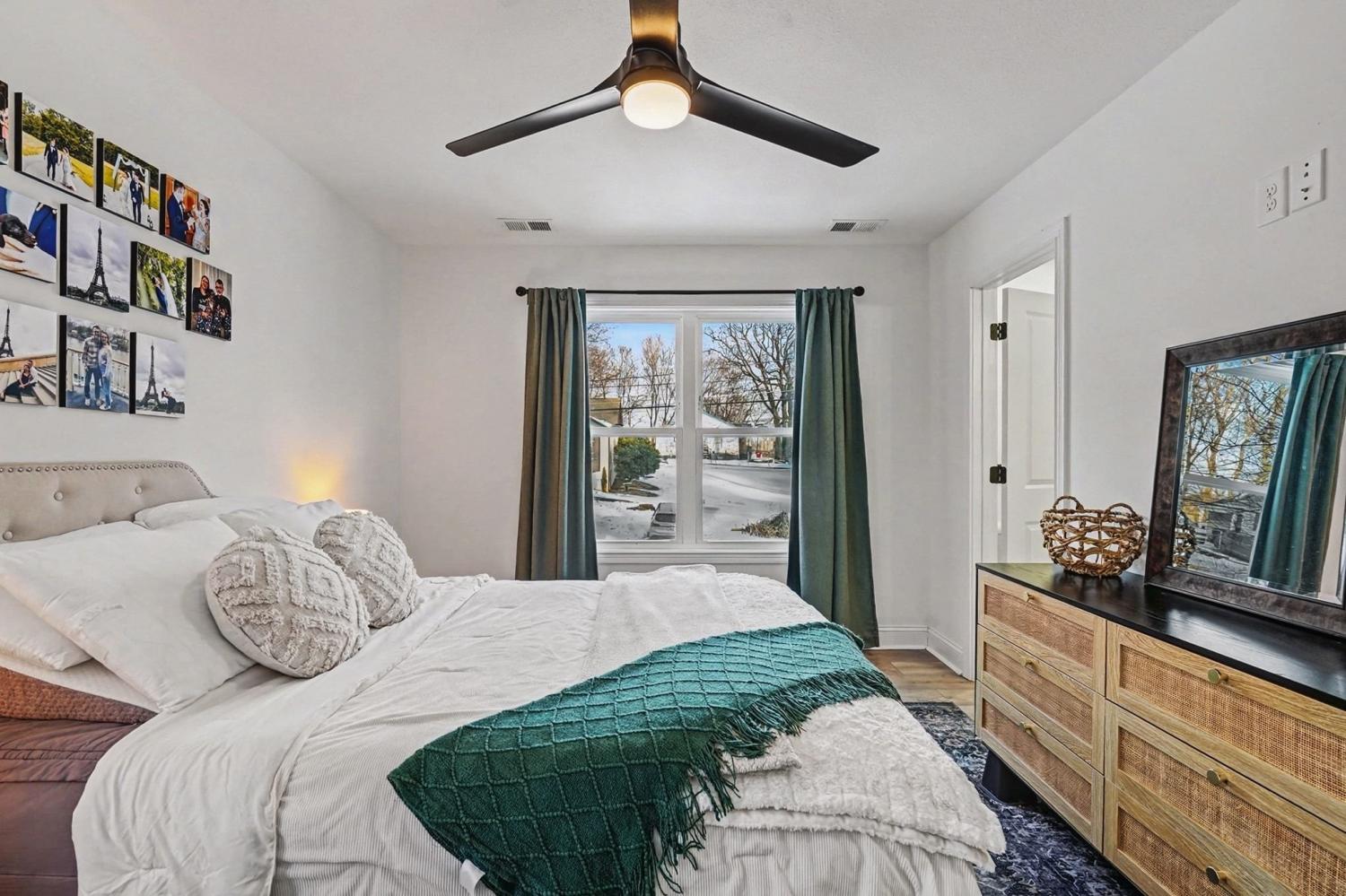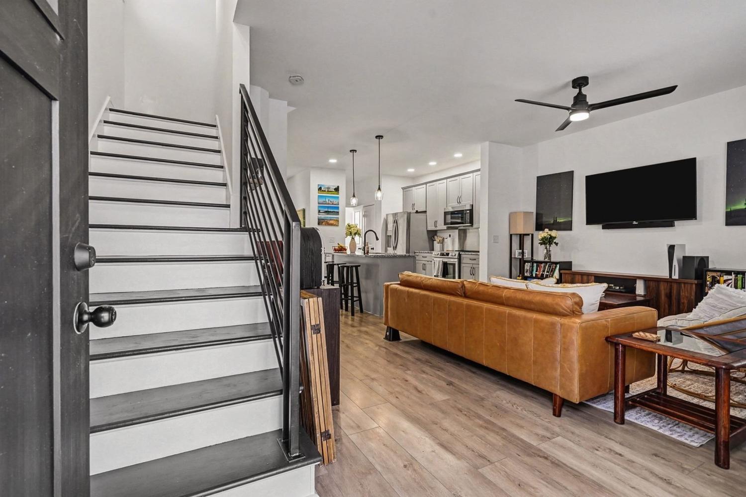 Like new - 2 year old contemporary construction in the heart of Downtown Clarksville, just steps from APSU, local coffee shops, shopping, and restaurants. The main level offers an open-concept living space with a half bath, laundry area, and an eat-in kitchen featuring a large island, stainless steel appliances, and granite countertops. Owner’s suite with a large walk-in closet and a beautiful private bathroom . Two additional bedrooms share a full bath. Tucked away on a quiet, wooded lot, this home blends modern design with a peaceful setting.