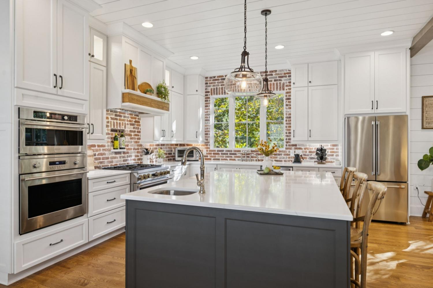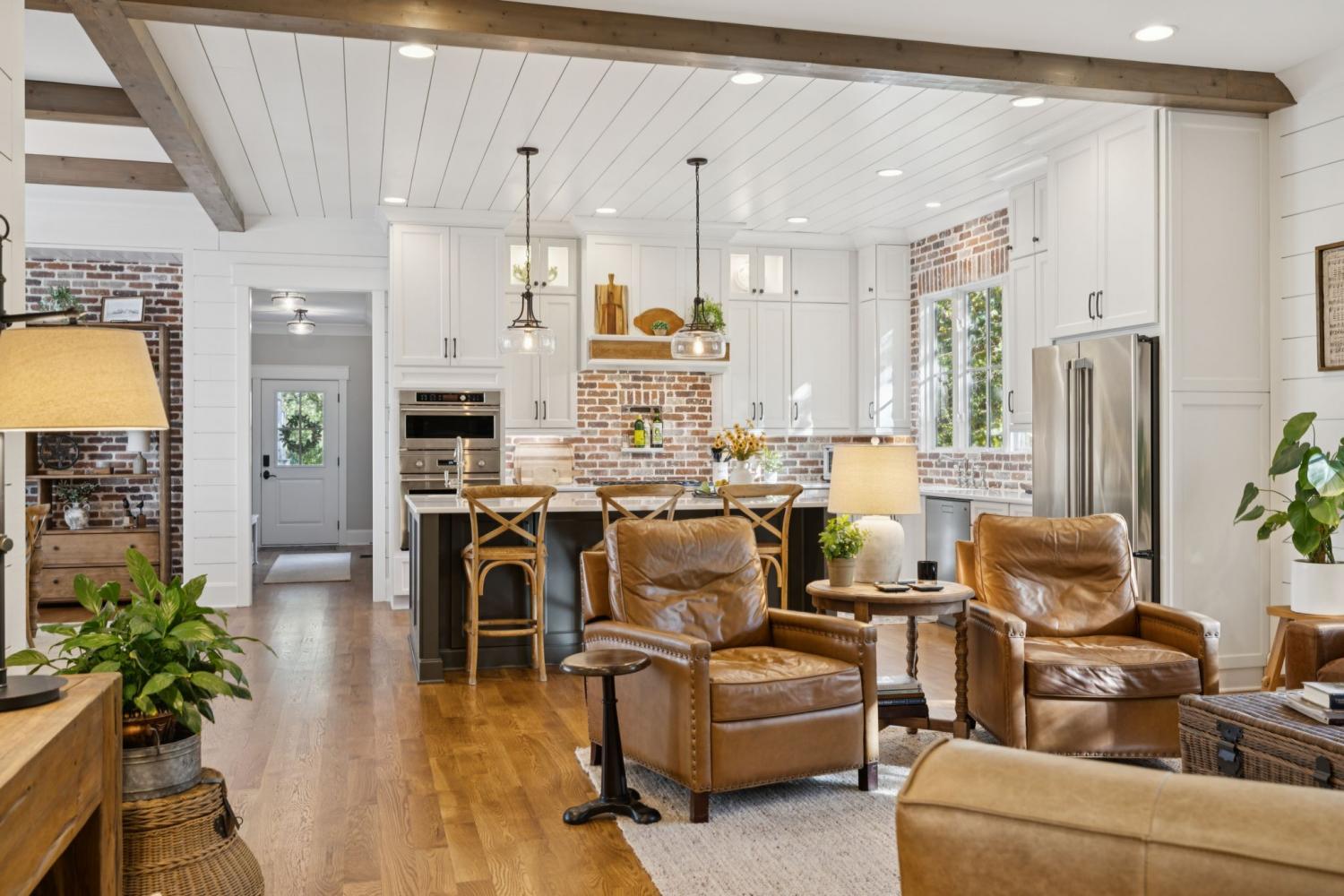 FEELS LIKE HOME ~ Renovated 4 beds, 4.5 baths downtown Franklin home ~ Double door entry ~ Office on 1st floor w/ gorgeous wood ceiling ~ Wood floors added throughout ~ Primary retreat on main level w/ massive closet ~ Heated floors in primary bathroom ~ Plantation Shutters ~ Wood paneling ~ Decorative beams ~ Built in bookcases ~ Oversized family room / kitchen / dining - perfect for gatherings ~ Refreshed Kitchen w/ Cabinets to ceiling, New backsplash, undercabinet lights, double ovens ~ New Plumbing fixtures & Lighting ~ Stone fireplace w/ gas logs ~ Amazing natural light ~ New Paint throughout ~ Beverage fridge in island ~ 2 sinks in kitchen ~ Pantry w/ wood shelving ~ New metal handrail on stairs ~ 2nd floor bonus room ~ Flex space ~ Laundry room features new backsplash, under cabinet lighting, soaking sink & window ~ Walk in Storage ~ Bathroom mirrors replaced ~ Remodeled secondary baths w/ new tile, new vanities & counters, glass shower doors added ~ Generous garage space ~ Gutted space over garage w/ full bath added & kitchenette / perfect for in-law, guests, work, nanny, college kids, etc ~ Surrounded by nature ~ Serene backyard ~ Screened Porch w/ mounted heater making this space useful year round ~ Fire Pit ~ Sidewalks to parks, downtown shopping, restaurants, coffee & more ~ Truly a hidden jewel ~ Situated on a quiet cul-de-sac in the heart of Franklin