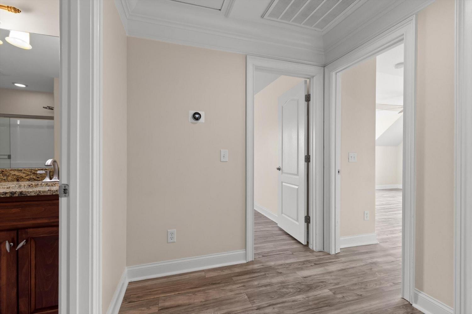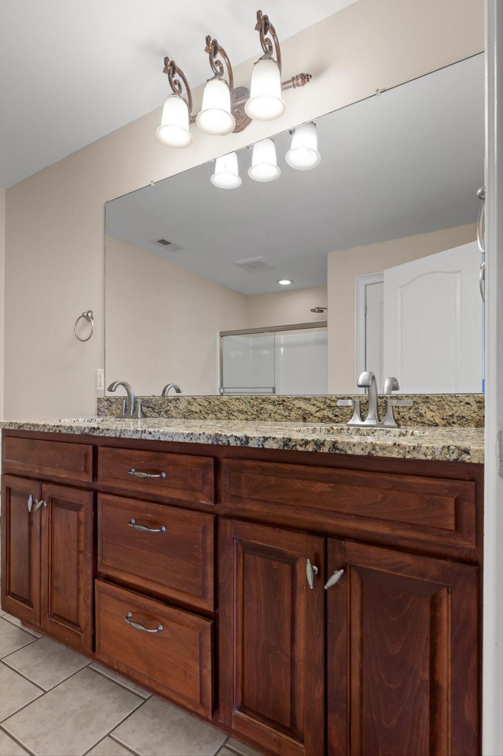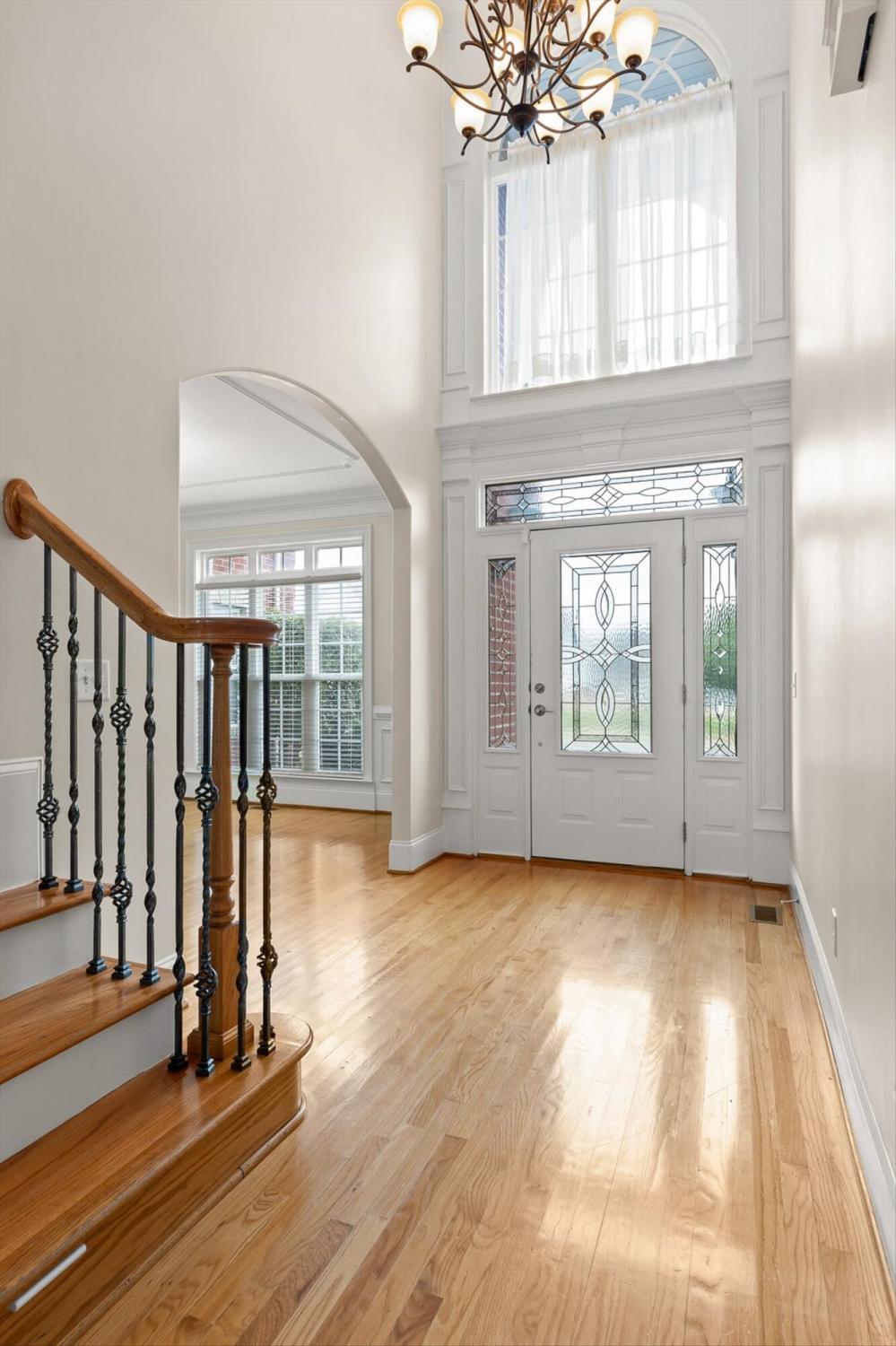 Welcome to 7935 Trout Lily Drive. This beautiful 2009 custom-built brick home with great curb appeal features 5 bedrooms, 3 full bathrooms, and a 2 car garage, in a spacious, well-designed floor plan. The main level offers a grand two-story foyer, custom archways, formal dining room, great room with an electric fireplace, a large kitchen with granite countertops, large island, stainless steel appliances, stained oak cabinetry, two pantries, and breakfast area. The primary suite is on the main level with two walk-in closets and a private en suite bath, along with a guest bedroom and full bath. Upstairs includes three additional bedrooms with ample storage and a full bathroom. Hardwood floors, crown molding, and quality finishes throughout. Enjoy the well manicured and fenced in backyard from the deck or enclosed sunroom, perfect for relaxing or entertaining.