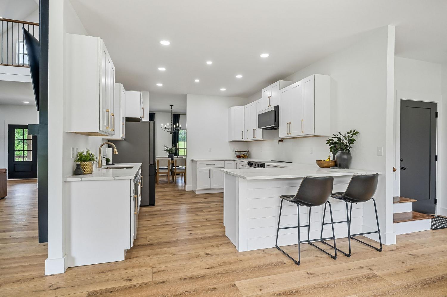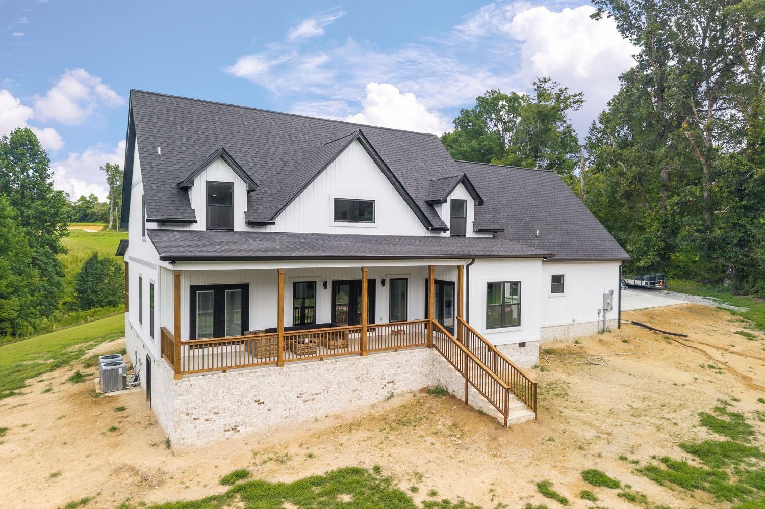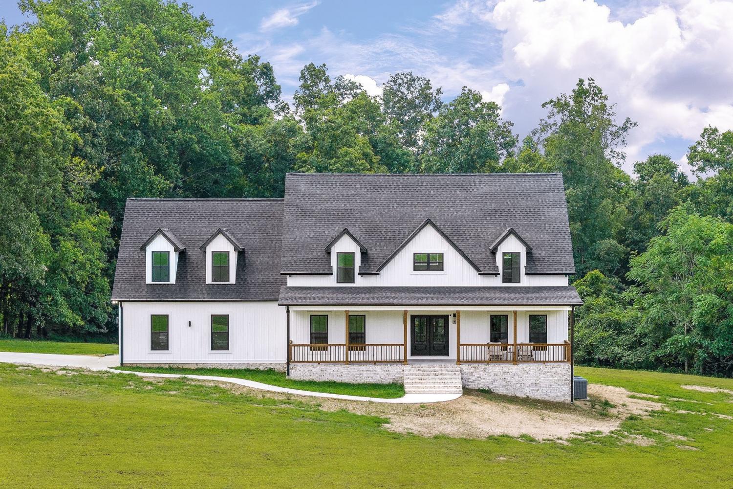 If you’ve been searching for space, privacy, and modern design, this 12.71-acre retreat truly stands apart. Set behind a long private drive with no close neighbors and light restrictions, this modern country home offers rare seclusion just 5 minutes from the interstate. Inside, 3,568 sqft of open living space features LVP flooring, oversized windows, and a striking electric fireplace framed by a bold black accent wall. The designer kitchen shines with quartz countertops, clean white cabinetry, sleek appliances, and elegant gold finishes. Each bedroom enjoys its own private bath, while red oak staircases lead to a spacious bonus room perfect for work, guests, or play. Covered front and back porches feature wood-accented ceilings, recessed lighting, and ceiling fans. A peaceful front pond, wooded acreage, and wide-open land invite you to relax, explore, and unwind. Come experience the freedom this special property offers by scheduling your showing today!