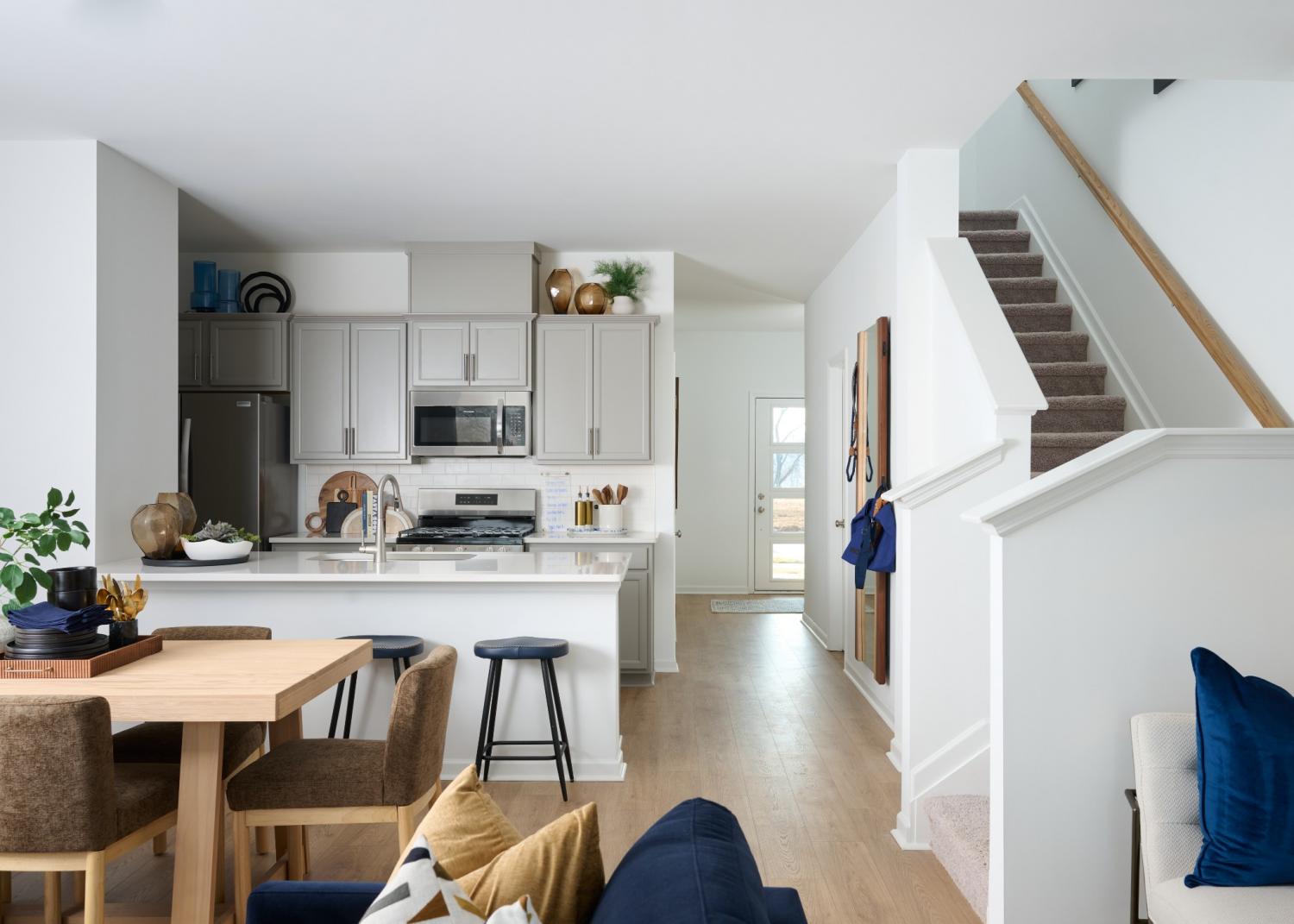 New luxury townhomes in Gallatin’s premier master-planned community, Nexus North by David Weekley Homes! The Bunting plan features our highest design package with white cabinetry, stunning 3cm quartz countertops throughout, and rare upgraded tile in all wet areas. Incredible sight lines from the front door to the back, plus oversized windows, flood the home with natural light. The kitchen sink overlooks the backyard through two massive windows. Upstairs offers three generously sized bedrooms that truly feel like a single-family home. Enjoy true low-maintenance living—lawn care, irrigation, exterior pest control, insurance, and internet are all included. Resort-style amenities feature a pool, trails, playground, outdoor fireplace, lifestyle director events, and walkable grocery coming soon. Just focus on living! Ask about our Incentives when you visit!
