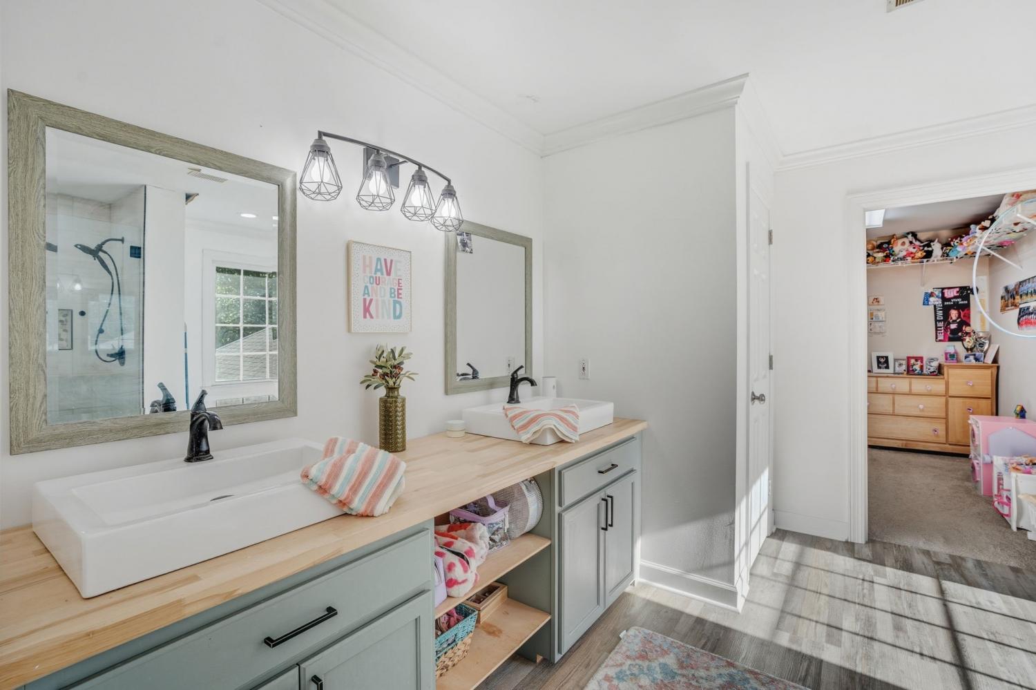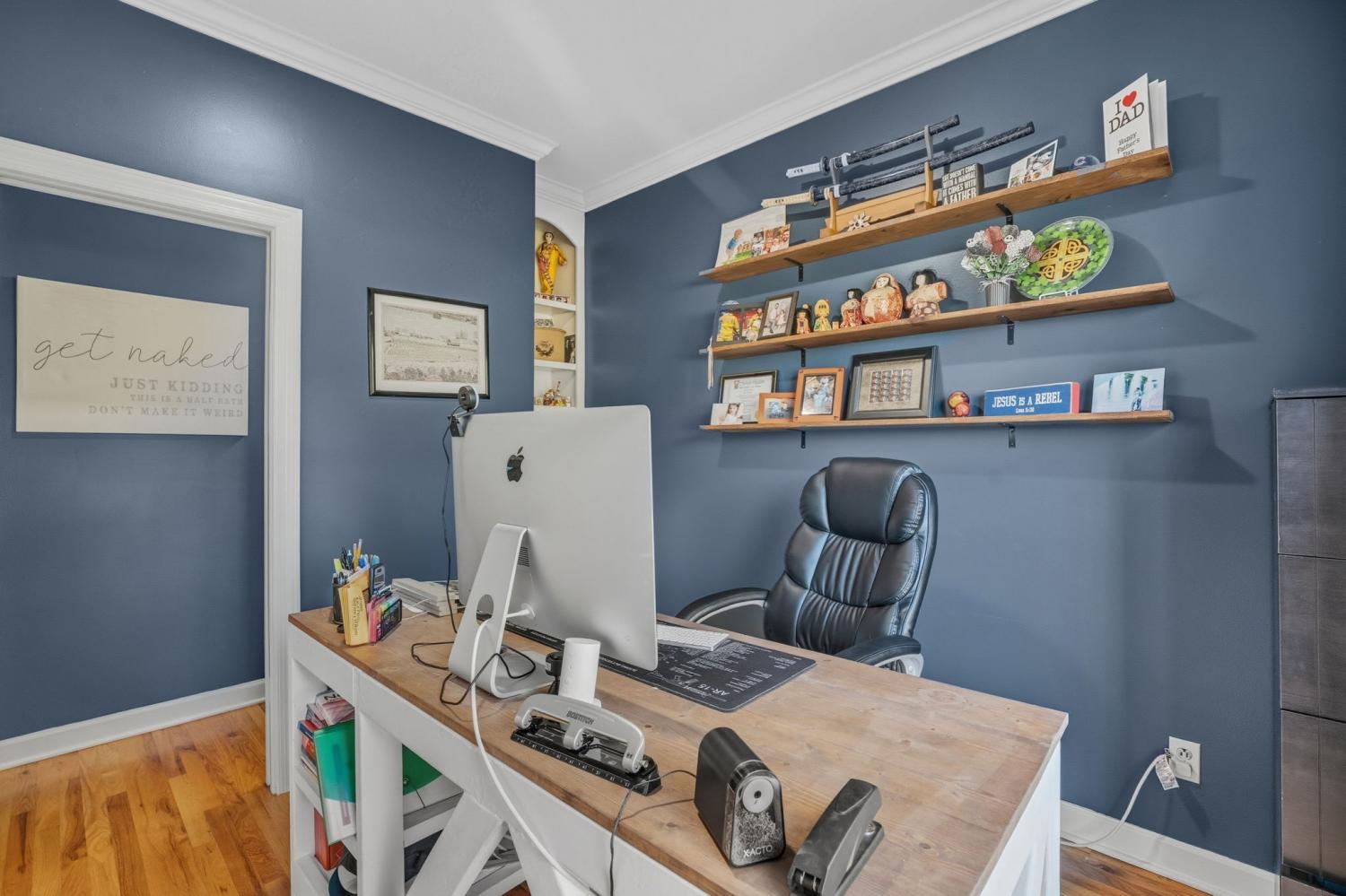 Welcome to this beautifully crafted residence in the highly desirable Franklin Heights subdivision. Offering over 3,500 sq. ft. of living space, this two-story home features 5 bedrooms, 4.5 bathrooms, a dedicated office and a 2 car garage. From the moment you step into the grand foyer, you’re greeted with timeless details, including a formal dining room to your left and a private office to your right. The main level flows seamlessly into an open-concept living and kitchen area, perfect for entertaining. The living room boasts a cozy gas fireplace, while the kitchen shines with granite countertops, stainless steel appliances, bar seating, and hardwood floors throughout. Plus a laundry room and pantry add convenience to everyday living. This home offers a rare layout with three primary suites or in-law quarters—perfect for multi-generational living. The main-level primary suite includes a spa-like bathroom with double vanities, a walk-in closet with custom shelving, and a Florida room overlooking the backyard. Upstairs, you’ll find two additional primary suites with private baths and walk-in closets, plus two more bedrooms for extra space. Set on a large lot with mature trees, the property offers both privacy and charm, complete with a backyard treehouse for added character. Craftsmanship, space, and thoughtful design combine to make this a must-see property. Schedule your private showing today and experience all that this Franklin Heights home has to offer!