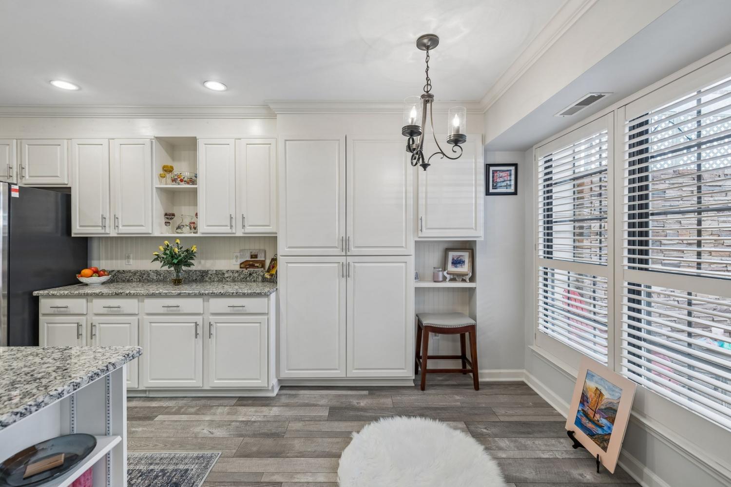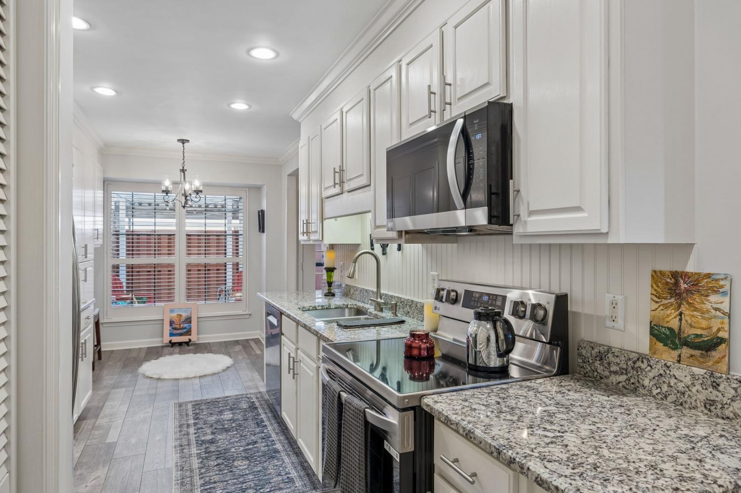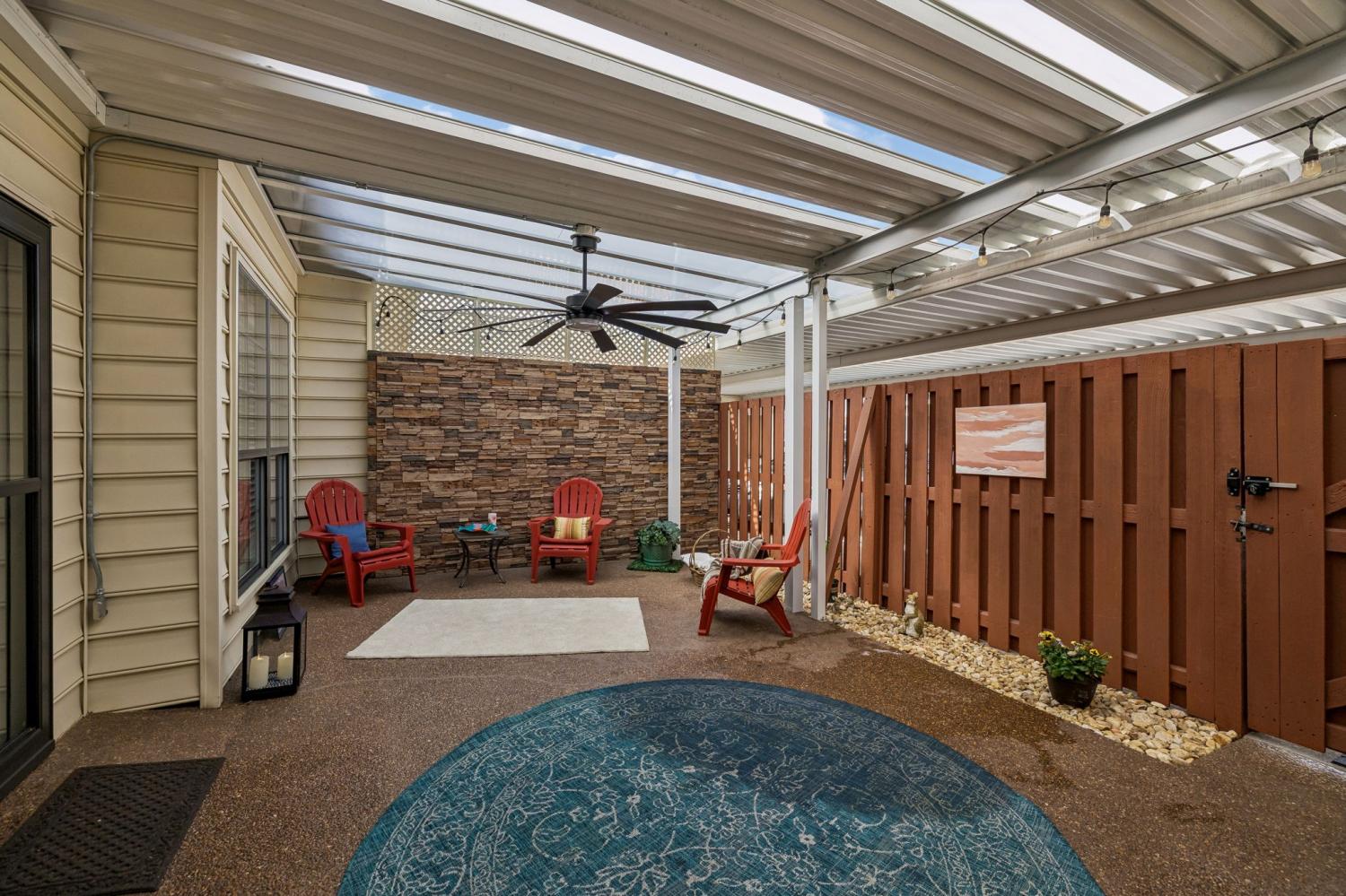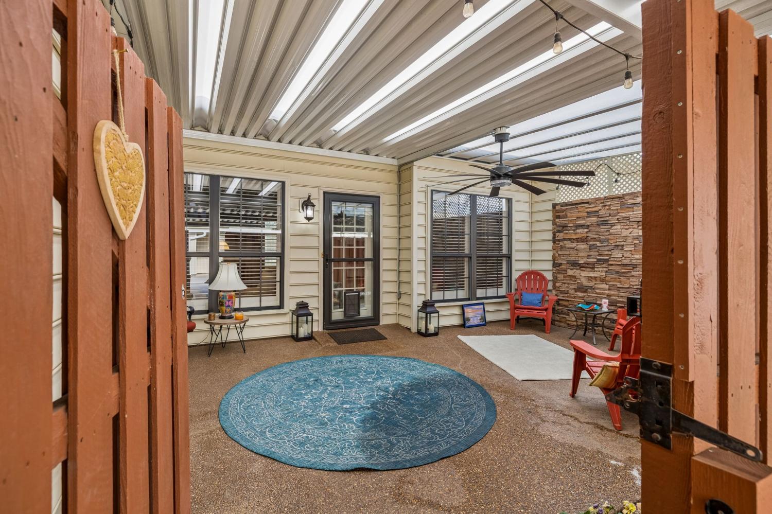 Updated and move in ready! Full covering over patio creating year round enjoyment. Washer/dryer included with t. v.'s over fireplace and front/office bedroom,as well as bonus room t. v. All appliances and new bosch ss quiet dishwasher. New roof, new front windows, new cabinets, and plantation shutters throughout. Wood flooring on main level living with lots of storage with shelves in outside utility room and walk in attic. New walk in shower in guest bath and renovated primary bath. Park views from the front with privacy in the back. 2 car carport and fenced private patio. This home has been truly loved in this awesome location, 55+ Morningside community. HVAC and furnace 3 yrs. new. Beautiful landscaped side yard with irrigation. Water heater 1 yr old as well as smoke detectors. Microwave 2 yrs. old