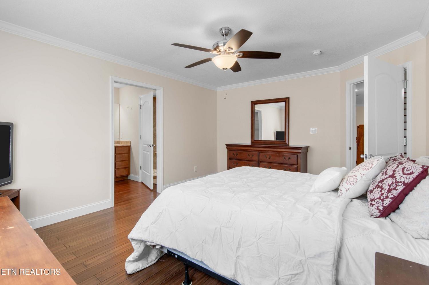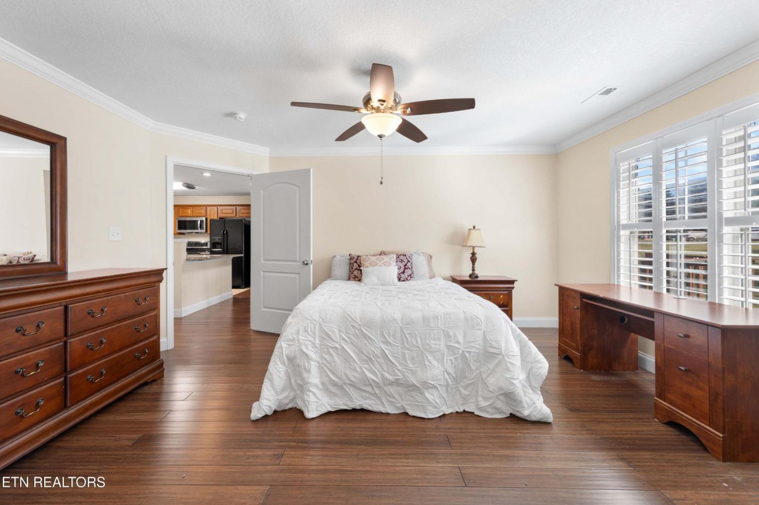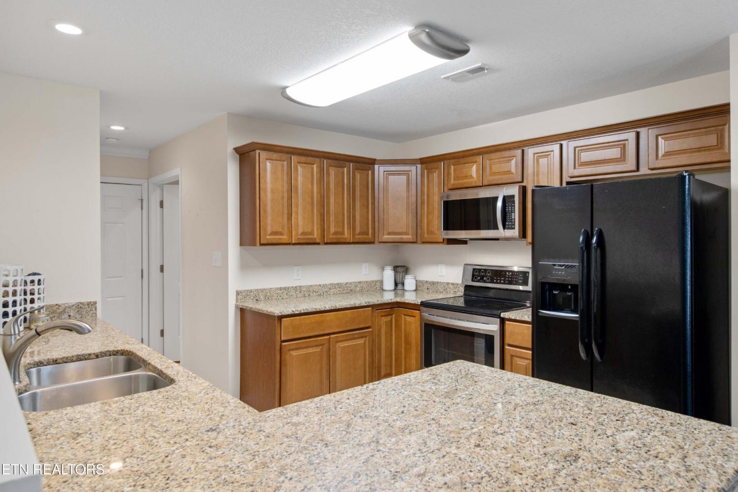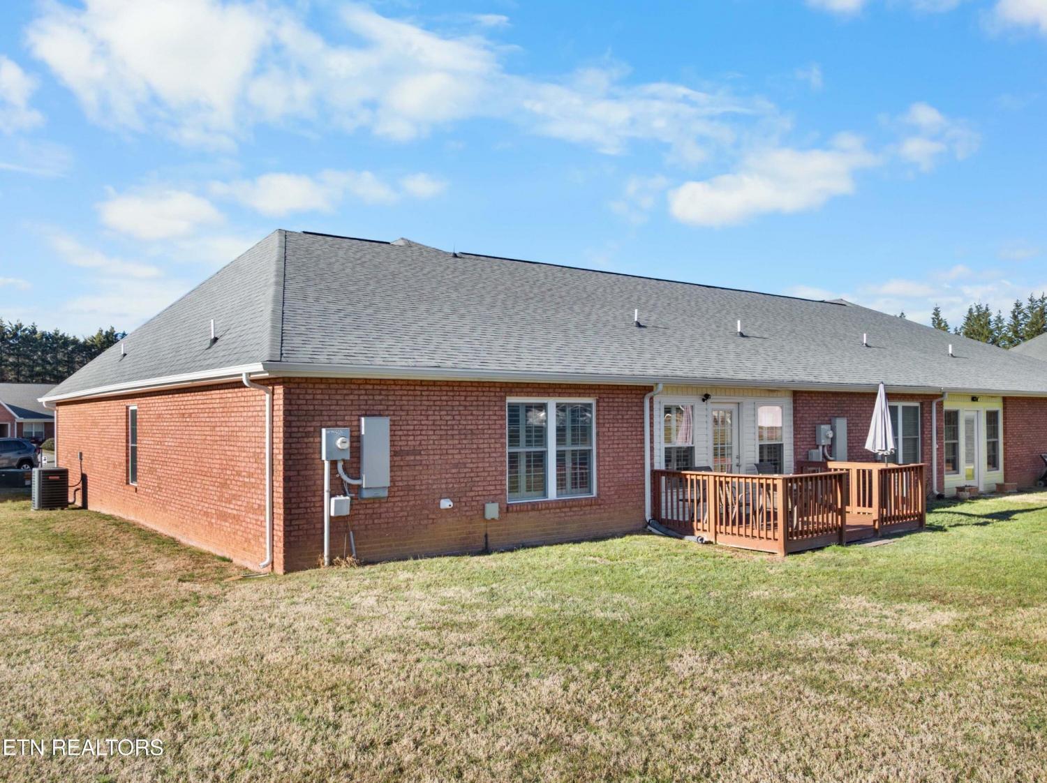 Impeccably maintained end-unit condominium in highly sought-after Dominion Downs with the primary suite on the main level, designed with comfort, convenience, and easy living in mind. This 3-bedroom, 3-bath home offers a truly functional layout for those wishing to live mostly on one level. The spacious main-floor primary suite features its own private bath with a gorgeous walk-in shower. A second bedroom and full bath are also located on the main level—ideal for guests, an in-home caregiver, or a quiet office or hobby room. Upstairs, a third bedroom and full bath create a private retreat for visiting family and friends. Newer plantation shutters throughout add both style and easy light control while providing privacy. The kitchen includes newer appliances, and the home also comes with a washer and dryer, making this truly move-in ready. As an end unit, you'll appreciate added privacy and natural light, while the condominium community setting means exterior maintenance is taken care of for you. The living areas are bright and welcoming, with a charming sunroom that opens to a large, recently added rear deck, perfect for enjoying morning coffee, fresh air, or quiet evenings outdoors without the upkeep of a large yard. While this lot is one of the largest in the neighborhood, it's beautifully lined with evergreens to help lend privacy to the back deck, and the lawn is cared for by the HOA. Located in Maryville's Dominion Downs community, this home offers an excellent opportunity for someone seeking a low-maintenance lifestyle without sacrificing comfort, space, privacy, or class.