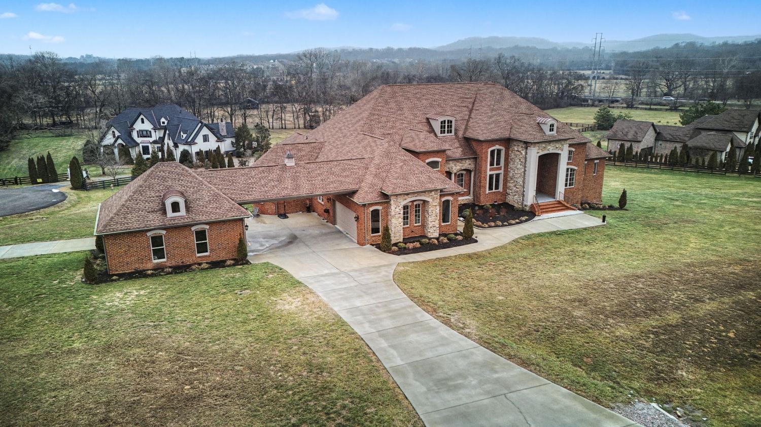Set on over two acres in the rolling countryside of Arrington, this custom luxury estate blends grand architecture with warm, livable elegance. Designed with a combination of the European Baroque style with a blend of American traditional, creating a unique atmosphere of simple elegance with grace. The moment you enter, soaring ceilings, dramatic designer lighting, beautiful hardwood flooring, and handcrafted millwork create an unforgettable first impression, while a stunning round, ballroom-inspired living room anchors the home with curated finishes. At the heart of the home, the chef’s kitchen is a showpiece built for effortless hosting, featuring double islands, dual sinks, a wet bar, walk-in serving and storage pantries and a full suite of professional-grade Viking appliances. Flowing seamlessly into a coffered-ceiling family room with stone fireplace creates the perfect gathering space. The main-level primary wing is a private retreat designed for total relaxation complete with spa-inspired bath showcasing a walk-through shower, dual vanities, private twin toilets, expansive walk-in closets, and a dedicated laundry. A light-filled sitting room with fireplace and built-in office is the perfect at home workspace. Every guest bedroom is en-suite, offering comfort for family and visitors alike. Outside, an expansive covered patio with fireplace and multiple TV stations extends the living space into a true outdoor oasis, ideal for year-round entertaining and quiet evenings overlooking the peaceful acreage. Just a short walk to Arrington Elementary and minutes from Arrington Vineyards, Franklin, and Nashville, this home offers the rare combination of luxury, space, and convenience.