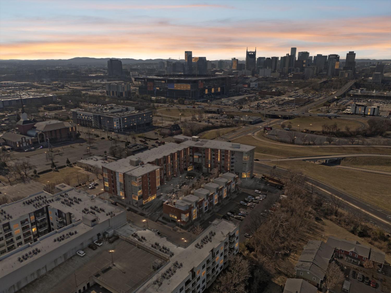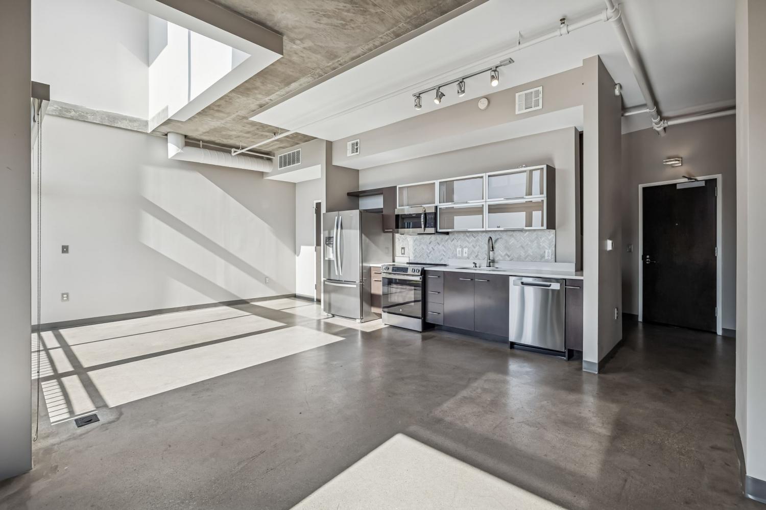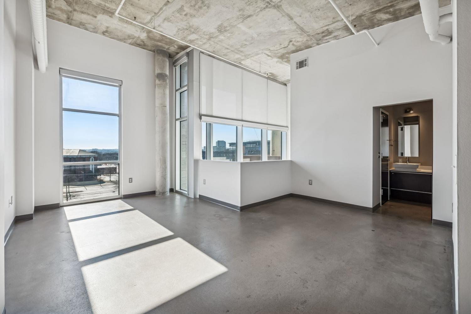 Absolutely gorgeous condo nestled in the heart of urban Nashville with extraordinary downtown views. This sophisticated unit is undoubtedly in one of the city's most desirable locations that includes easy access to the exciting new East Bank development featuring the new Titan's stadium and Oracle's Nashville campus as well as being just steps away from the well established community of East Nashville and it's local restaurants, cafes and shops. This highly desirable condo boasts beautiful floor to ceiling windows flooding the space with light, concrete floors, and an updated kitchen that showcases a clean modern design. The second floor is a thoughtful primary suite with a spa-like bathroom. An exceptionally chic building, Fifth and Main has a state of the art fitness studio, an incredible roof-top deck with a BBQ station, dog park and an expansive courtyard. In addition, there is secure entry, a designated storage room and assigned underground parking. A must see! This one is truly a gem.