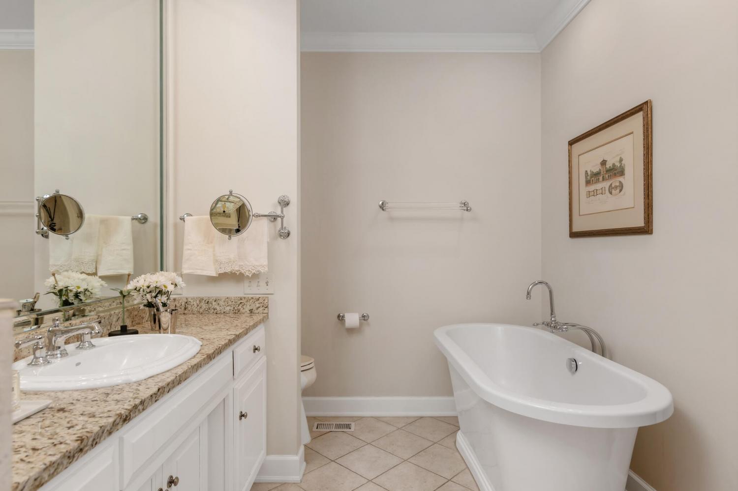 Tucked away in one of Belle Meade’s best-kept secret neighborhoods, this charming and intimate enclave is a local favorite where opportunities rarely arise. Thoughtfully updated and meticulously maintained, this residence is a true pleasure to show. The home offers three ensuite bedrooms plus a versatile upstairs bonus room, currently used as a fourth bedroom. The primary suite is conveniently located on the main level, accompanied by gracious living and entertaining spaces ideal for both everyday living and special occasions. Elegant formal living and dining rooms showcase beautiful millwork, while the inviting eat-in kitchen—anchored by a fireplace—adds warmth, character, and charm. A spacious 25’ x 24’ sunroom, wrapped in windows and French doors on three sides, is flooded with natural light and provides a seamless connection to the outdoors. Completing the property is a detached two-car garage that opens to a stunning private courtyard—an ideal setting for relaxing, entertaining, or quiet enjoyment.