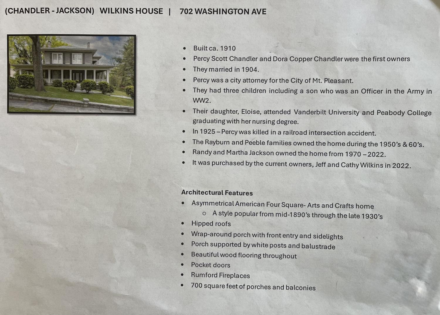 One of Mount Pleasant’s most admired historic homes will soon be available for its next owner. The Chandler‑Jackson House is an iconic Washington Avenue landmark. From the moment you arrive, the home embraces you with its distinct charm, beginning with the expansive wrap‑around front porch and covered balconies. The gorgeous original lead‑glass windows with decorative upper sashes add character while filling the interior with so much natural light. The interior vintage shutters add warmth and coziness, complementing the rich architectural history throughout. The receiving room is especially inviting, featuring high ceilings, original hardwood floors, and a Rumsford (originally coal‑burning) fireplace and two cute window seats on each side of the fireplace, perfect for reading or simply enjoying the ambiance. To the left and through the pocket doors lies the formal living room once used as the gathering space where guests would enjoy afternoon tea and conversation. The kitchen blends charm with modern convenience, offering hardwood flooring, abundant cabinetry, a gas cooktop, butcher‑block countertops, and new stainless steel KitchenAid double ovens and matching refrigerator. Upstairs, all three of the bedrooms and the laundry room will be found making it convenient for doing laundry. The spacious primary suite includes a cozy fireplace and a private balcony, while one of the additional bedrooms features a bump‑out space ideal for an office, nursery, or hideaway. Situated on more than half an acre lot with beautiful mature trees,walkable to town, the property is just minutes from downtown shopping, local festivals, and the beloved “music on the porch” for those fun community get togethers. The fenced backyard provides a safe and spacious area for children or pets to enjoy. Sellers are offering a $20,000 exterior paint allowance and a two‑year home warranty with an acceptable offer. Sellers have not used the fireplaces and will require inspections before use.
