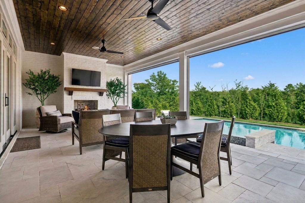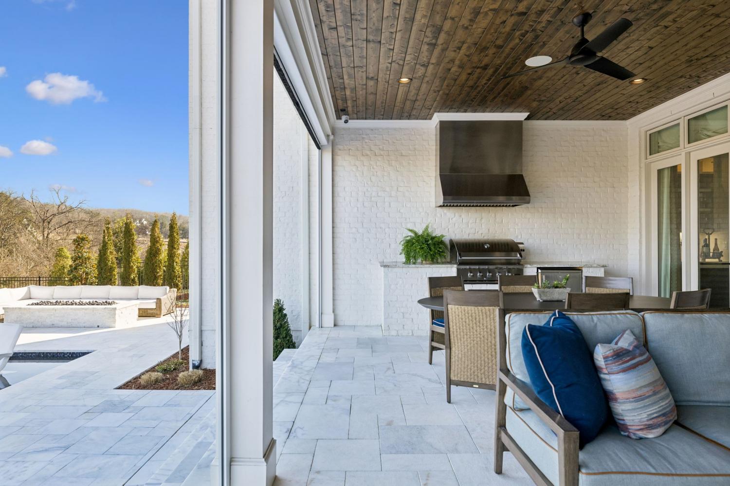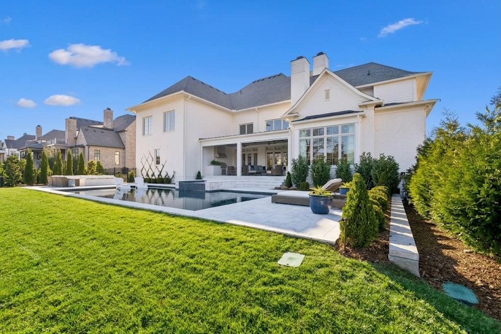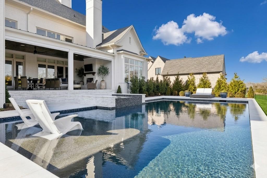 Welcome to the pinnacle of Brentwood living in RoseBrooke, where every day feels like a stay at a world-class resort. This architectural masterpiece offers a lifestyle defined by seamless luxury and sophisticated comfort. Your private backyard oasis is anchored by a stunning 40' x 20' saltwater gunite pool, featuring a waterfall spa and tanning ledge. Whether you’re hosting summer soirées on the marble pavers or enjoying a quiet evening by the expansive fire pit, the atmosphere is one of unmatched serenity. The covered dining area complete with an outdoor fireplace, motorized screens, and a fully equipped outdoor kitchen ensures the Brentwood lifestyle is enjoyed year-round. Inside, the home unfolds with a dramatic two-story foyer leading to a grand great room with soaring 19-foot coffered ceilings. The heart of the home is a chef’s dream: a gourmet kitchen outfitted with Wolf and Sub-Zero appliances, a Miele coffee system, and a hidden walk-in pantry. Morning espresso and evening entertaining are elevated by the quartzite slab backsplash and custom designer lighting throughout. The primary suite is a sanctuary, featuring vaulted beam ceilings and a spa-inspired bath with heated floors, an oversized walk-in shower, and a soaking tub. With a luxurious, private main-level guest suite and a richly appointed study, the layout balances productivity with hospitality. Upstairs, the versatility continues with a large bonus room, wet bar, and space for a gym or hobby room. Experience effortless living through an integrated Prodigy smart home technology system, controlling lighting, automated shades, and whole-home audio. High-efficiency HVAC and humidity control ensure your environment is as perfect as the aesthetics. Steps from neighborhood pickleball and tennis courts, this is more than a residence, it’s the lifestyle you’ve been waiting for! Showings require Proof of Funds or lender preapproval.