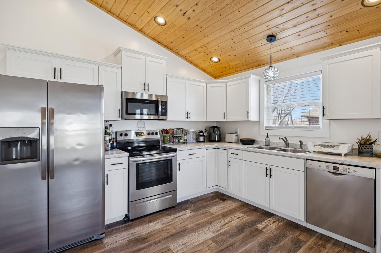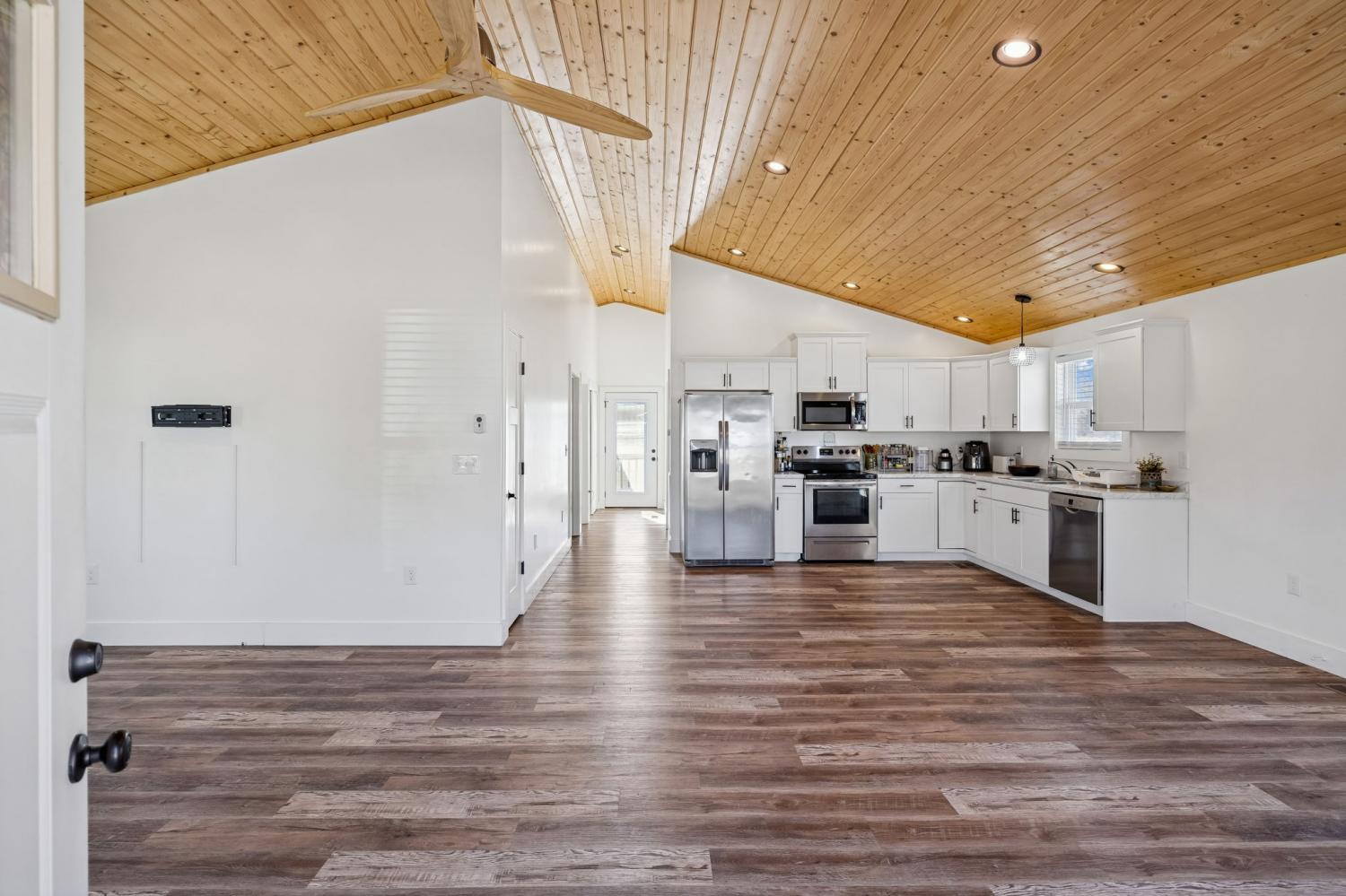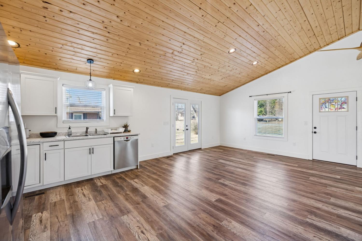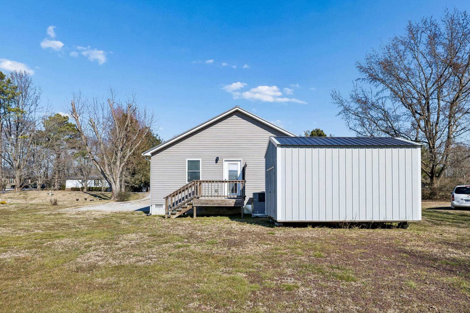 This nearly new, well-maintained home offers comfort, character, and convenience. Vaulted pinewood ceilings enhance the open layout and fill the space with natural light. The home features a spacious bathroom, generous closet space, and a thoughtfully designed kitchen equipped with stainless steel appliances. A 10x16 storage shed provides additional space for storage or hobbies. Enjoy scenic views from the private yard and the charm of small-town living, conveniently located just minutes from Tims Ford Lake. Move-in ready and ideal for those seeking a low-maintenance home close to outdoor recreation.