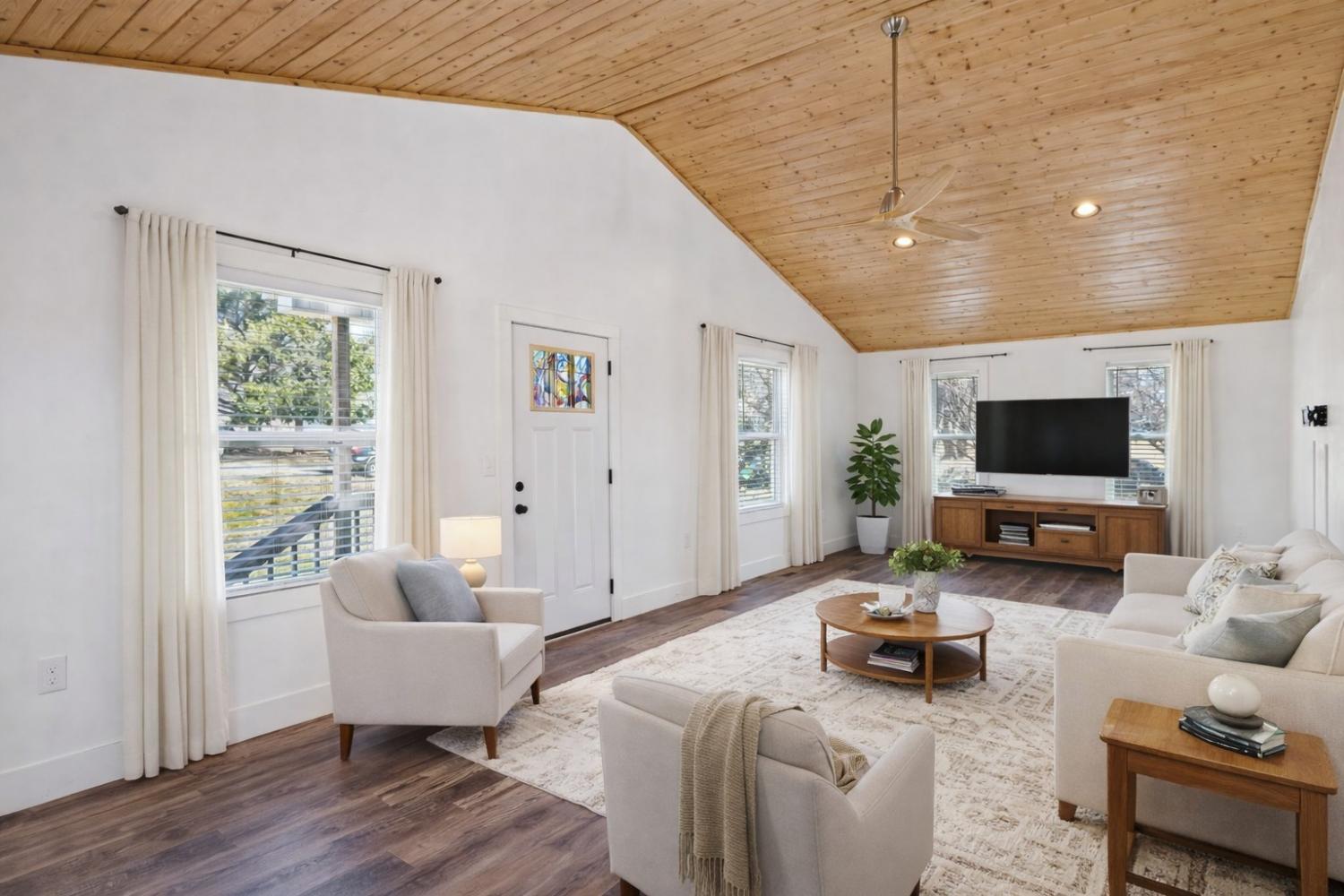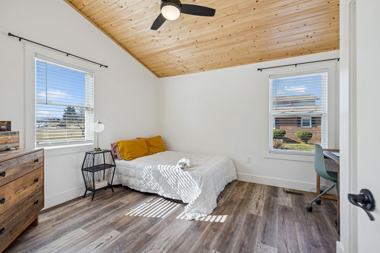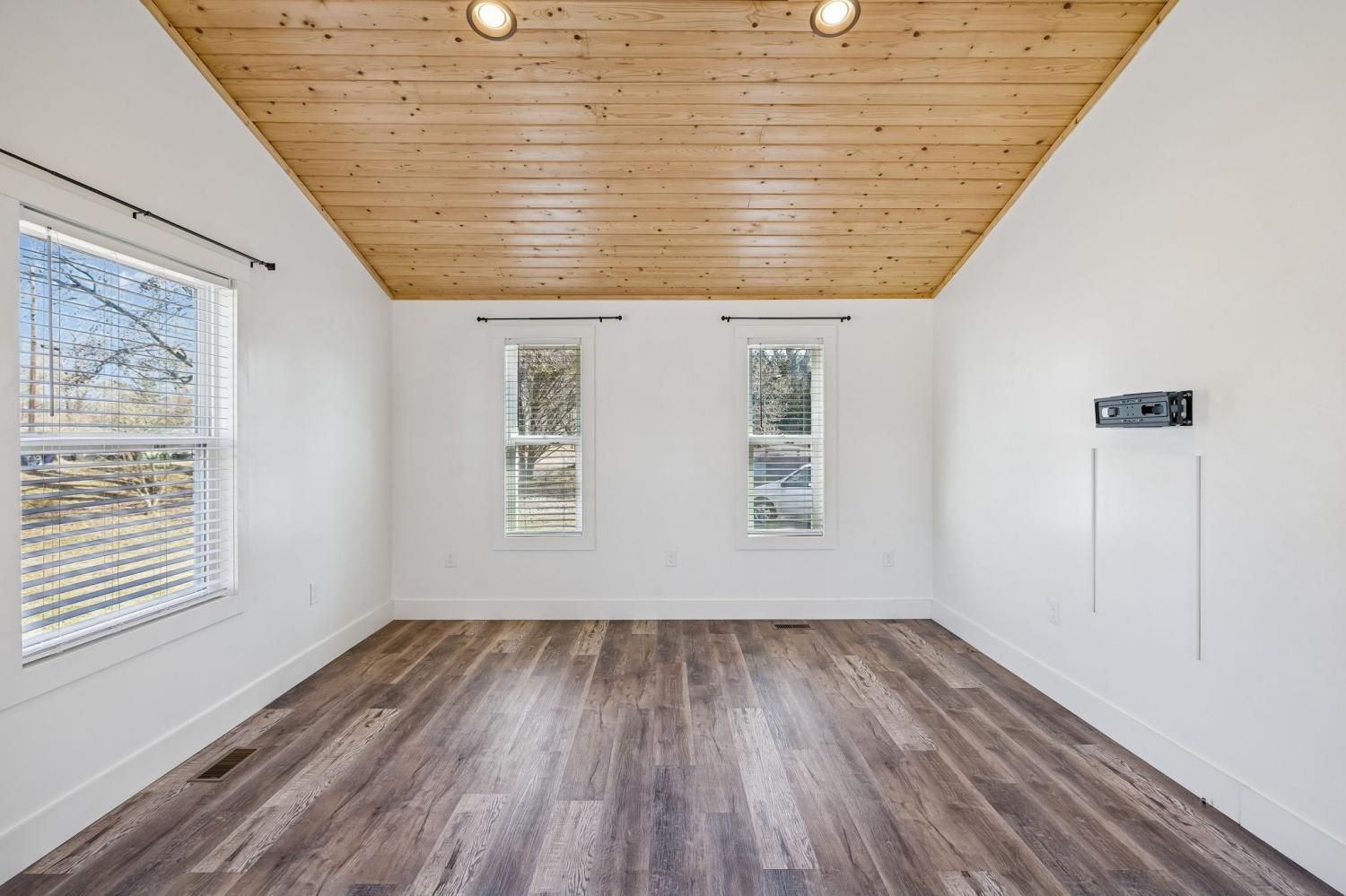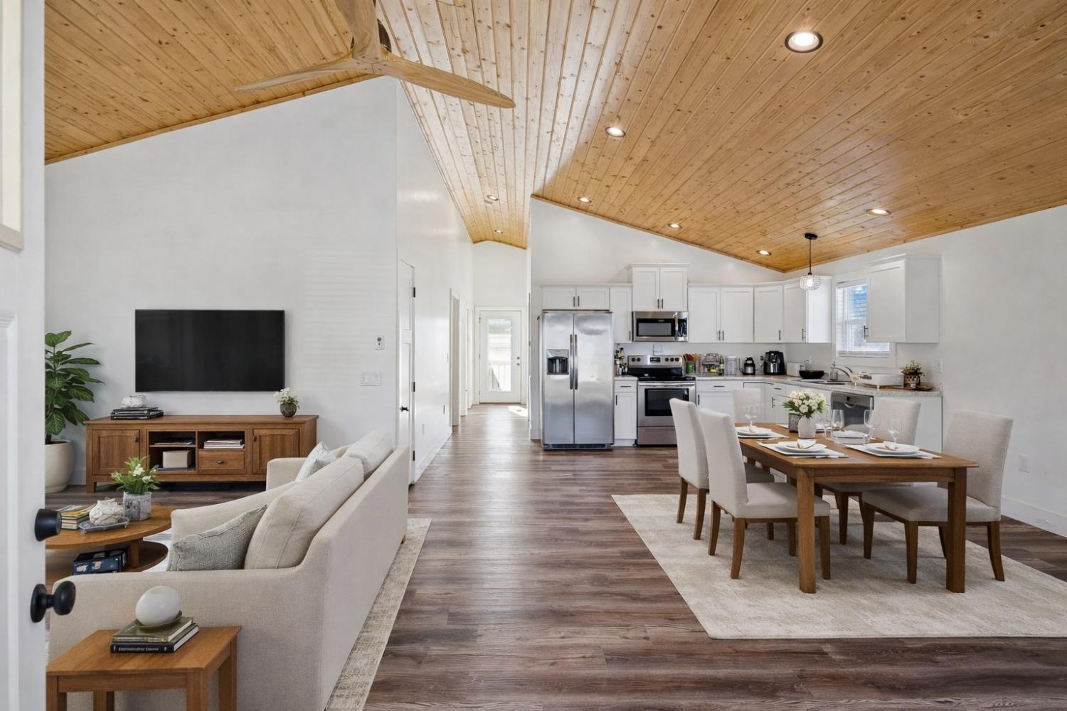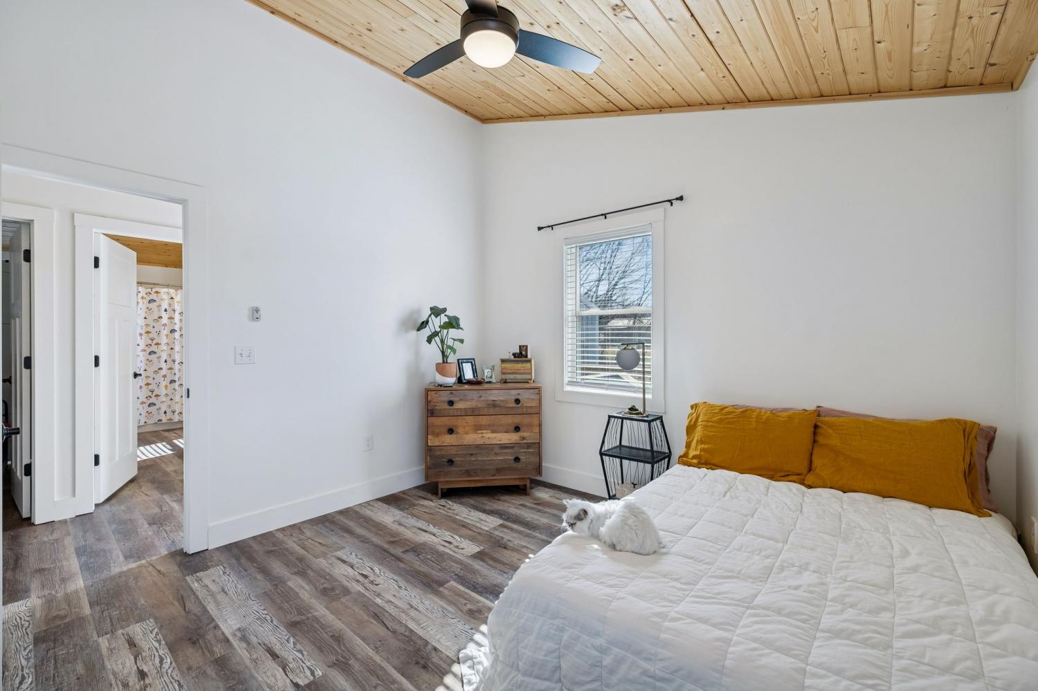 This nearly new, well-maintained home offers comfort, character, and convenience. Vaulted pinewood ceilings enhance the open layout and fill the space with natural light. The home features a spacious bathroom, generous closet space, and a thoughtfully designed kitchen equipped with stainless steel appliances. A 10x16 storage shed provides additional space for storage or hobbies. Enjoy scenic views from the private yard and the charm of small-town living, conveniently located just minutes from Tims Ford Lake. Move-in ready and ideal for those seeking a low-maintenance home close to outdoor recreation.