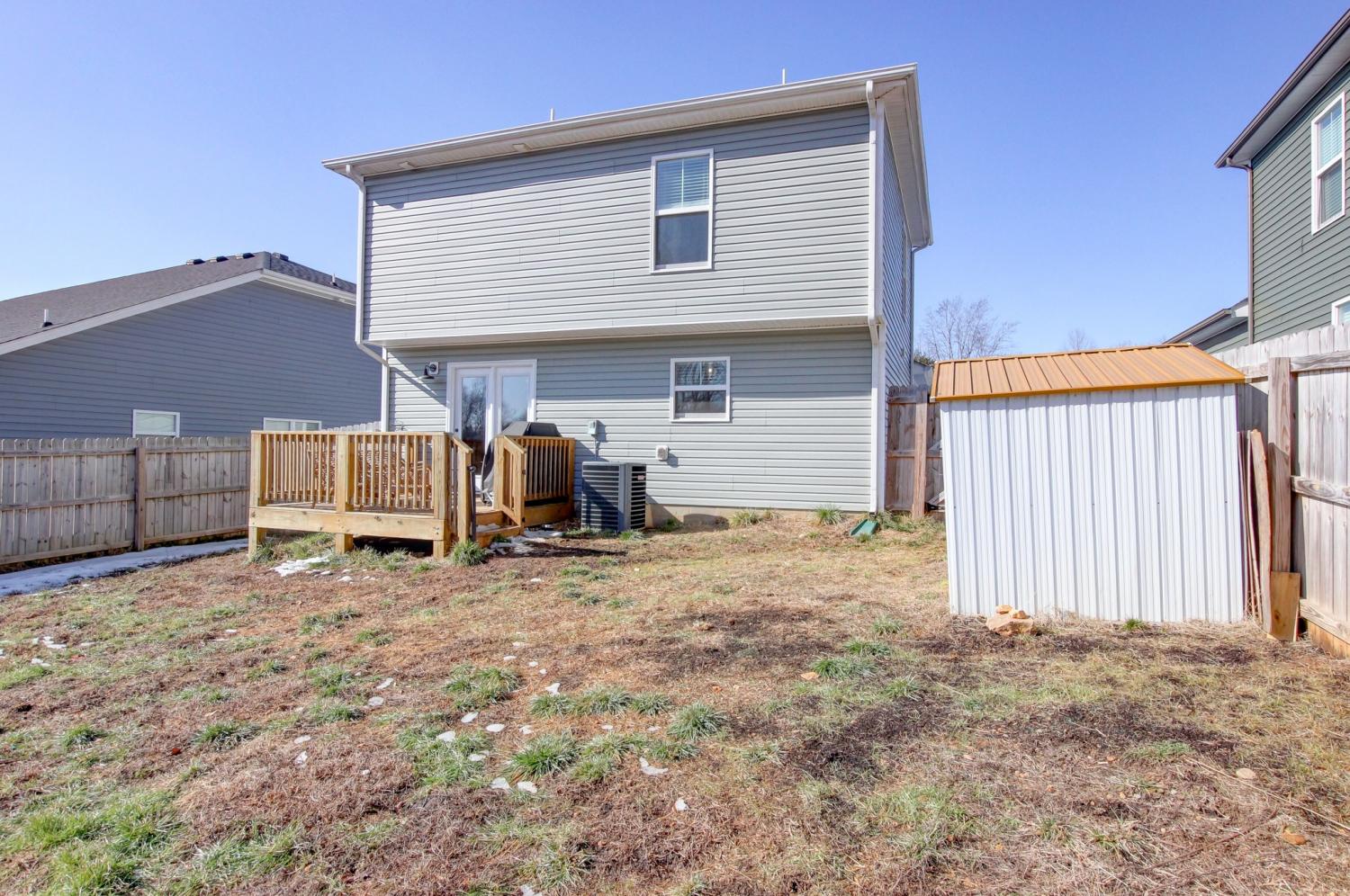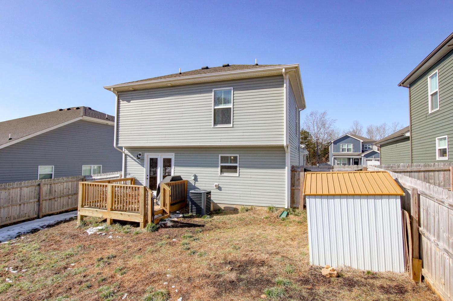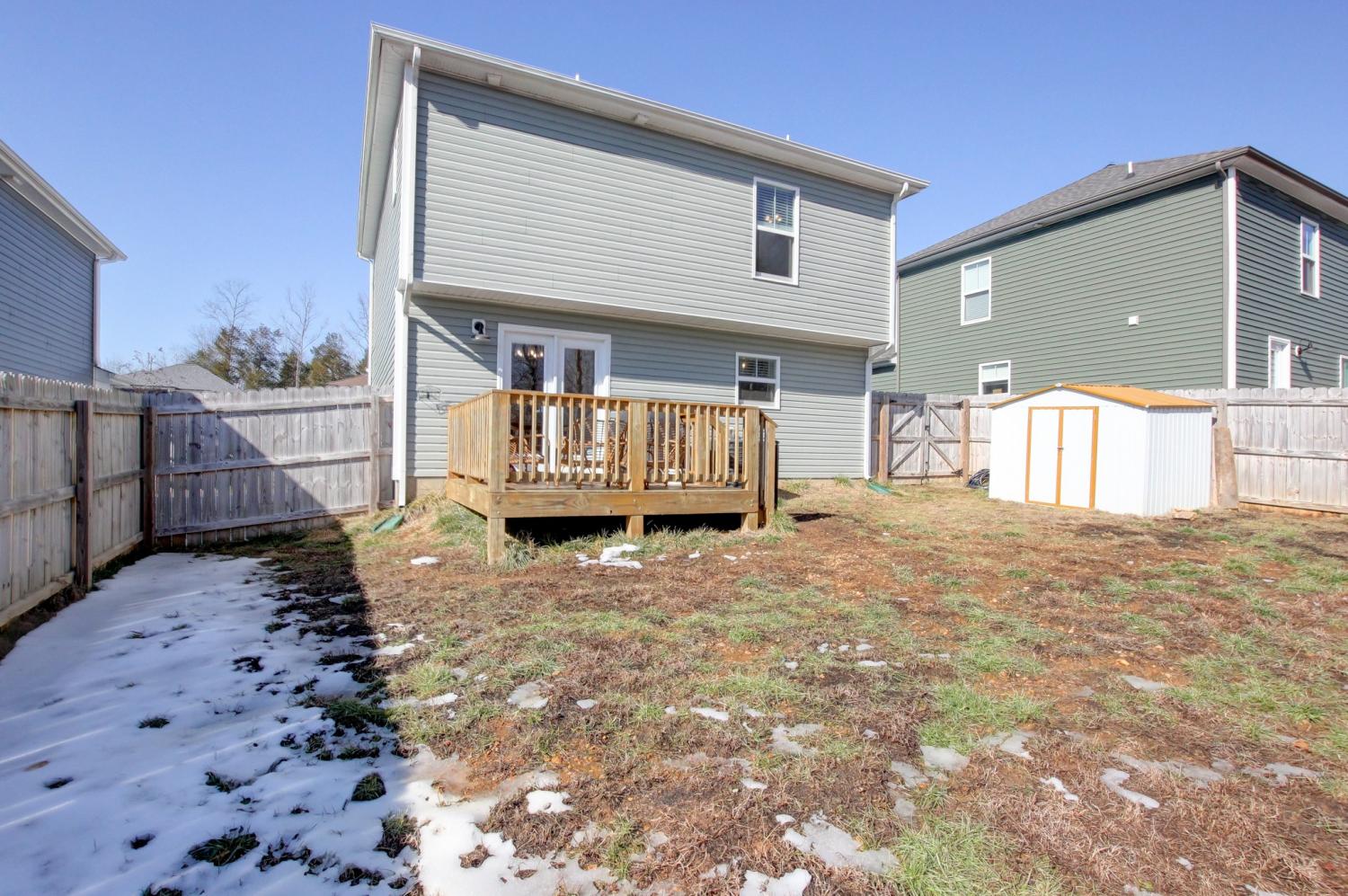 Welcome to this exclusive boutique community, ideally located near Riverside and Downtown Clarksville. This practically new home, just three years old, offers modern finishes throughout, including bright polar white cabinetry, granite countertops, and stainless steel appliances. Thoughtfully designed with oil-rubbed bronze lighting and fixtures, the home blends style and functionality effortlessly. Step outside to the back deck overlooking a peaceful tree line, perfect for relaxing or entertaining. Additional features include underground utilities, charming street lamps, and a fully fenced backyard complete with a storage shed.
