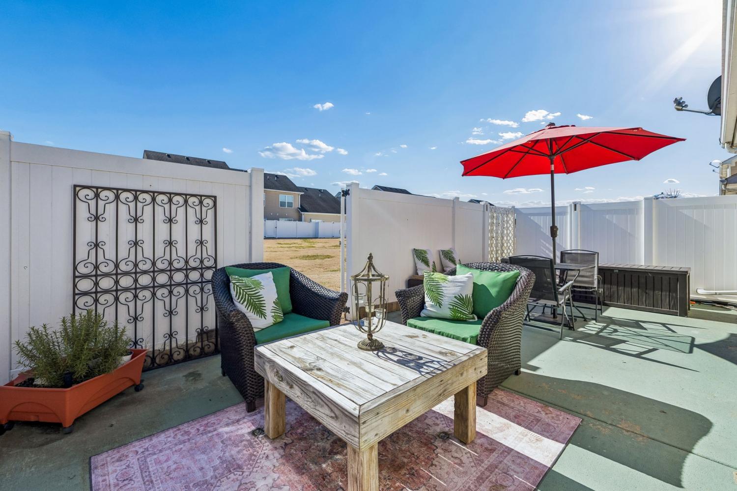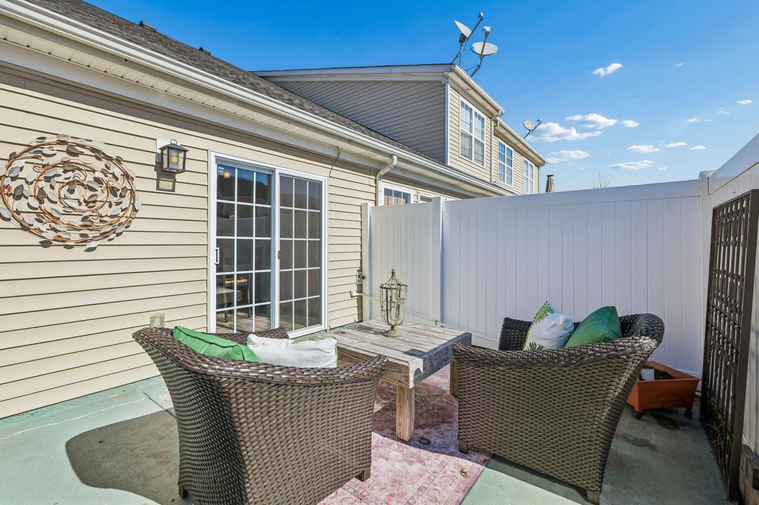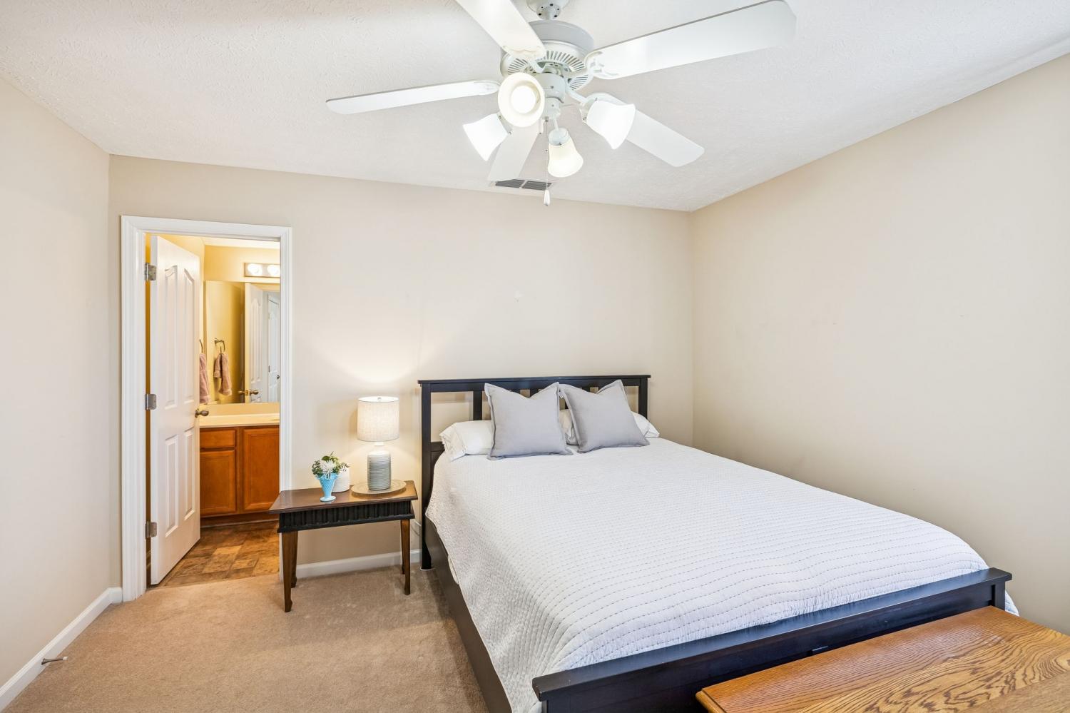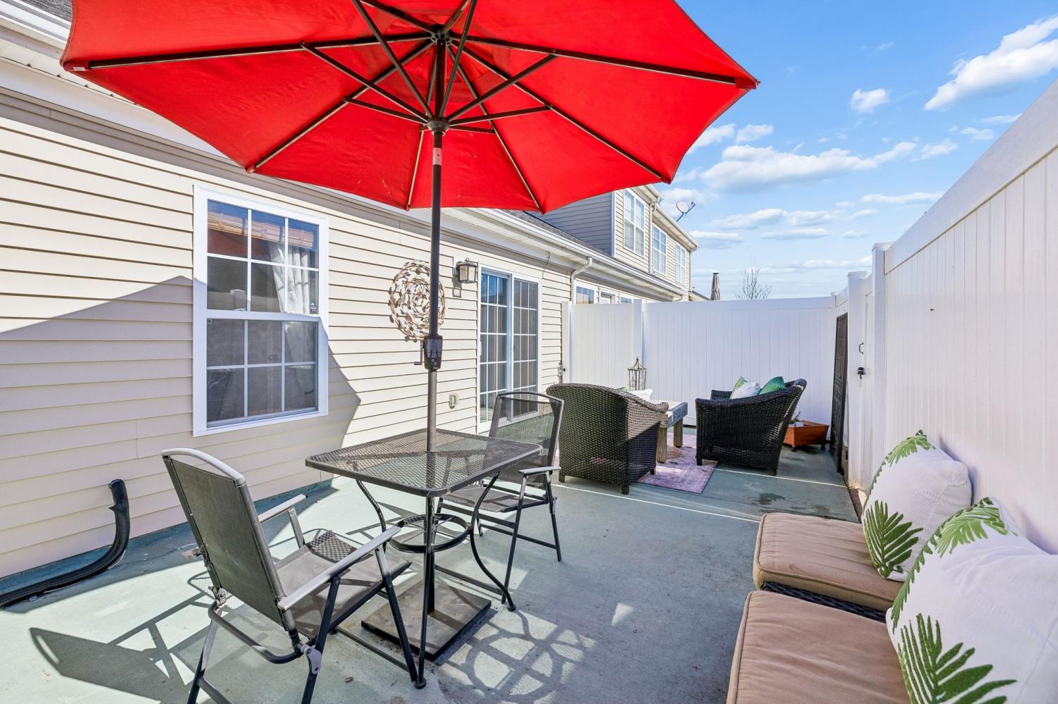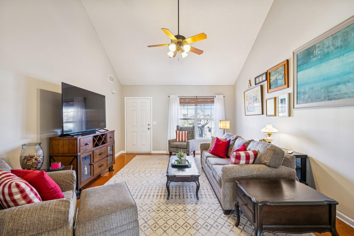 Welcome home to this move-in-ready end-unit condo that perfectly blends comfort, style, and low-maintenance living! This thoughtfully designed home features two spacious bedroom suites, each with its own private bath—one conveniently located on the main level and one upstairs. The downstairs suite is a true retreat with two walk-in closets. At the heart of the home, a dramatic two-story great room with hardwood floors and an open loft above creates an airy space that feels both modern and welcoming. The living area flows seamlessly into the kitchen and dining spaces, making everyday living and entertaining easy. The kitchen offers loads of cabinetry, a tile backsplash and a pantry, all set against a neutral color palette that’s perfect for contemporary decor and your own personal touches. Step outside to a large, fenced patio that opens directly to peaceful green space—ideal for relaxing, pets, or casual outdoor gatherings. The community has a dog park and two playgrounds, and the location can’t be beat—walking distance to school with easy access to the interstate, shopping, and dining. With no-maintenance living, a smart layout, and a fresh, neutral interior ready for your style, this condo checks all the boxes for comfort, convenience, and easy ownership!