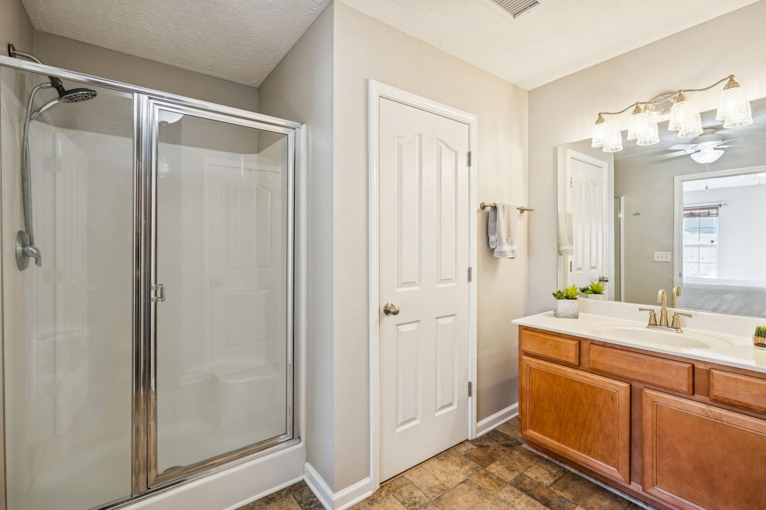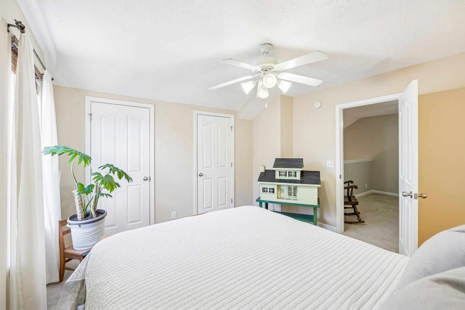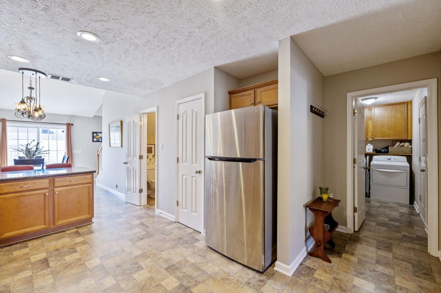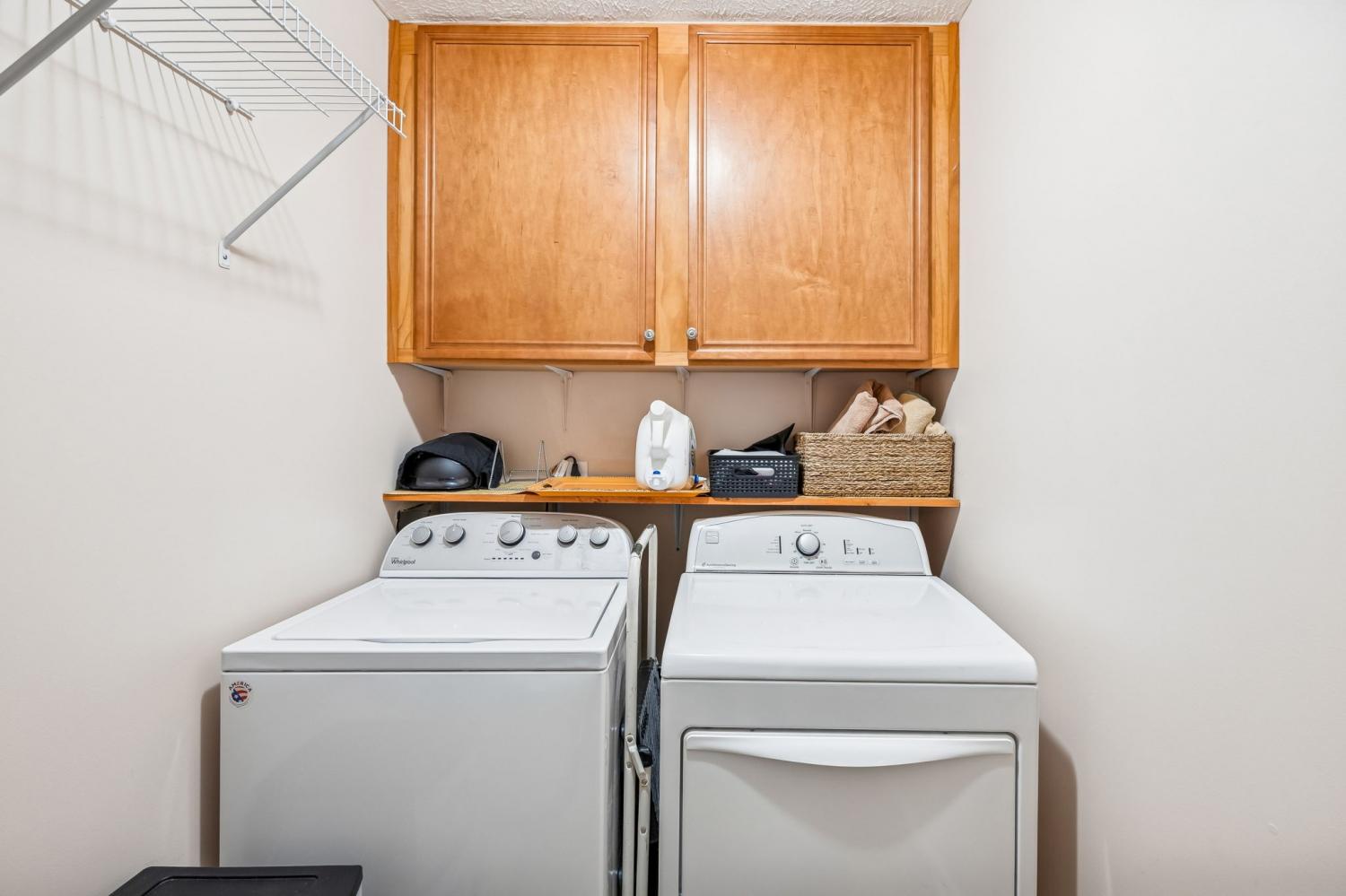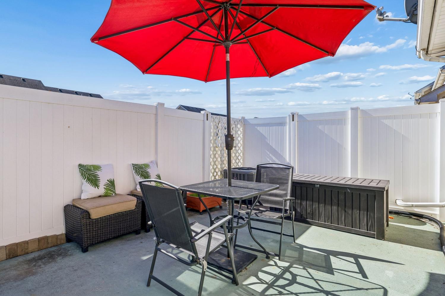 Welcome home to this move-in-ready end-unit condo that perfectly blends comfort, style, and low-maintenance living! This thoughtfully designed home features two spacious bedroom suites, each with its own private bath—one conveniently located on the main level and one upstairs. The downstairs suite is a true retreat with two walk-in closets. At the heart of the home, a dramatic two-story great room with hardwood floors and an open loft above creates an airy space that feels both modern and welcoming. The living area flows seamlessly into the kitchen and dining spaces, making everyday living and entertaining easy. The kitchen offers loads of cabinetry, a tile backsplash and a pantry, all set against a neutral color palette that’s perfect for contemporary decor and your own personal touches. Step outside to a large, fenced patio that opens directly to peaceful green space—ideal for relaxing, pets, or casual outdoor gatherings. The community has a dog park and two playgrounds, and the location can’t be beat—walking distance to school with easy access to the interstate, shopping, and dining. With no-maintenance living, a smart layout, and a fresh, neutral interior ready for your style, this condo checks all the boxes for comfort, convenience, and easy ownership!
