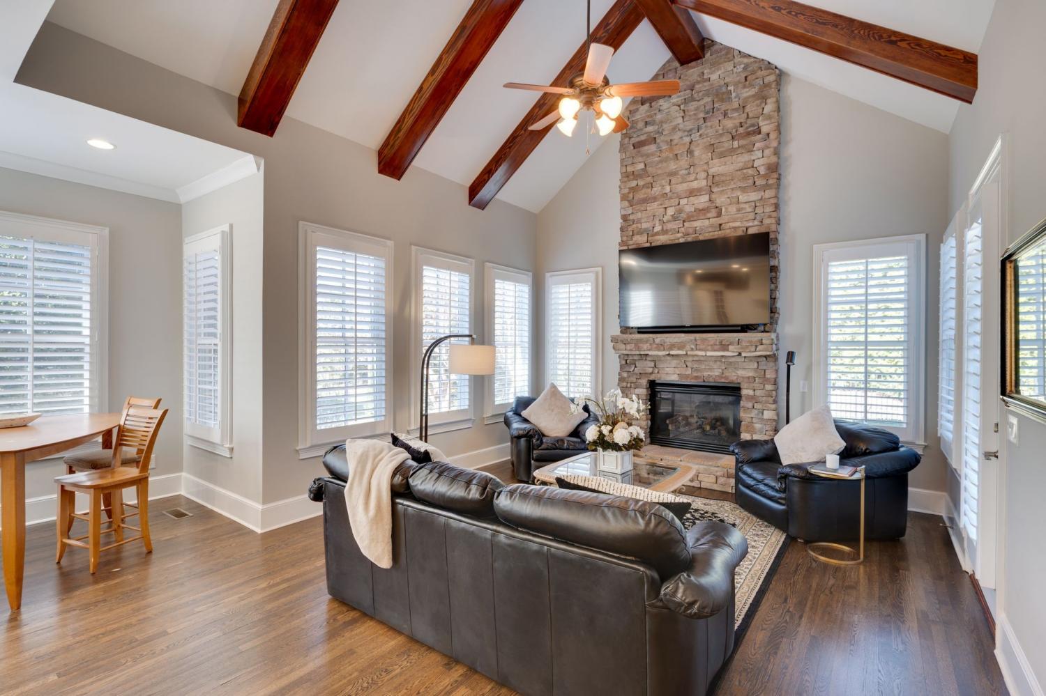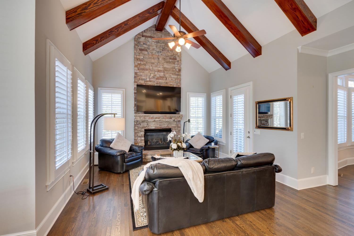 Welcome to 8 Spyglass Hill—a timeless retreat nestled within the prestigious gated community of The Governors Club in Brentwood. This stunning home, set on a serene 1/2-acre private lot, offers the perfect balance of elegance, comfort, and modern sophistication. Step inside to discover a thoughtfully designed layout featuring: the primary suite with an expansive separate sitting area, 2 walk in closets and large primary spa like bathroom. Three spacious ensuite bedrooms, and a large bonus room on the 2nd floor, which is ideal for both relaxation and privacy. The newly renovated chef's kitchen is a culinary dream, complete with stainless steel appliances, gas cooktop, sleek quartz countertops, and a beautifully integrated hearth room. Here, a dramatic stone fireplace and soaring vaulted ceilings create a warm yet grand space for gatherings or cozy evenings at home. Work or unwind in the stately library/office, which opens to a charming side porch—perfect for a quiet morning coffee or a breath of fresh air between calls. Throughout the home, you'll find meticulous updates, including new hardwood floors, a stylish half bath with a custom vanity and Toto toilet, and timeless plantation shutters throughout that add a touch of Southern charm. Outside, the private backyard invites you to relax, entertain, or simply take in the tranquility of your surroundings. This is more than a home, it’s a lifestyle, offering impeccable upgrades and a coveted address in one of Brentwood's most exclusive communities. Governors Club resident amenities include 24-hour gate security, community pool, fitness center, tennis courts and Historic Pleasant Hill mansion. CC memberships are also available-either full golf or social, which allow access to the private Arnold Palmer 18-hole course, pool with cabana, bar, restaurant, bocce ball, and morel Located in the Williamson County award winning schools zone!!