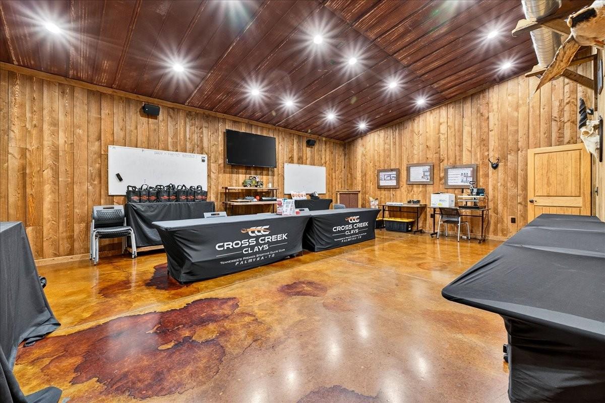 Tucked within the rolling hardwoods of the celebrated Cross Creek Clays estate, the private cabin serves as a refined personal retreat and a natural introduction to one of the Southeast’s most extraordinary legacy properties. Thoughtfully crafted with warm wood interiors, vaulted ceilings, and inviting living spaces anchored by a stone fireplace, the residence offers comfort, privacy, and a timeless lodge aesthetic. Expansive covered porches extend the living experience outdoors, creating tranquil settings for quiet mornings and evenings immersed in nature. The cabin is uniquely equipped for self-sufficiency, featuring two 5,000-gallon rainwater collection tanks with integrated filtration and purification, fully tied into the home’s plumbing and switchable from city water. A substantial 40kW solar power system allows seamless operation independent of the county power grid, while maintaining full utility connectivity. Beyond the residence lies the full Cross Creek Clays estate, encompassing approximately 203± acres and developed not as a commercial venture, but as a personal sanctuary executed without compromise. The property features approximately 7,000 SF of lodge and pro shop space, a 5,000 SF event center with commercial kitchen, and a 3,000 SF covered patio with outdoor pizza oven. Championship-level sporting infrastructure includes three 16-station courses, two 40-foot elevated towers, covered 5-stand fields, and 146 MEC automated target systems meeting NSCA standards. Renowned for hosting the Tennessee State Shoot, Southeast Regional Championship, and numerous charitable events, Cross Creek Clays offers a rare opportunity to acquire a private estate where world-class sporting facilities, refined hospitality, and meaningful income potential coexist in perfect harmony. Shown by appointment only. Proof of funds and advance notice required.