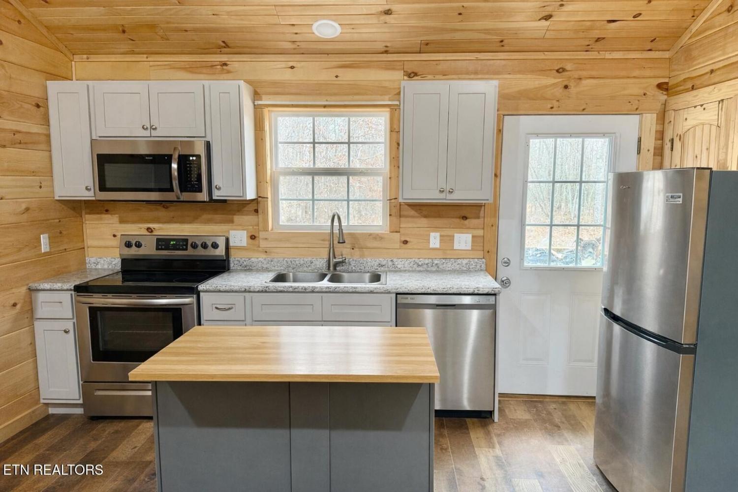 Tucked away on a quiet road yet just 20 minutes from Jamestown shopping, restaurants, and Walmart, this charming 2024-built cabin offers the perfect balance of privacy, comfort, and low-maintenance convenience. Set on 1.54 acres of partially cleared, level land with a wooded backdrop for natural privacy, this 624 sq ft home is ideal for those looking to escape the hustle and bustle and embrace a peaceful lifestyle surrounded by nature. Inside, you'll find warm wood paneling, upgraded flooring, and a thoughtfully designed open-concept kitchen and living area that feels cozy yet functional. The kitchen features a nice-sized pantry and island, while the home offers 2 bedrooms, including a large walk-in closet off the second bedroom, along with 1 full bath and 1 half bath. A dedicated laundry room includes a full-size washer and dryer which convey with the sale of the property, and two mini-split systems provide efficient heating and cooling year-round. Step outside to the large front porch, the perfect spot to relax and take in the surrounding natural beauty. The property also includes a 10x12 Mennonite-built shed, ideal for storage, hobbies, or outdoor gear. The homeowner has thoughtfully planted raspberry and blueberry bushes, crepe myrtles, forsythia, and other wonderful plants waiting to bloom in Spring! Whether you're a nature enthusiast, weekend retreat seeker, or looking for a peaceful low maintenance full-time residence, this property offers privacy, tranquility, and modern comfort in a beautiful rural setting.