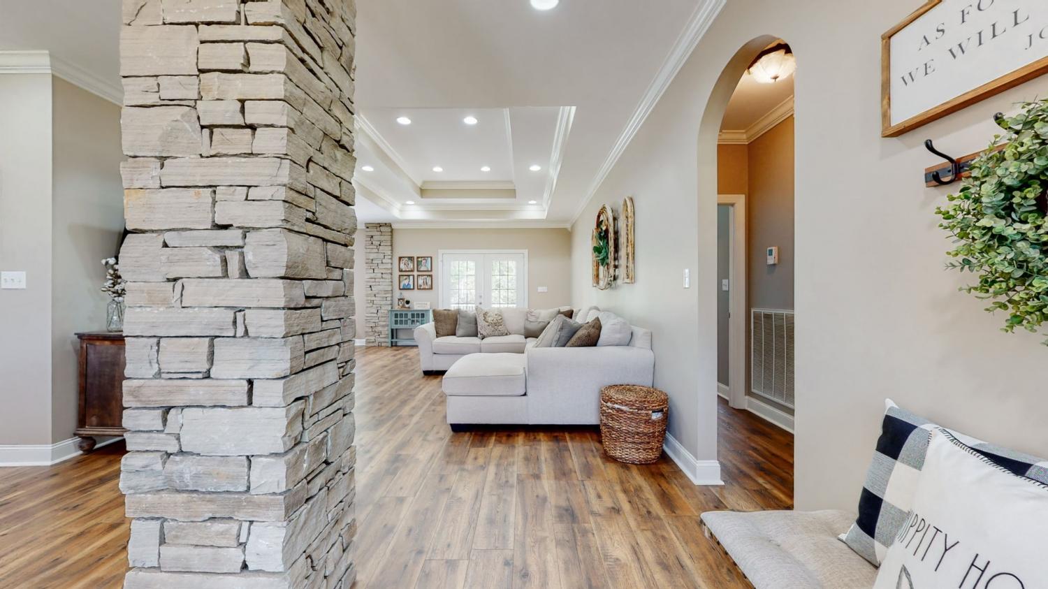 PRICE IMPROVEMENT!! Gorgeous all brick home priced to sell and below appraisal. This home has been completely remodeled. It has all new flooring, brand new master bath with walk in closet and oversized shower. Remodeled second bath with new tile, double vanity, lighting and mirrors. Large walk in pantry added to kitchen. Features crown moldings, entire house freshly painted, double tray ceilings, recessed lighting, bonus room, granite counter tops in kitchen. stacked stone columns, concrete drive, covered back porch new ac/heading unit and much more.
