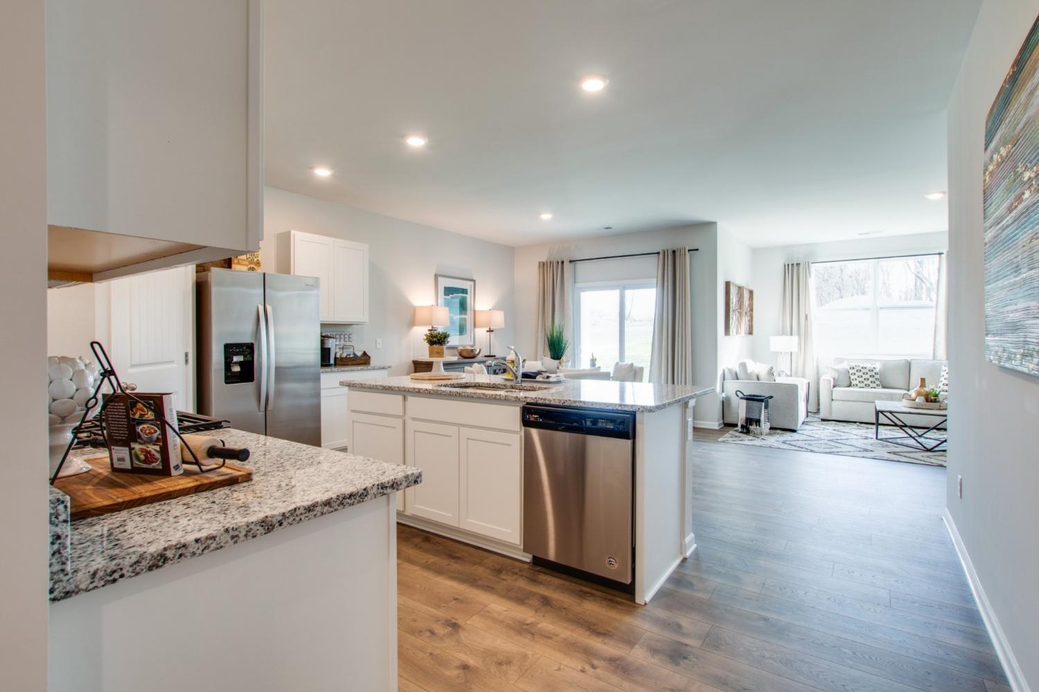 ***For a limited time receive up to $10,000 towards closing costs PLUS a complete move-in package including washer, dryer and refrigerator using our in-house lender. Enjoy exclusive below market 30 year fixed rates designed to lower your monthly payment!*** Welcome to the Cali, a new home in Reserve at Hickory Ridge, Columbia, TN. This one-story floorplan offers 4 bedrooms, 2 bathrooms, and a 2 car garage, blending generous living space with smart design. Step inside to an open-concept layout enhanced by 9' ceilings, quartz countertops throughout the kitchen and bathrooms, and Whirlpool stainless steel appliances for a sleek, modern feel. The kitchen features a spacious island perfect for bar-style dining or entertaining, a walk-in pantry, and abundant cabinet and counter space. Adjoining dining and living spaces overlook a covered porch, an effortless transition to outdoor relaxation and al fresco dining. The primary bedroom offers privacy and size, comfortable for a king bed, paired with an en suite bathroom equipped with a double vanity, large walk-in closet, and separate linen closet. Three additional bedrooms share a thoughtfully designed full bathroom, all fitted with quartz countertops. The floorplan also includes a two-car garage that connects to the front hallway, giving easy access to the laundry room and extra storage closet. Modern conveniences abound with the Home is Connected smart technology package, allowing you to control your thermostat, lighting, and security remotely from your smart device, whether you're home or away. Beautiful landscaping rounds out the exterior appeal. Schedule your visit today at Reserve at Hickory Ridge in Columbia, Tennessee, and see it for yourself!