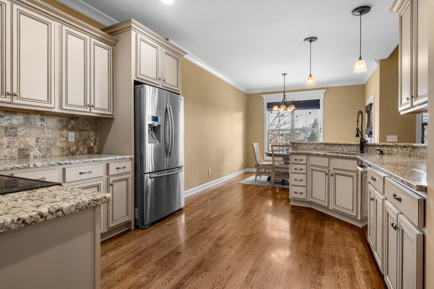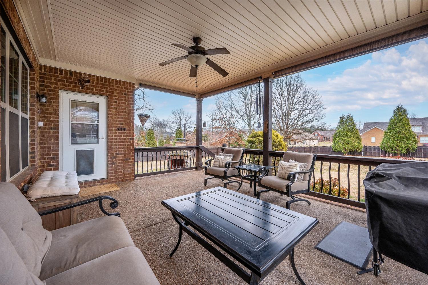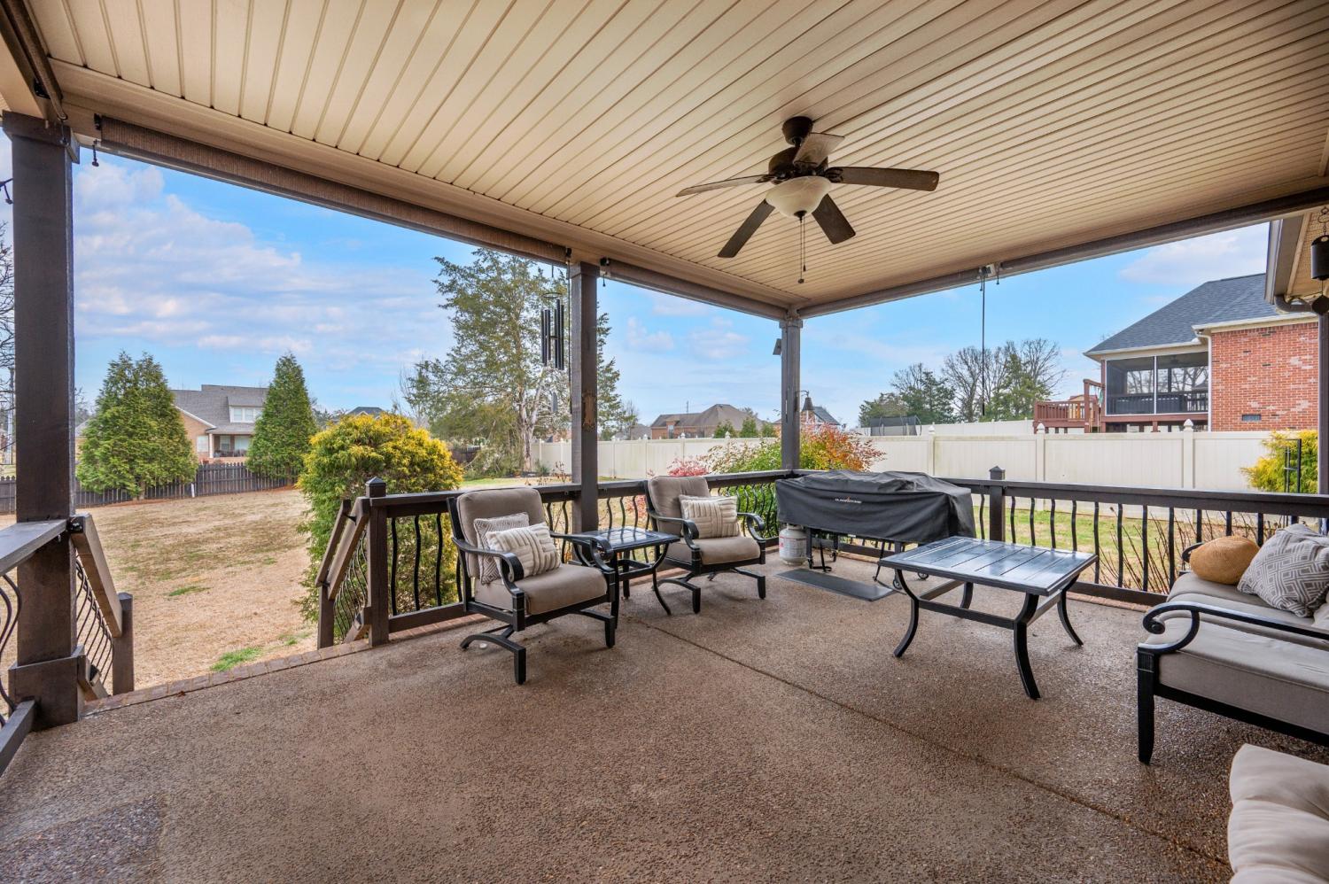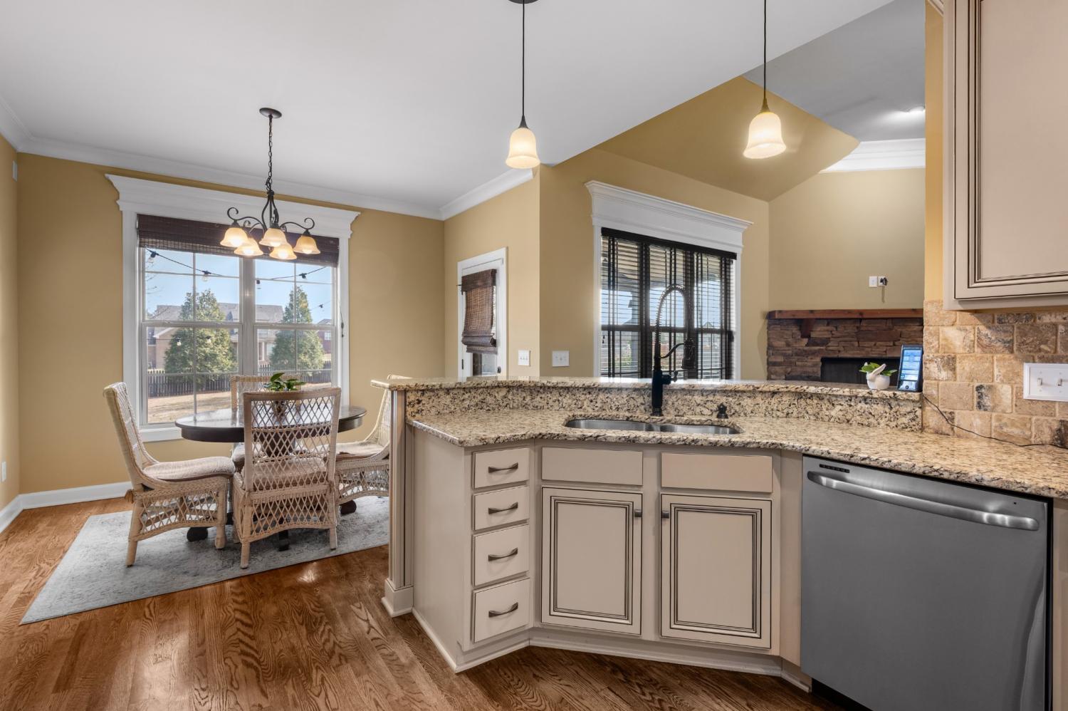 Beautiful home featuring a stunning brick and stone front elevation and a spacious 3-car garage. Inside, you’ll find granite countertops in the kitchen and primary bath, stainless steel appliances, glazed cabinetry, and a pantry for added storage and functionality. Plantation shutters throughout the home add timeless elegance, privacy, and enhanced natural light control. The inviting living room offers a cozy gas fireplace, creating the perfect space to relax and gather. The oversized primary suite features an extra-large walk-in closet, providing exceptional storage. Step outside to enjoy the lovely covered back patio complete with an outdoor fireplace — ideal for year-round entertaining and relaxing evenings at home. This home combines thoughtful upgrades, comfort, and curb appeal — a must-see!