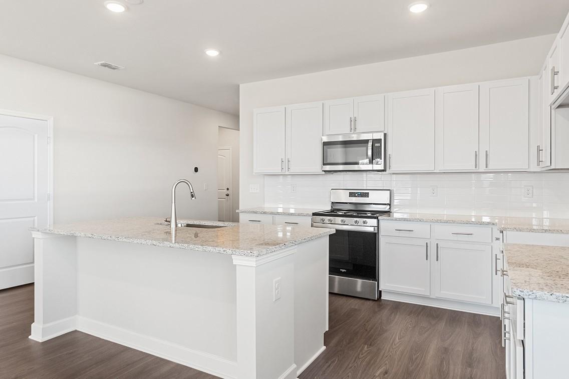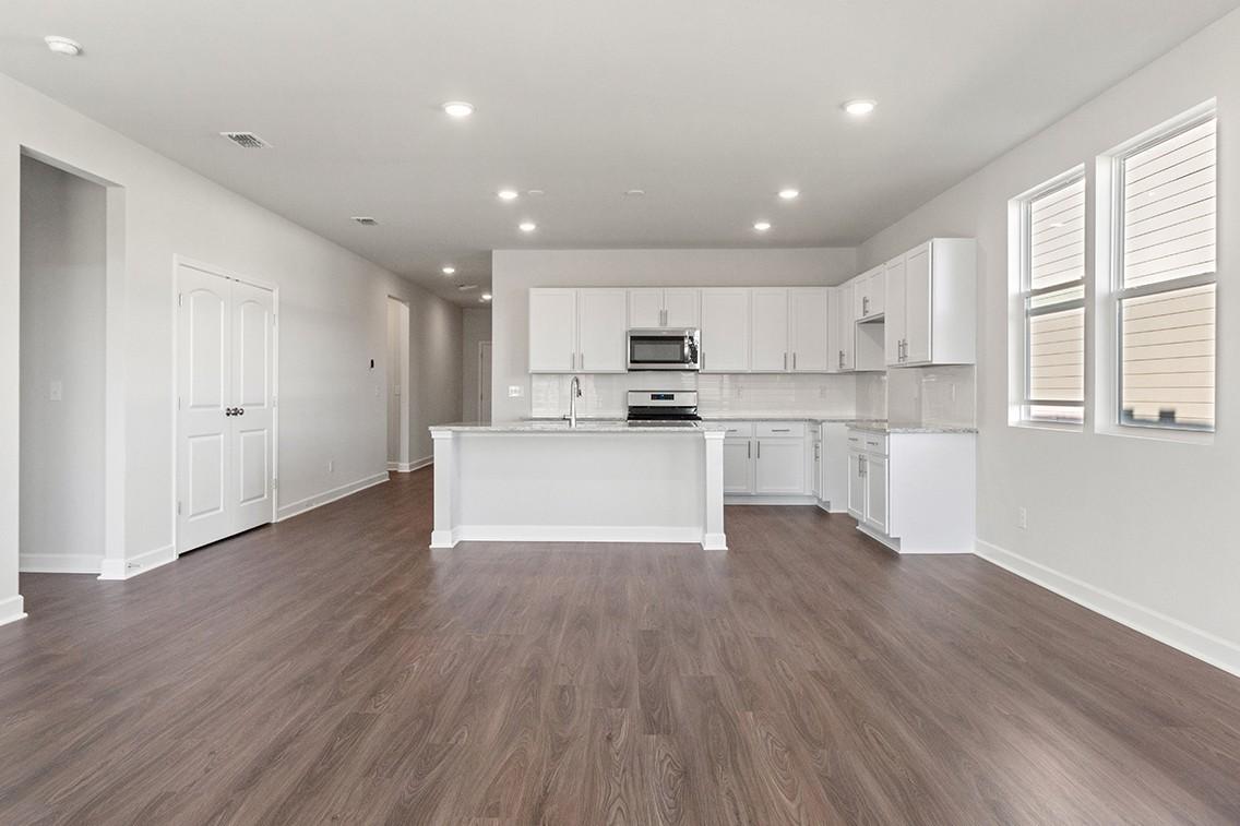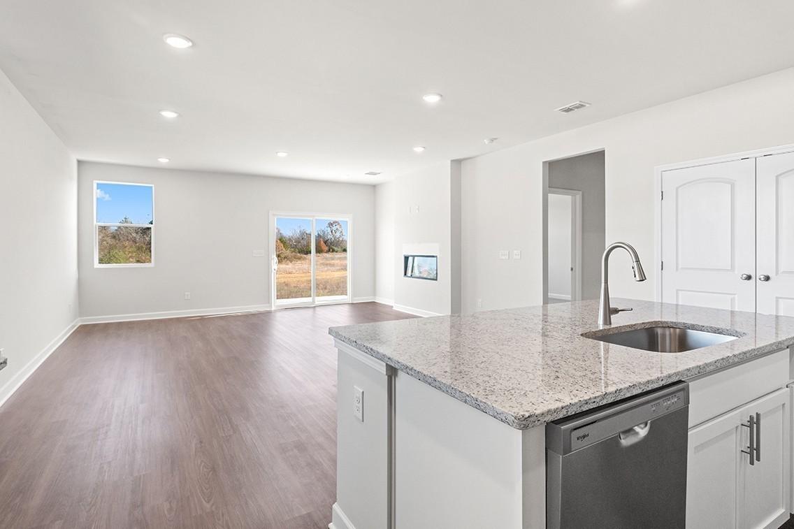 This single-story home at Barton Hills in Spring Hill, TN is full of thoughtful details and easy flow. The spacious corner lot sits just across from the community amenities, with treeline views across the street for added privacy and charm. Inside, an open-concept layout centers around an extended kitchen with abundant counterspace—perfect for everything from weeknight dinners to weekend hosting. The kitchen flows easily into the dining area and great room, which opens to a covered patio for seamless indoor-outdoor living. Three secondary bedrooms—including one with its own bath and walk-in closet—offer flexible space for guests, kids, or a hobby room. Tucked at the back of the home, the private owner’s suite includes a large walk-in closet and a relaxing en-suite bath with a walk-in shower and separate soaking tub. A built-in valet/drop zone adds convenience just off the garage entry.