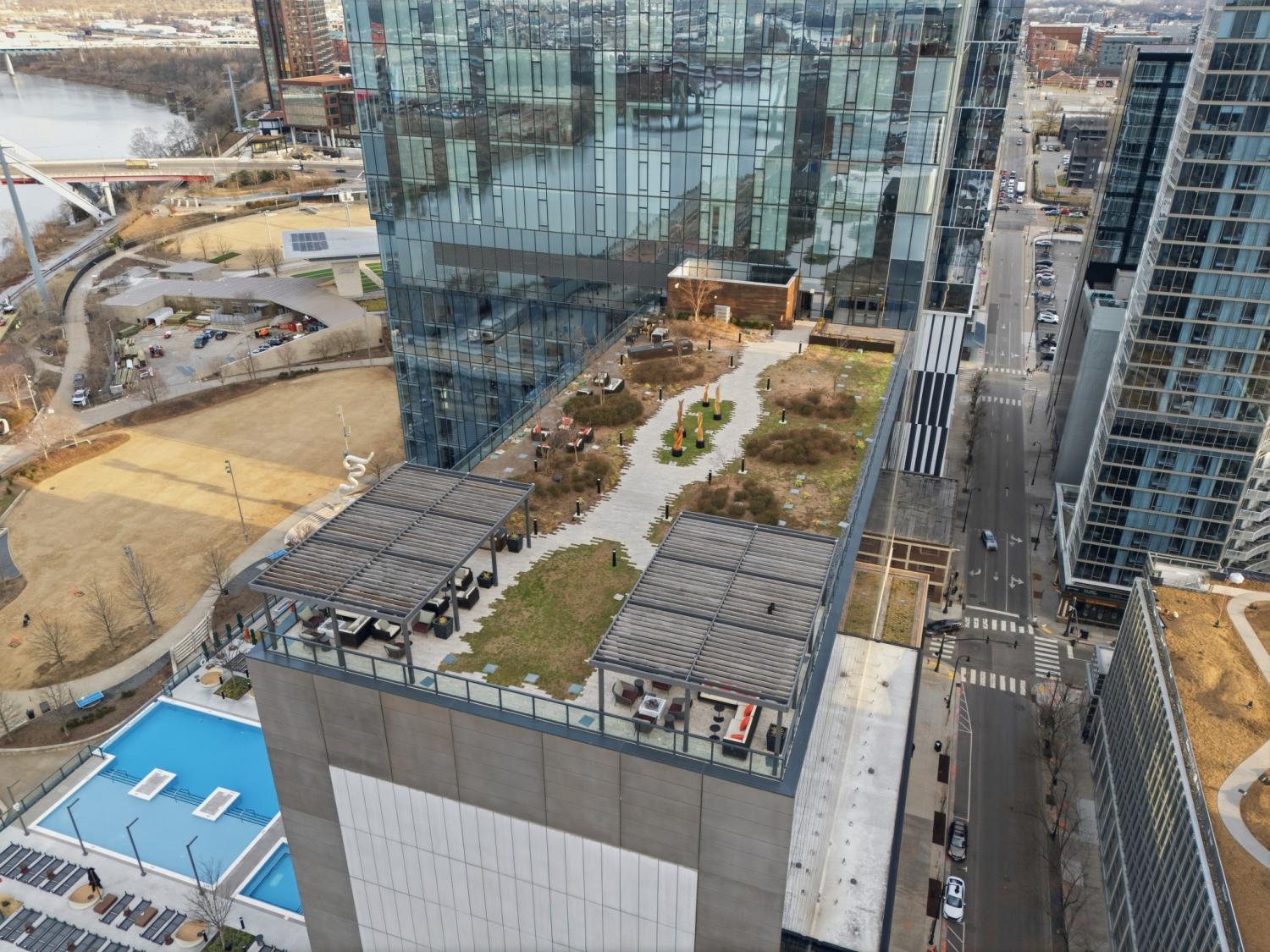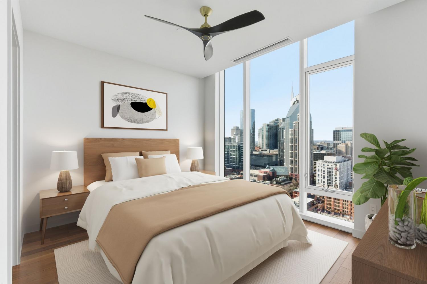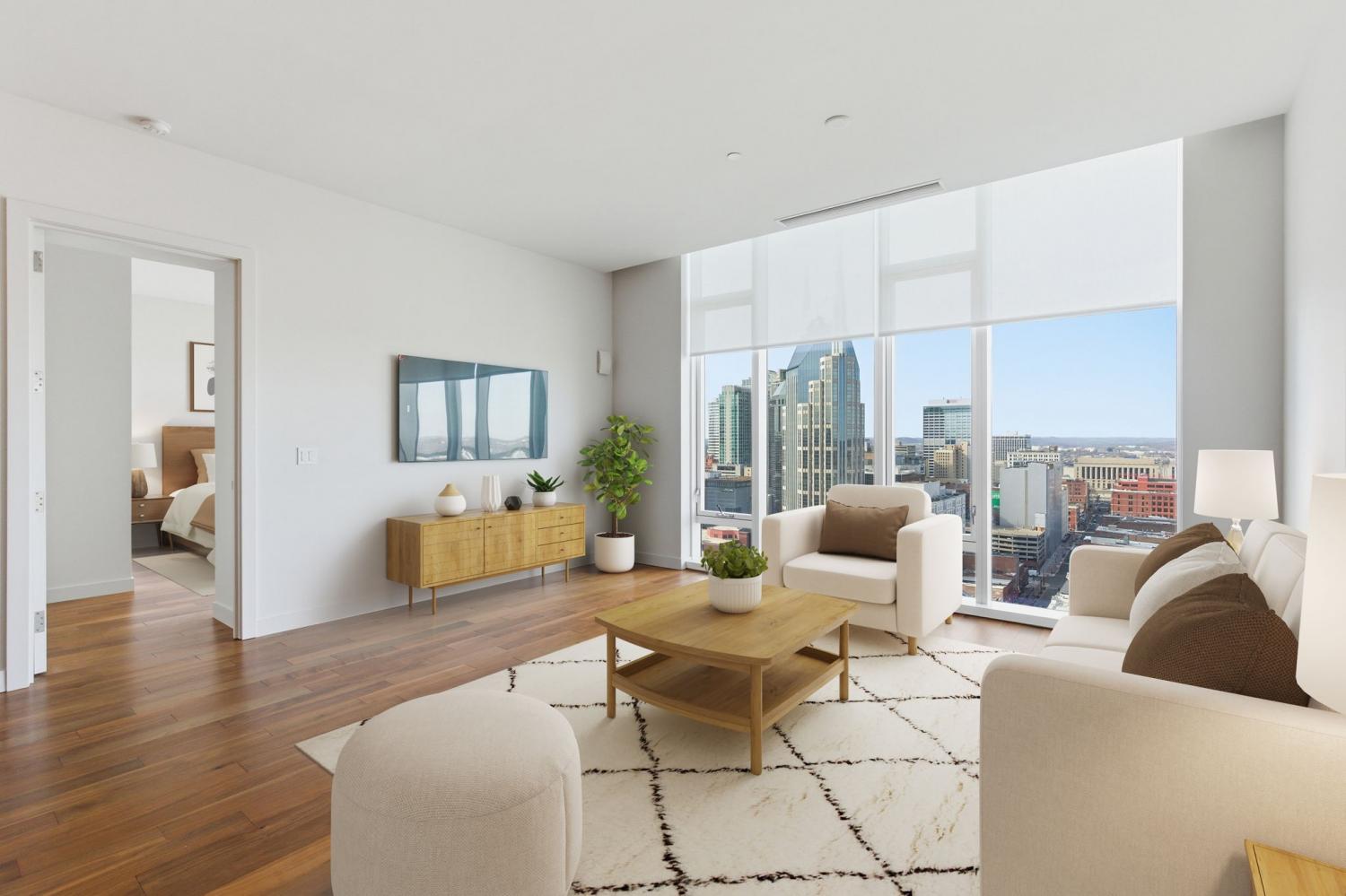 Four Seasons Private Residences. 1 BR/ 1.5 BA. View North of Broadway, East Across the river to the Titans Stadium. Security and Privacy. Battery Powered Lutron Shades throughout, 2 65" Samsung Smart TVs convey with purchase, Closet Company Custom Closets. Resident owner access to private owner lounge, kitchen, dining area, media room, Outdoor Terrace with Sculptured Garden, Grilling Pavilion, Fitness Center and Pet Spa, 24 hour Concierge Team and Gated Valet Service, One Car Reserved Parking. Four Season Hotel Amenities include Pool, Spa Services, another Fitness Center and Room Service. Downtown's most exciting Luxury Address