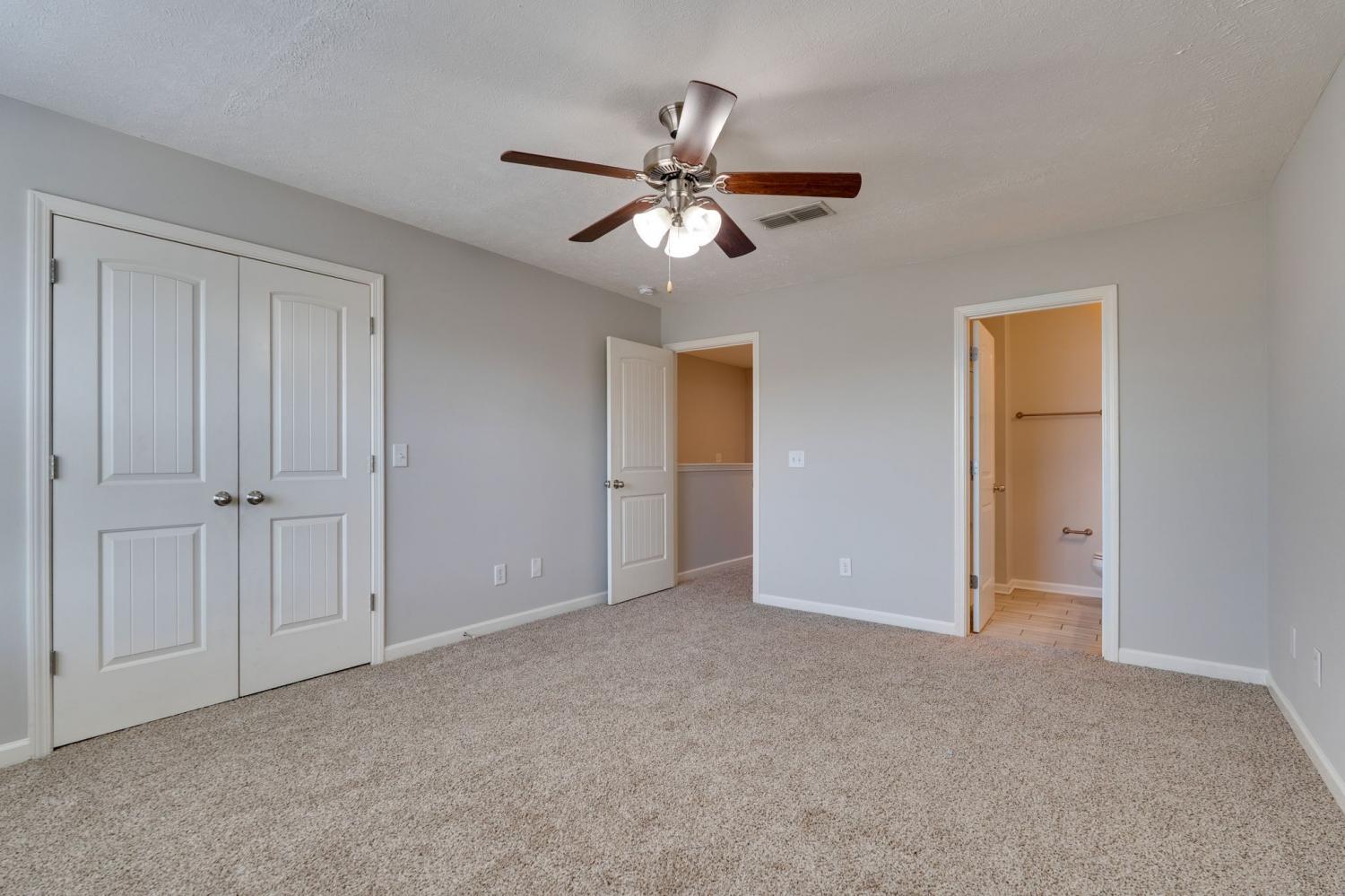 Price Adjustment! This upgraded townhome is newly painted with new carpet. Great floorplan with 2 bedrooms, each with ensuite bathrooms attached. Kitchen has stainless steel appliances, refrigerator included, and granite countertops with a walk in pantry. Back area is a private enclosed space with outdoor storage. Laundry room is upstairs. Priced to sell!